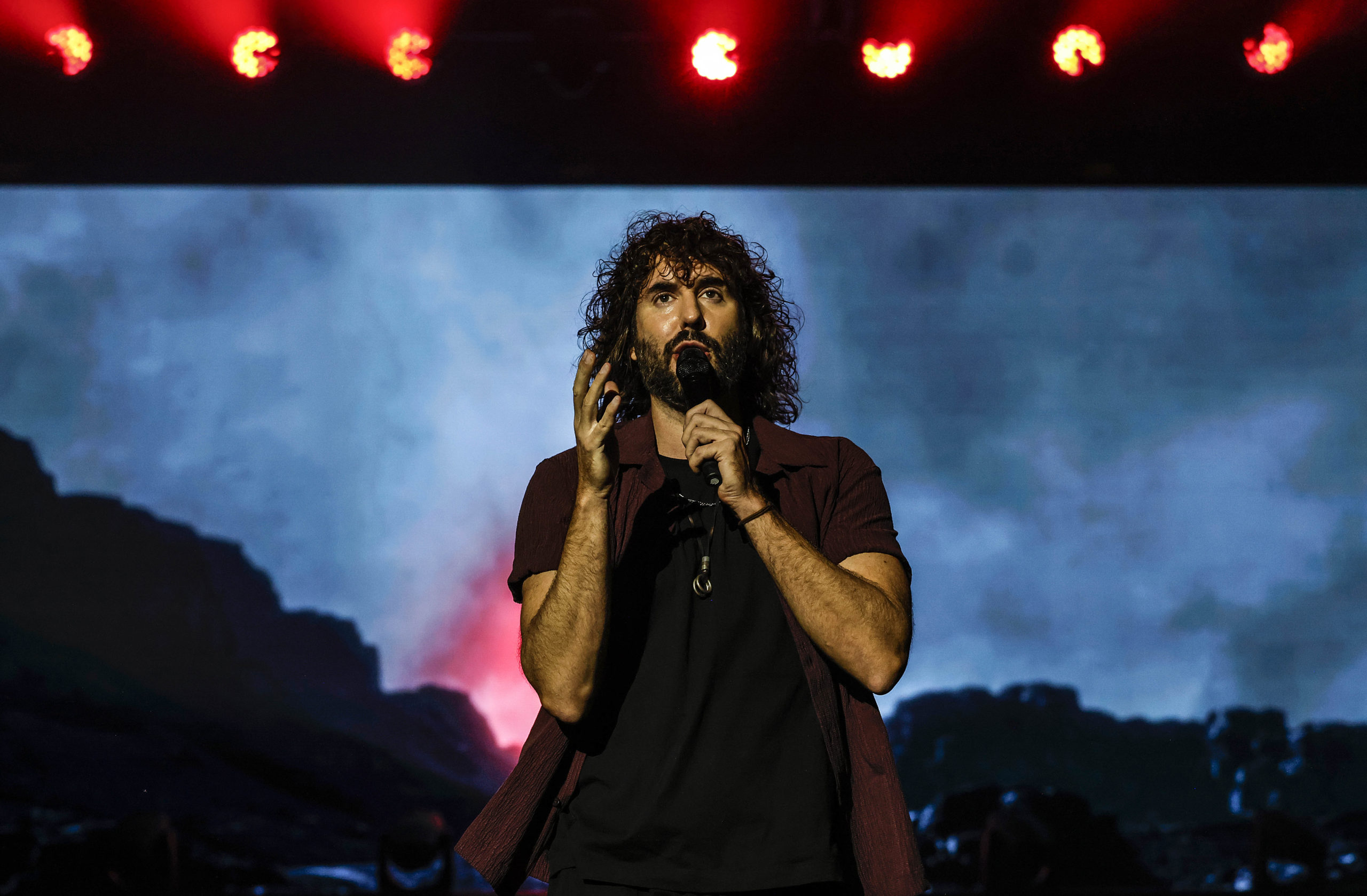 Poco después de las nueve de la noche, el artista apareció en escena para dar inicio a un espectáculo planteado como un viaje emocional dividido en cuatro grandes capítulos: “El Miedo”, “El Grito”, “La Fe” y “El Paraíso”. Una narrativa que llevó al público desde la introspección más oscura hasta la reconciliación con la calma y la luz.