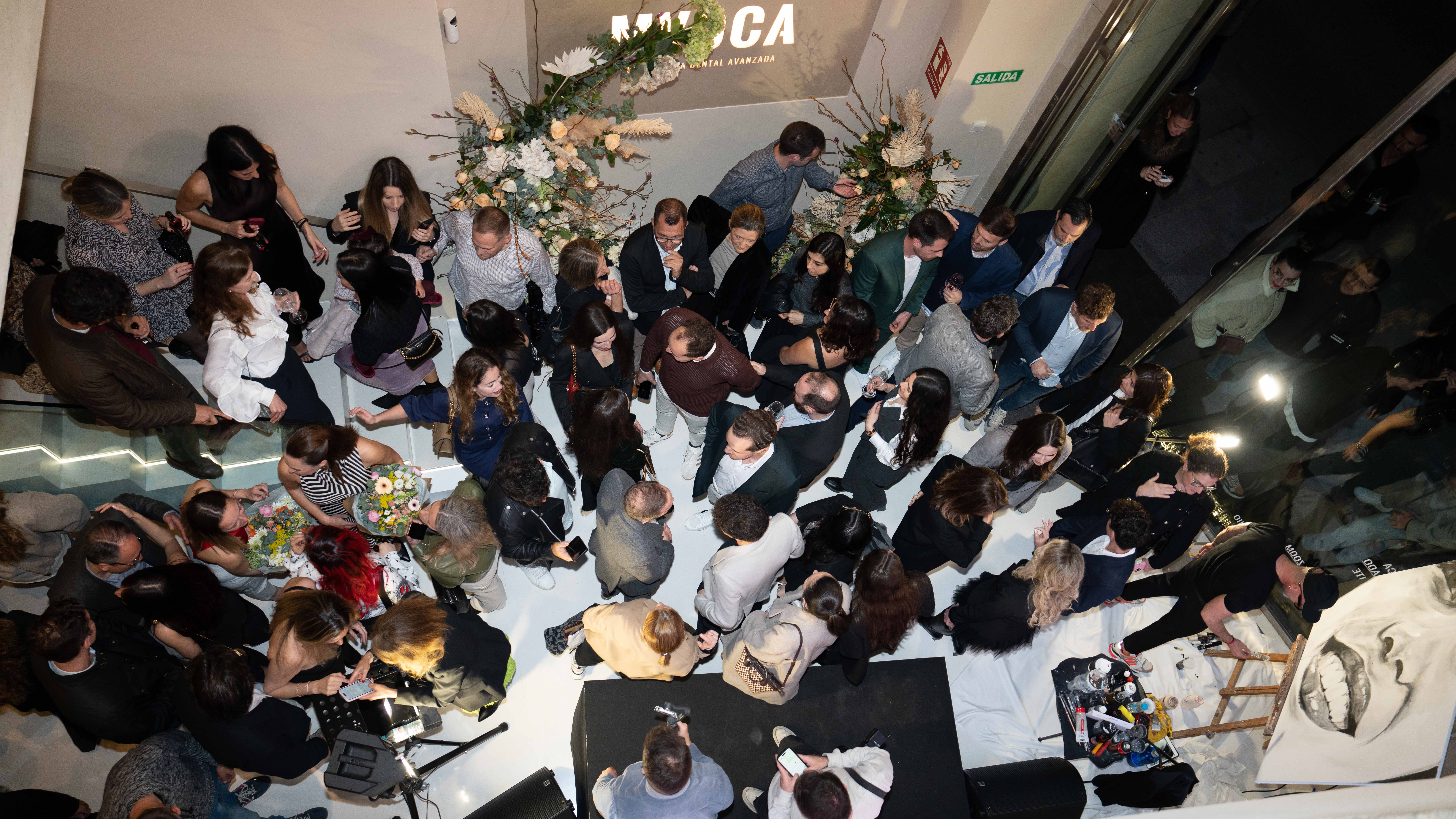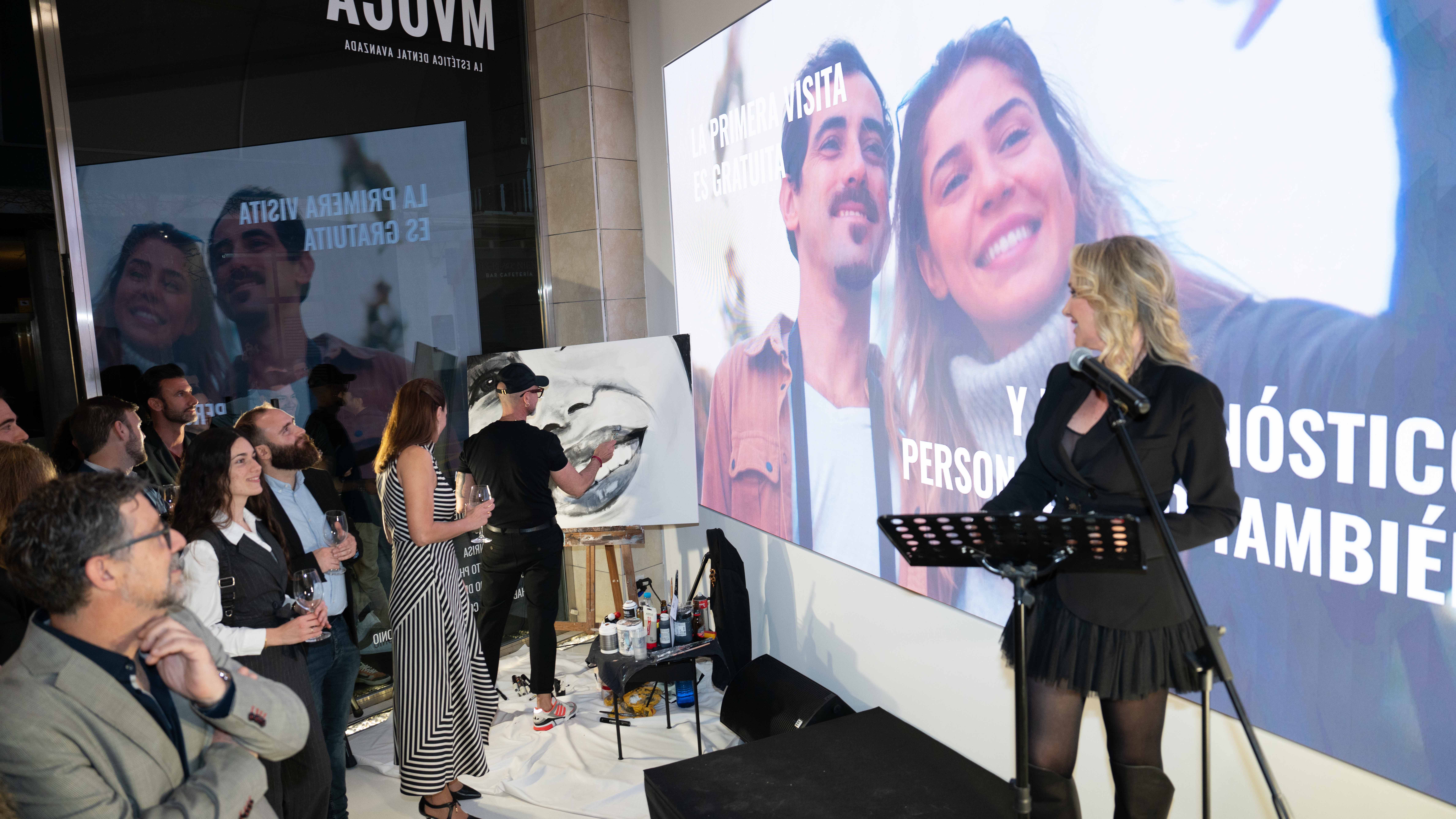 Uno de los momentos más emocionantes de la noche fue la presentación en exclusiva del jingle de MVOCA, creado e interpretado por Javi, cantante del grupo Bombai, que emocionó a todos los asistentes. A su actuación le siguió una obra de arte en directo a cargo del reconocido artista Jesús Arrúe, conocido como el pintor de las miradas y también de las sonrisas, quien sorprendió al público con una pieza dedicada a la sonrisa que quedará expuesta de forma permanente en la clínica. Arrúe es conocido internacionalmente por haber retratado a iconos como Madonna.