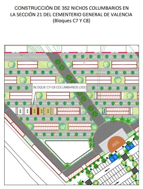 Con la misma estimación en cuanto a la fecha de finalización de las obras ya está en marcha también la construcción de 352 nichos columbarios en dos bloques diferentes de la misma sección del Cementerio General. En este caso, el importe final es de 99.332,78 euros.