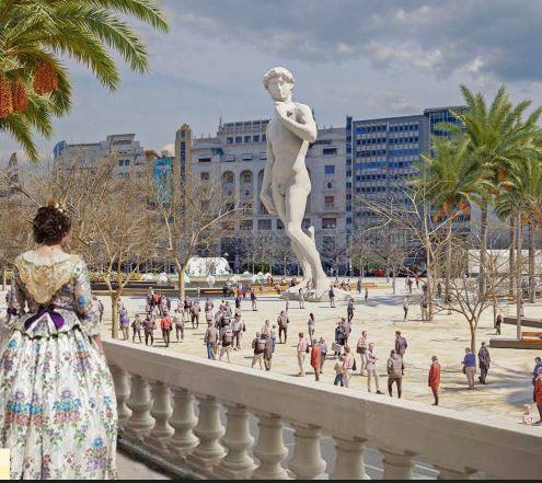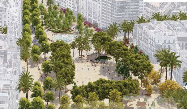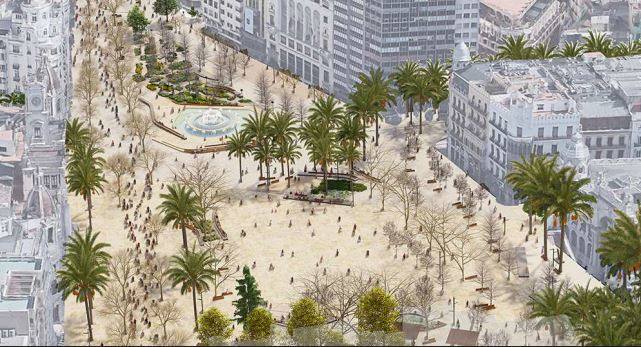 Plantea «un gran espacio ambivalente en la zona más próxima a la fachada» municipal –manteniendo la celebración de actos como las ‘mascletaes’, la ‘plantà’ y la ‘cremà’ de las fallas del consistorio, las ferias y los conciertos–.