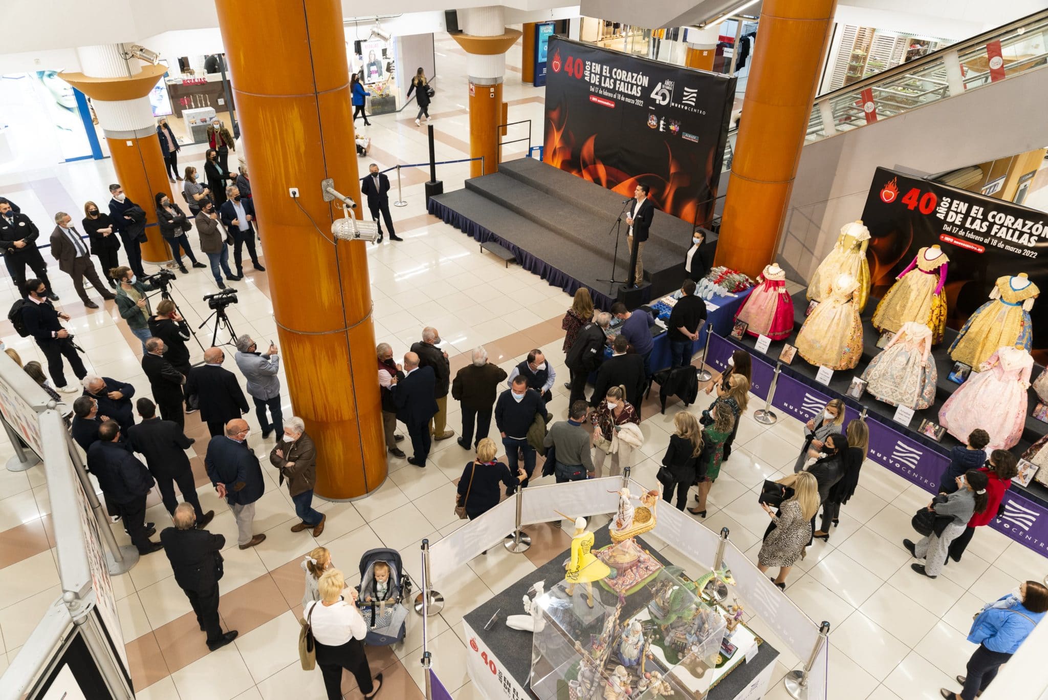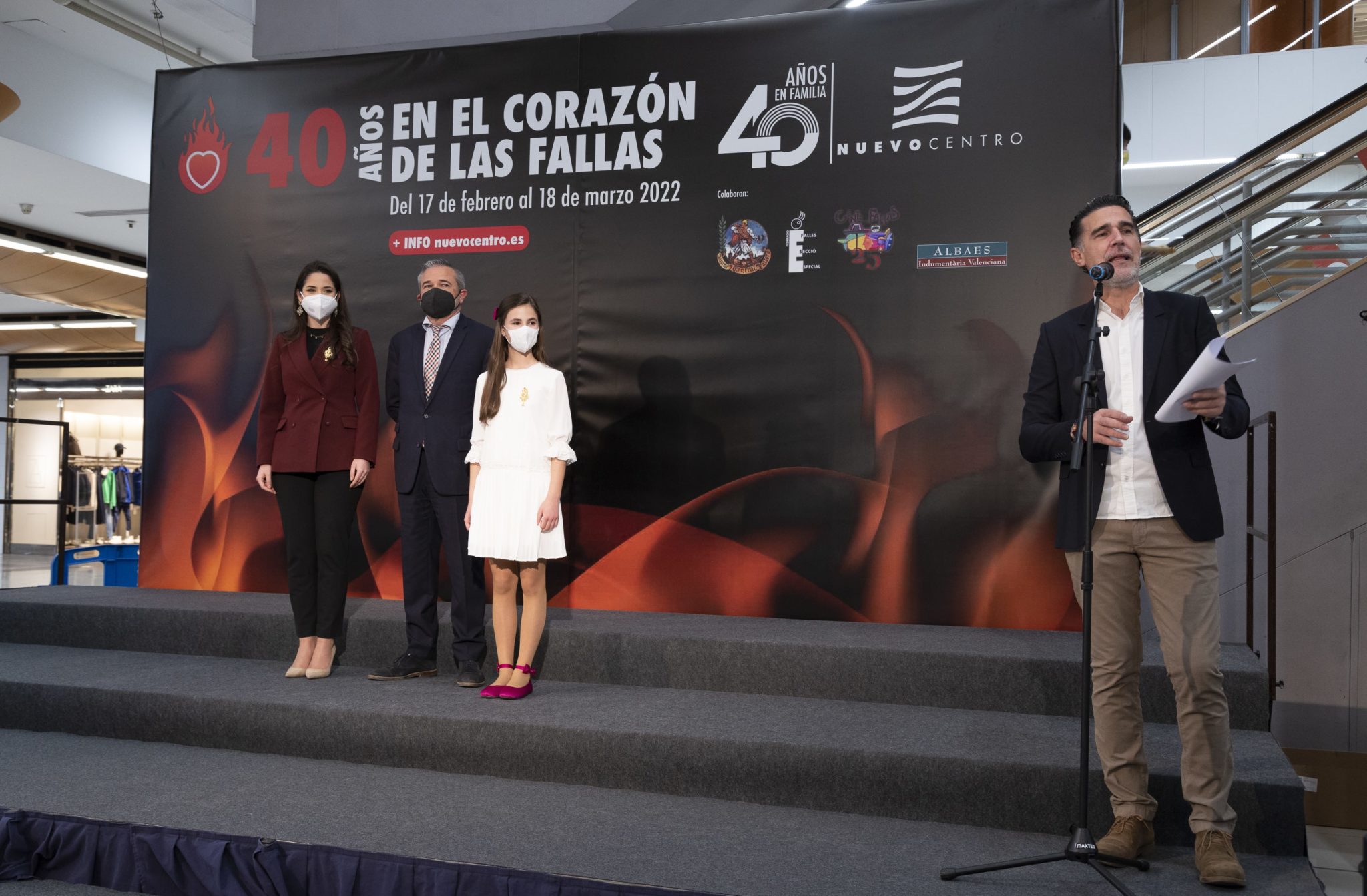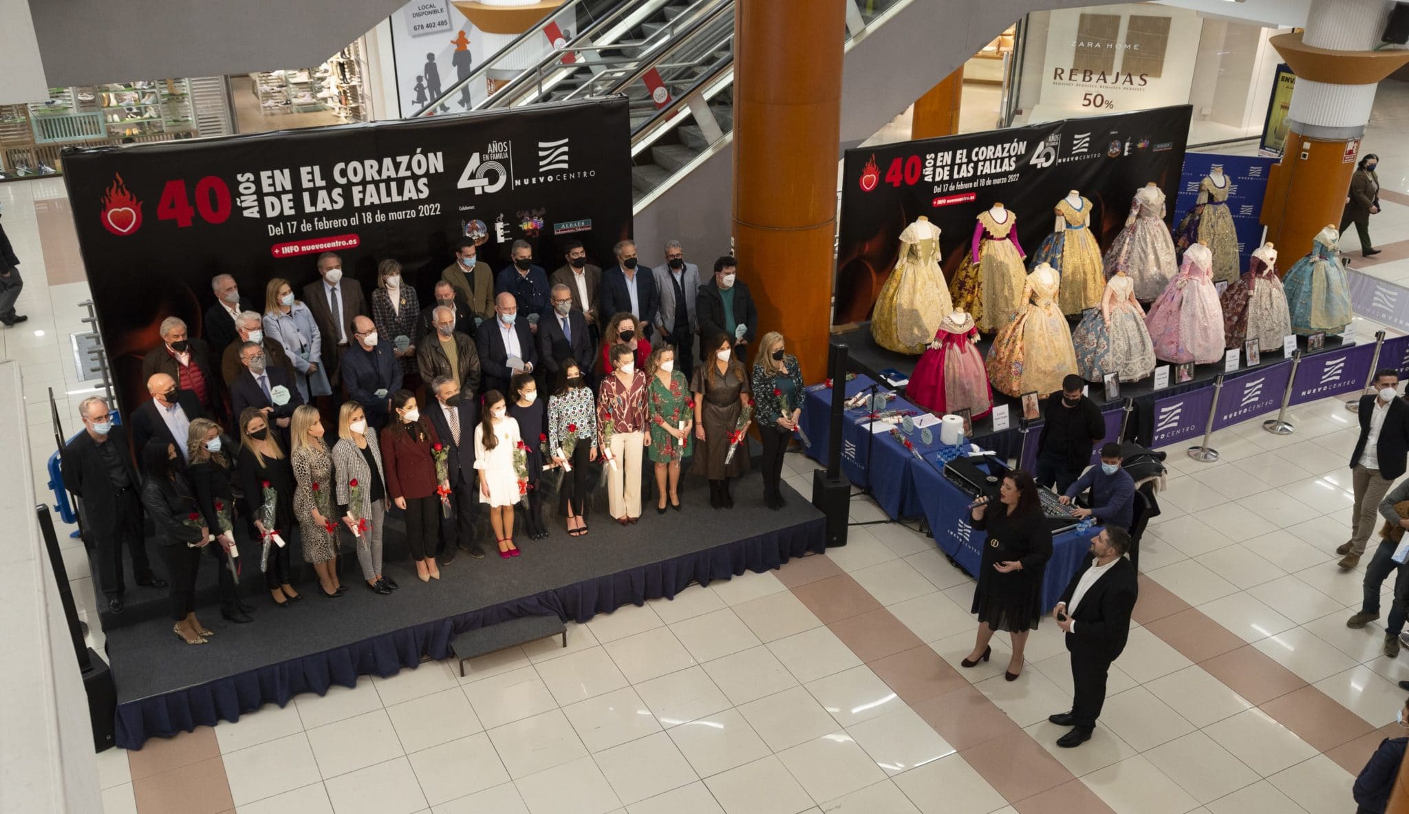 Nuevo Centro presentó este jueves, en su plaza interior todas las actividades que va a realizar relacionadas con el mundo de las Fallas con motivo de su 40º aniversario. Un acto que ha estado presidido por las Falleras Mayores de Valencia 2022, Carmen Martín Carbonell y Nerea López Maestre y que ha contado con la presencia de autoridades y de Falleras Mayores e Infantiles de Valencia de los últimos 40 años, así como Presidentes y Secretarios de JCF.