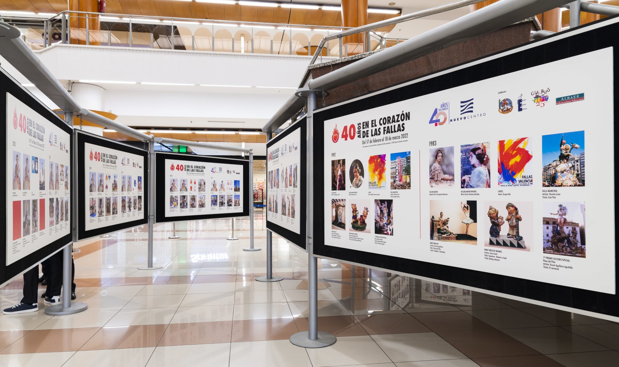 Exposición fotográfica que realiza un recorrido por las Fallas desde el año que se inauguró Nuevo Centro hasta la actualidad. En cada año se puede contemplar las fotos de las Falleras Mayores de Valencia, el cartel de fallas, las fallas municipales (la infantil desde 1987), los ninots indultats y el 1er premio de las Fallas de Sección Especial. Además se complementa con un panel con imágenes que resumen el 25º aniversario del programa Gente de Fallas de Onda Cero y otro panel como Homenaje al artista fallero Agustín Villanueva por parte de la Federación de Fallas de Especial.