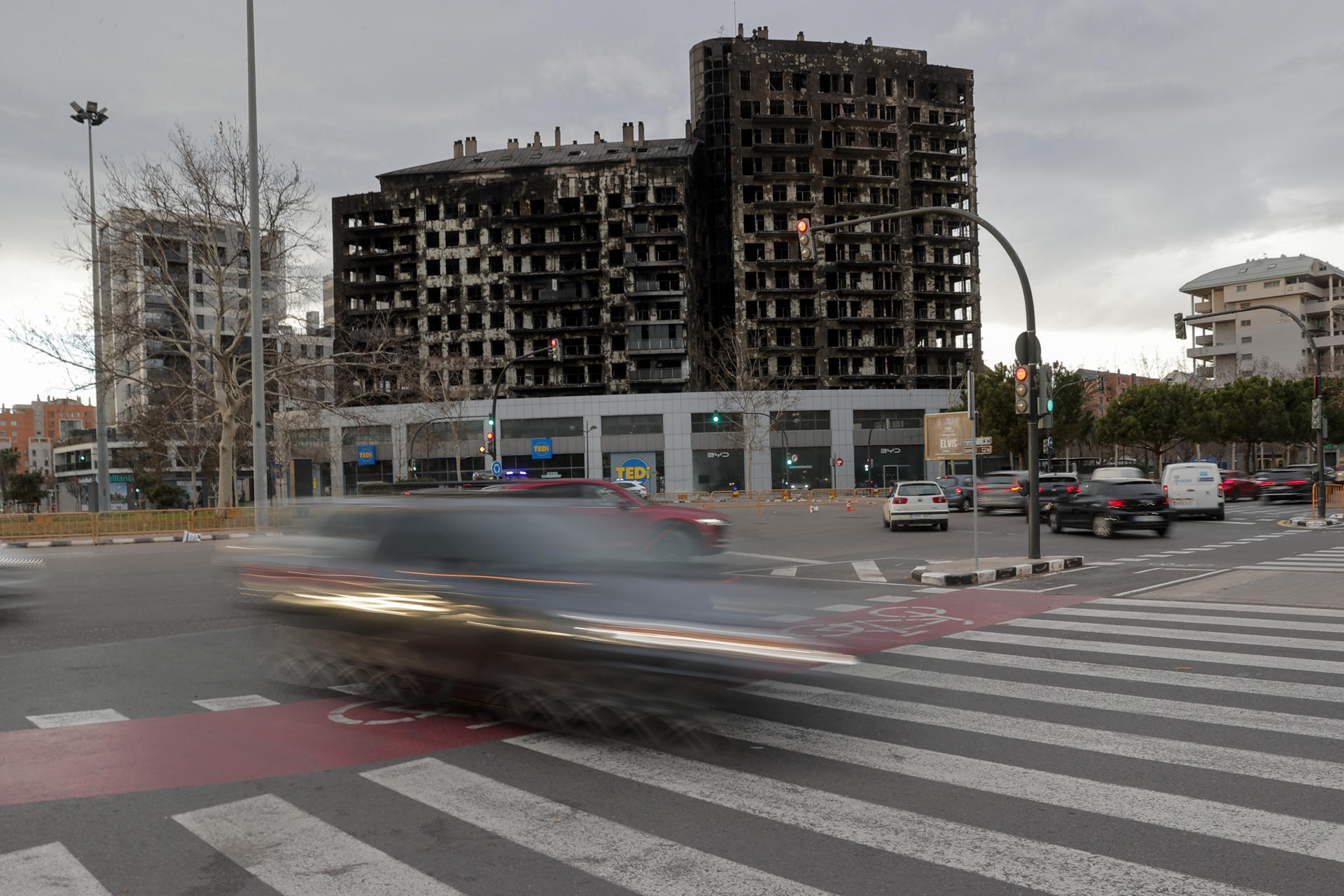 El tráfico se empieza a reabrir parcialmente en la zona del barrio valenciano de Campanar que intenta retomar el pulso vital este lunes. EFE/Manuel Bruque