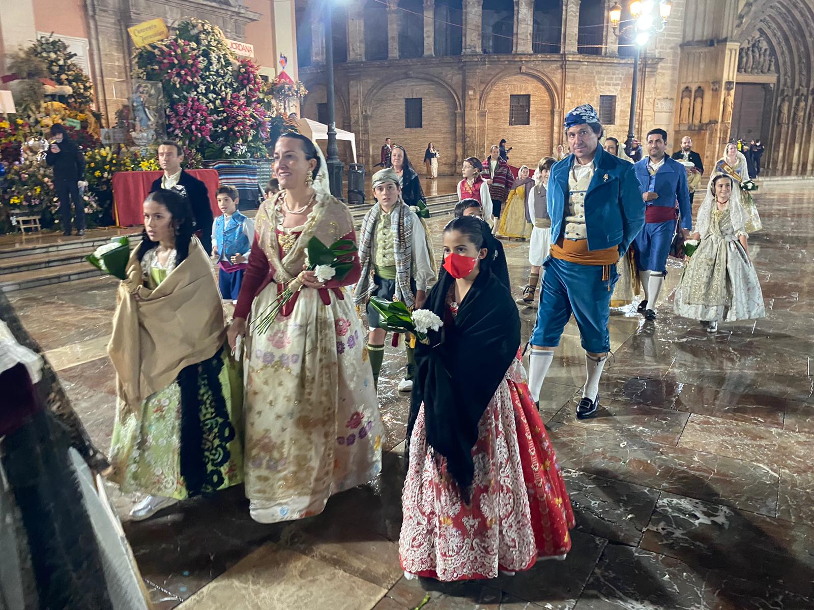 La Fallera Mayor de València Carmen Martín y su Corte de Honor cerraron la Ofrenda de las Fallas 2022. Una ofrenda amenazada por el mal tiempo pero que al final se pudo celebrar.