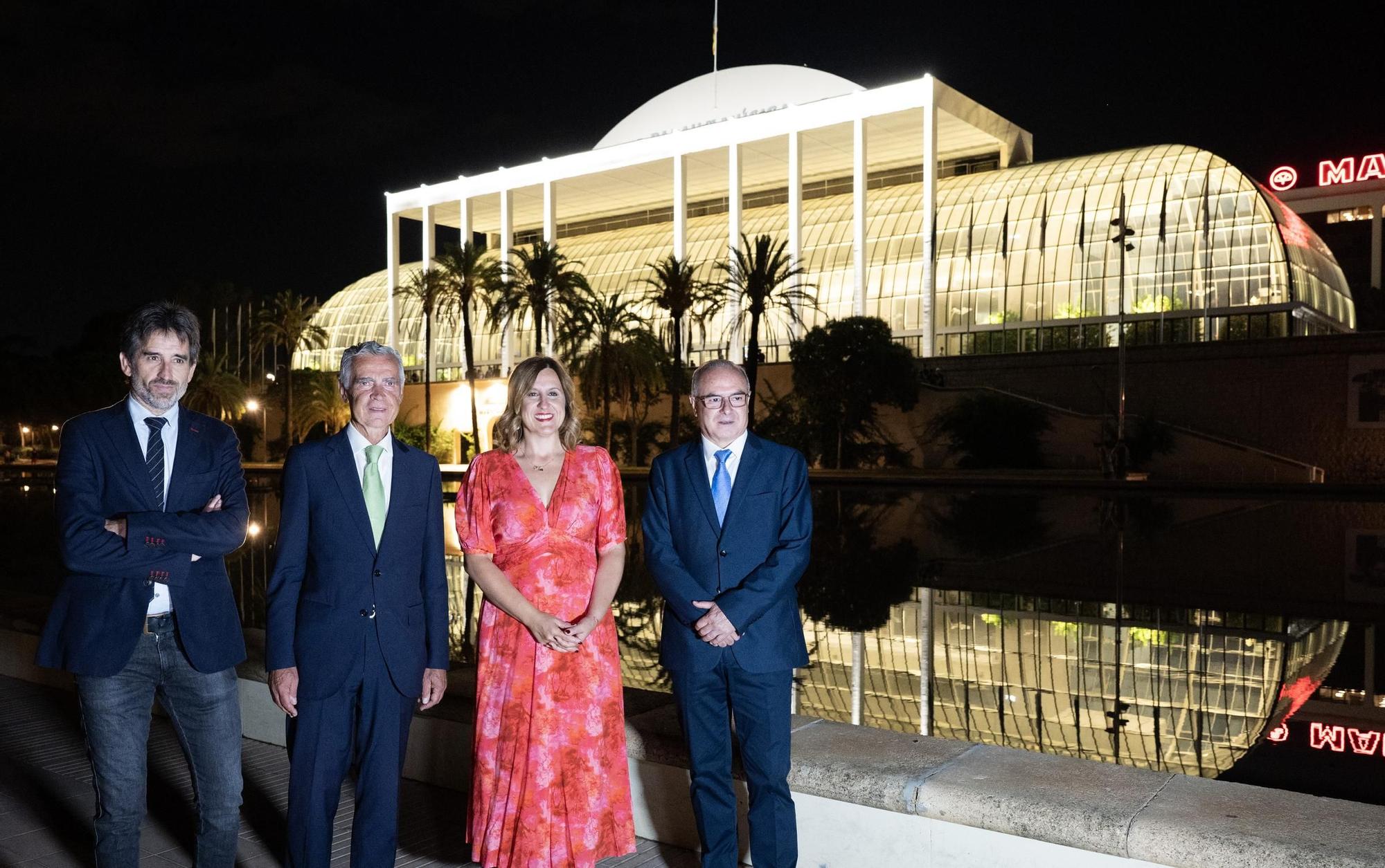 El estreno de la nueva iluminación ornamental del Palau tuvo lugar este miércoles a las 20.30 horas y contó con la presencia de autoridades municipales, directivos de Iberdrola, y representantes del mundo de la cultura y la sociedad valenciana.