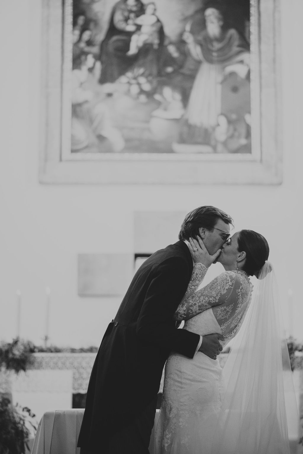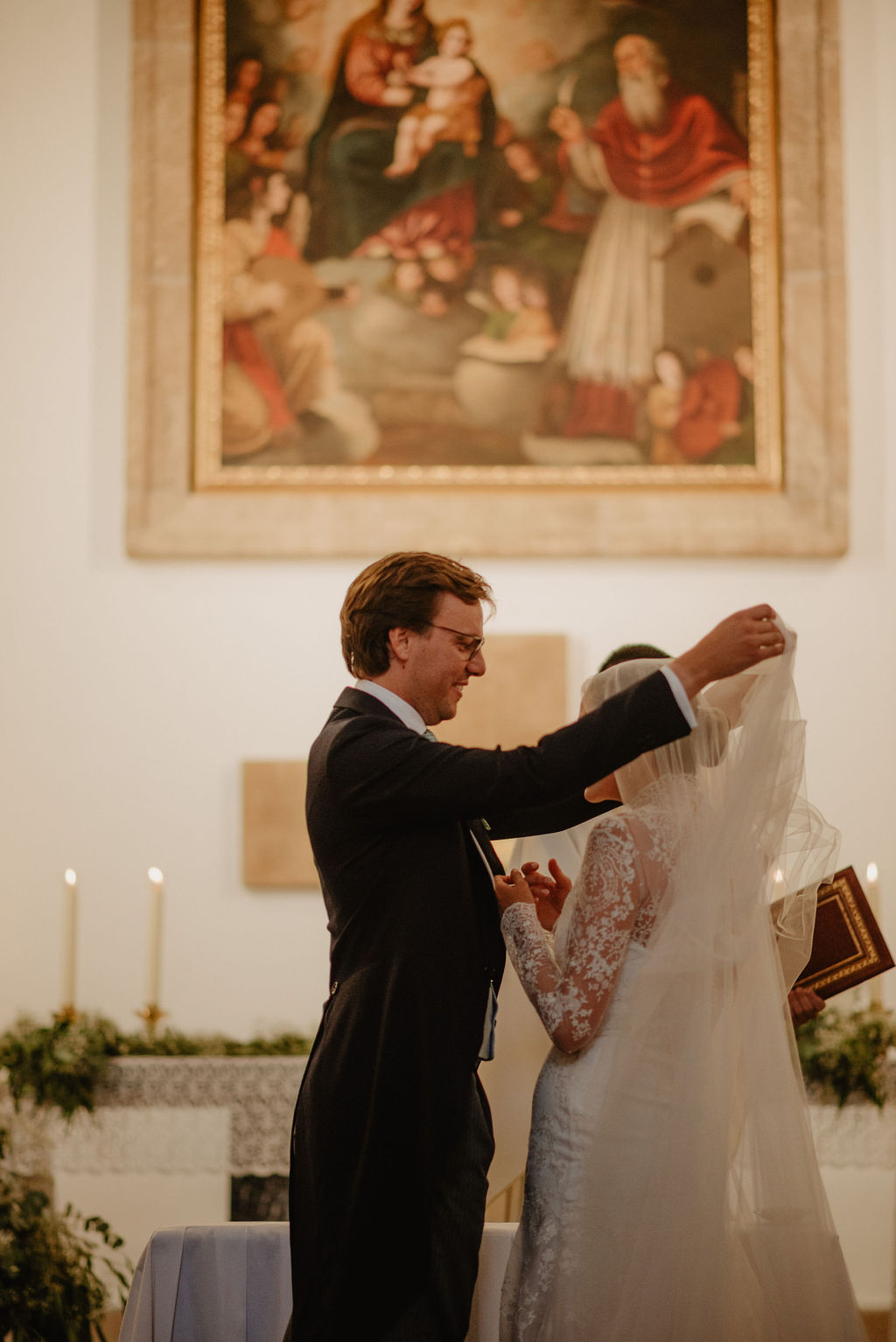 La misa tuvo lugar en el Santuario de Nuestra Señora de los Ángeles de Jávea, un lugar significativo para la novia donde fue bautizada en 1992. La música fue una parte destacada de la ceremonia en la que sonaron «Canon en D Mayor» de J. Pachelbel, para la entrada del novio o «Largo» de la Ópera Xerxes de G.F. Haendel para la novia. Así como, «Gabriel’s Oboe» de E. Morricone; «Adagio in D Minor» de Alessandro Marcello para la entrega de anillos y arras y el momento de desvelar el velo. «L’arrive de la Reina de Saba» de Handel acompañó a los novios en su salida de la iglesia.
