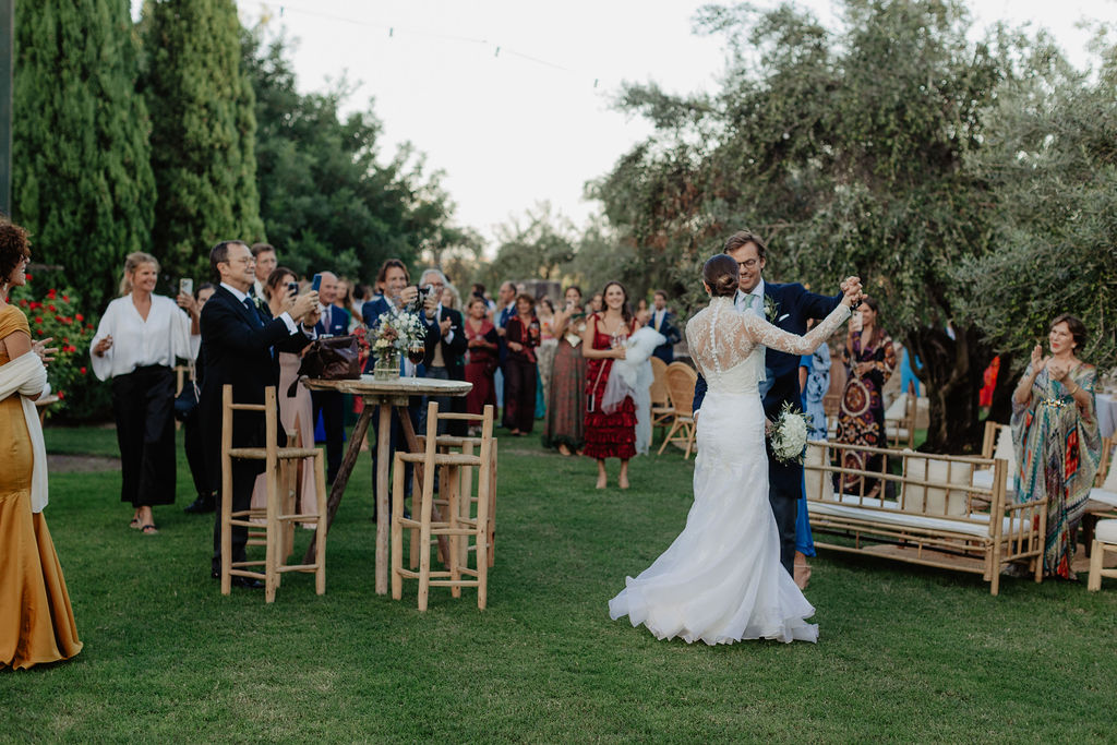 Al día siguiente tuvo lugar la boda y ya el sábado, la postboda continuó en la casa de la familia de la novia en Jávea, con un emocionante grupo flamenco en vivo (los reconocidos hermanos Kiri) y ocho paellas valencianas, preparadas con cariño por la familia de la novia. El catering estuvo a cargo del prestigioso restaurante La Chola de Jávea y los postres fueron preparados por el aclamado restaurante La Perla de Jávea.