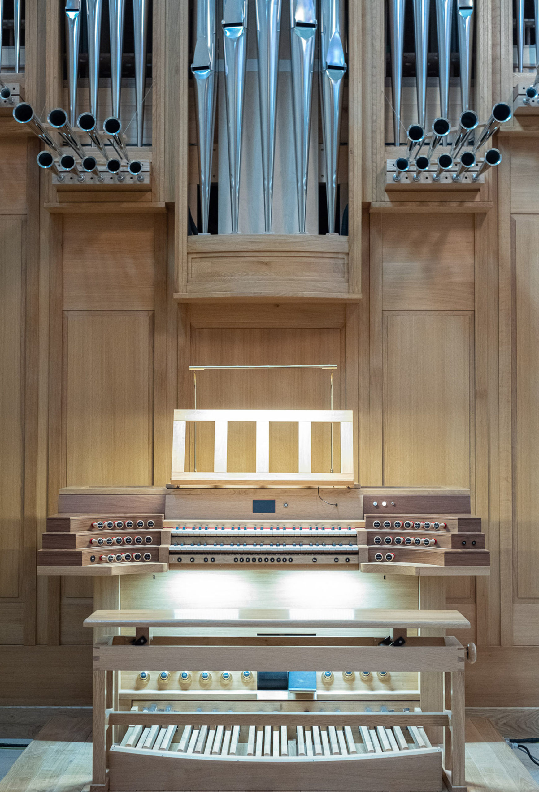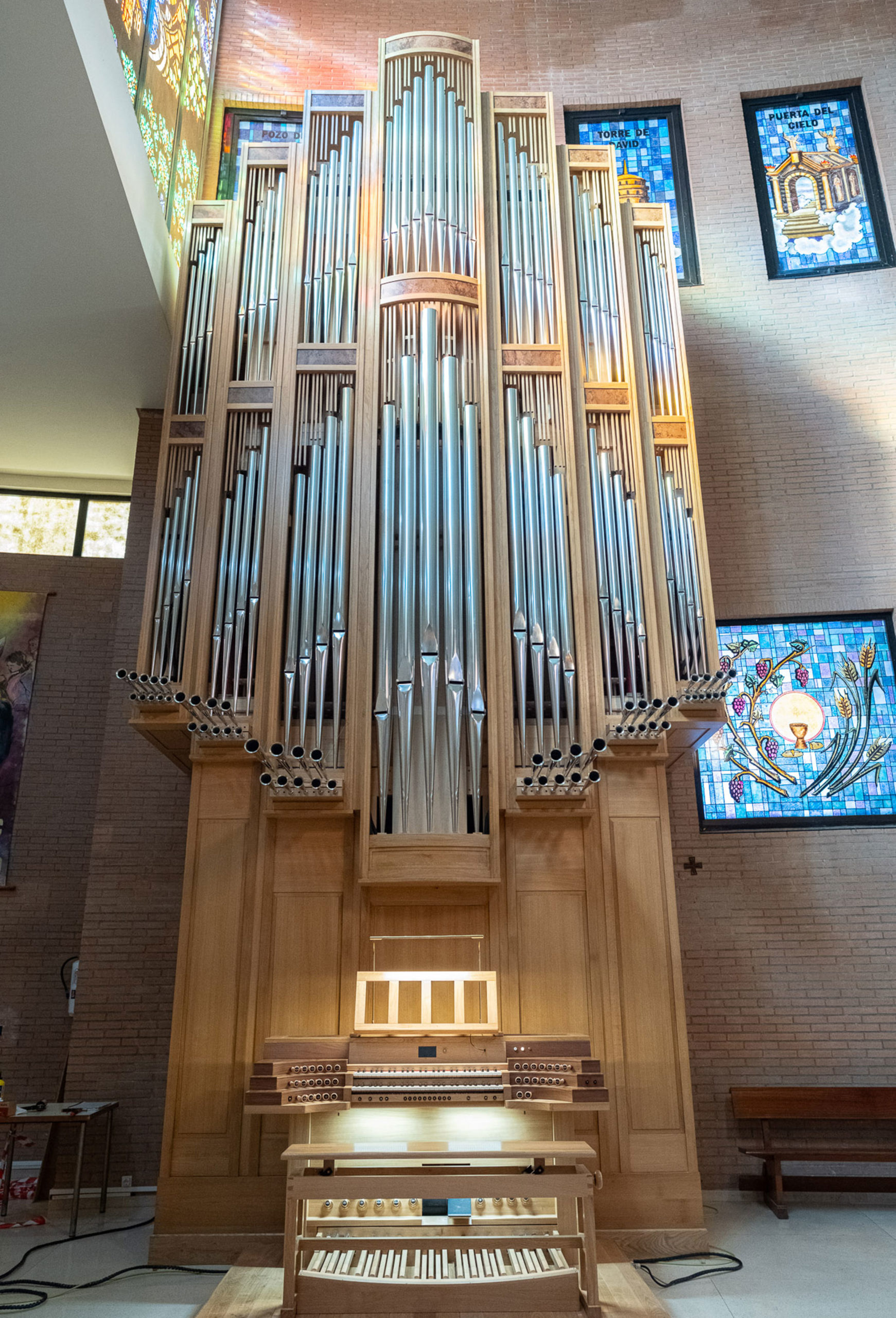 El nuevo instrumento, de gran envergadura, cuenta con 1.800 tubos, algunos de hasta cuatro metros de longitud, y 32 registros, “que permiten diferentes tipos de timbres y sonoridades propias de una orquesta, como trompetas, clarinetes o la imitación de instrumentos de cuerda”, señala Carlos Álvarez, maestro organero encargado de la fabricación del órgano.