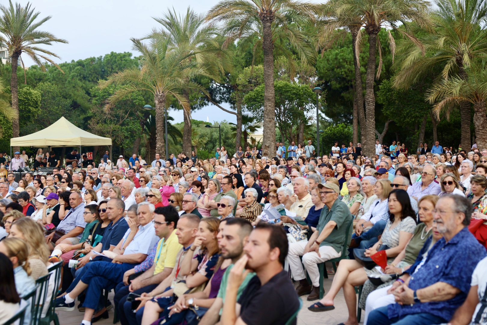 El acto se lleva a cabo en una tarde de primavera, donde el clima templado y el entorno natural de los jardines del Turia ofrecen un escenario perfecto.