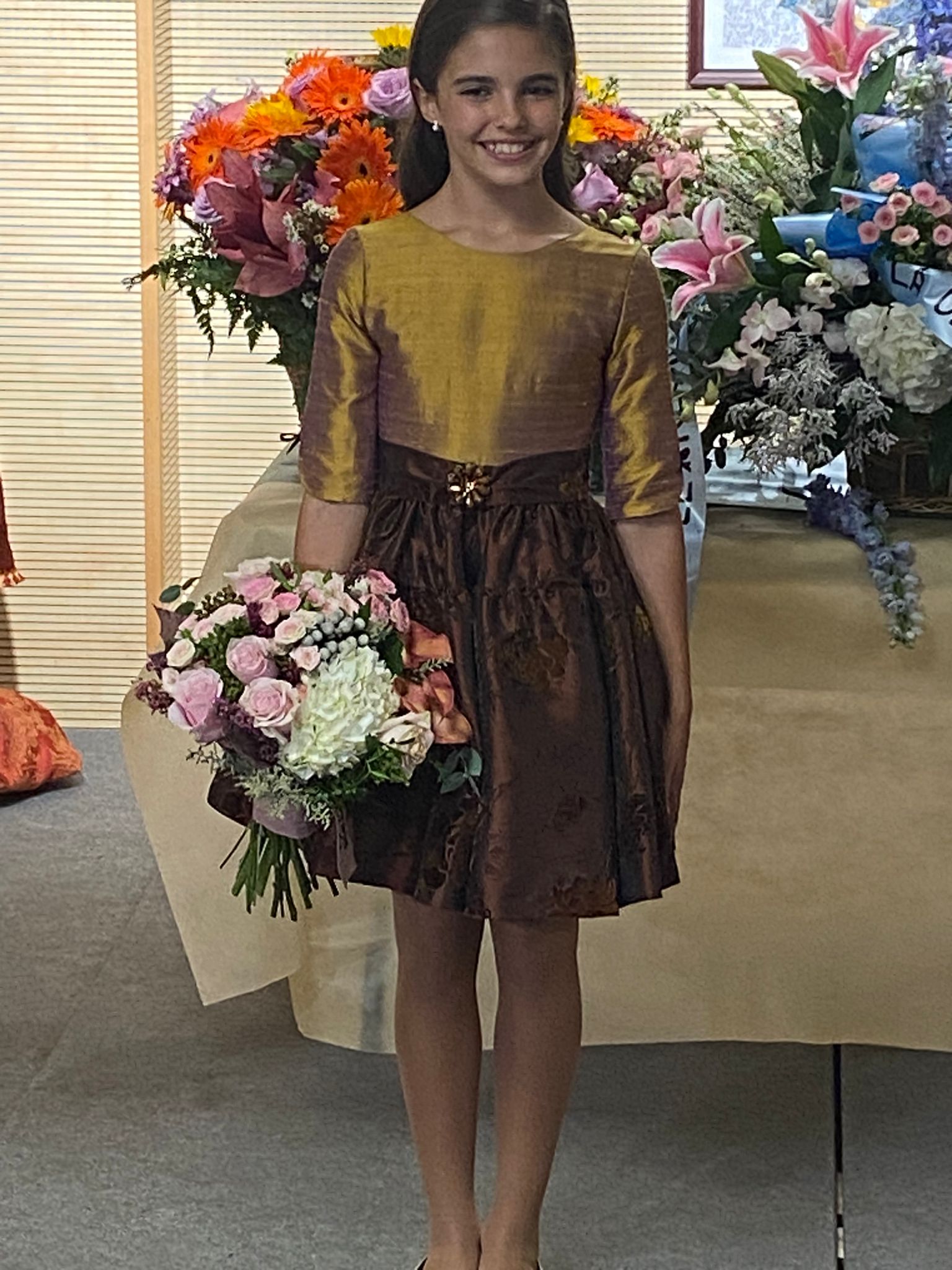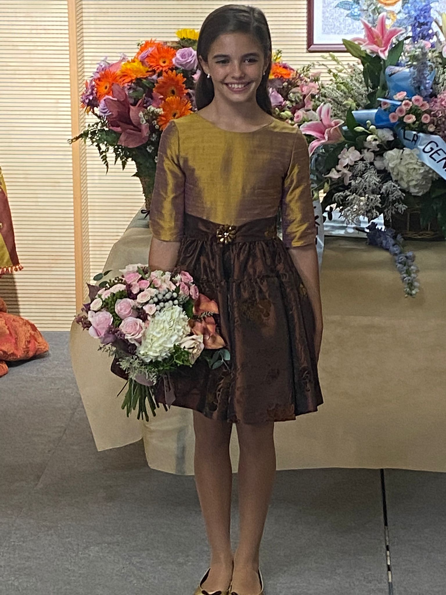 Todas las telas de sus trajes de fallera mayor infantil son de su familia, tienen más de 30 años. Para ella es un orgullo poder lucirlas después de tantos años.