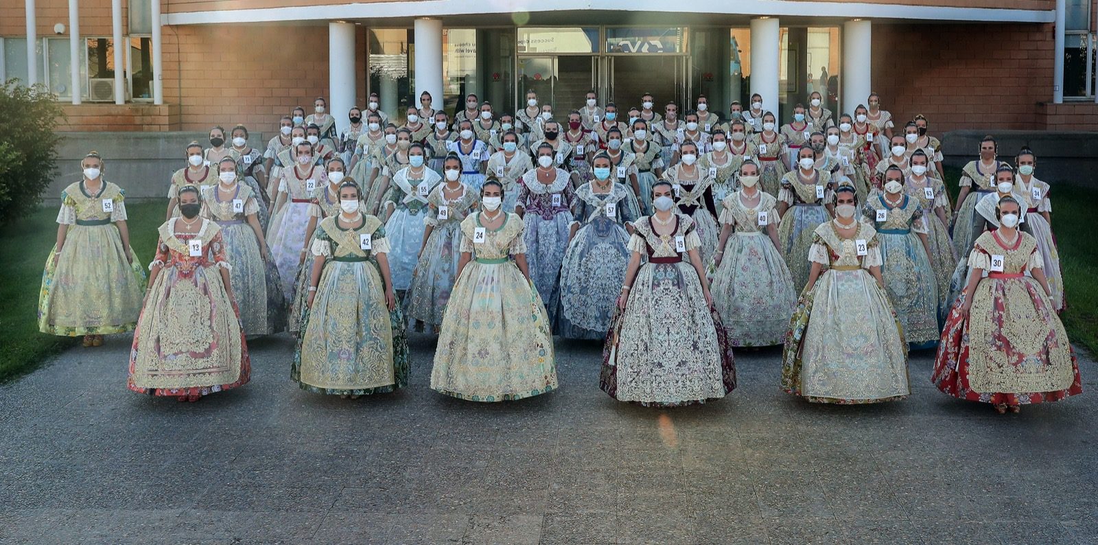 Las candidatas han acudido, como ya lo hicieron el jueves pasado, vestidas con el traje de valenciana, una novedad este año porque la imposibilidad de celebrar La Batalla de les Flors hizo que la foto que tradicionalmente se hacía alli se trasladara a este acto, al que hasta ahora acudían vestidas de particular.