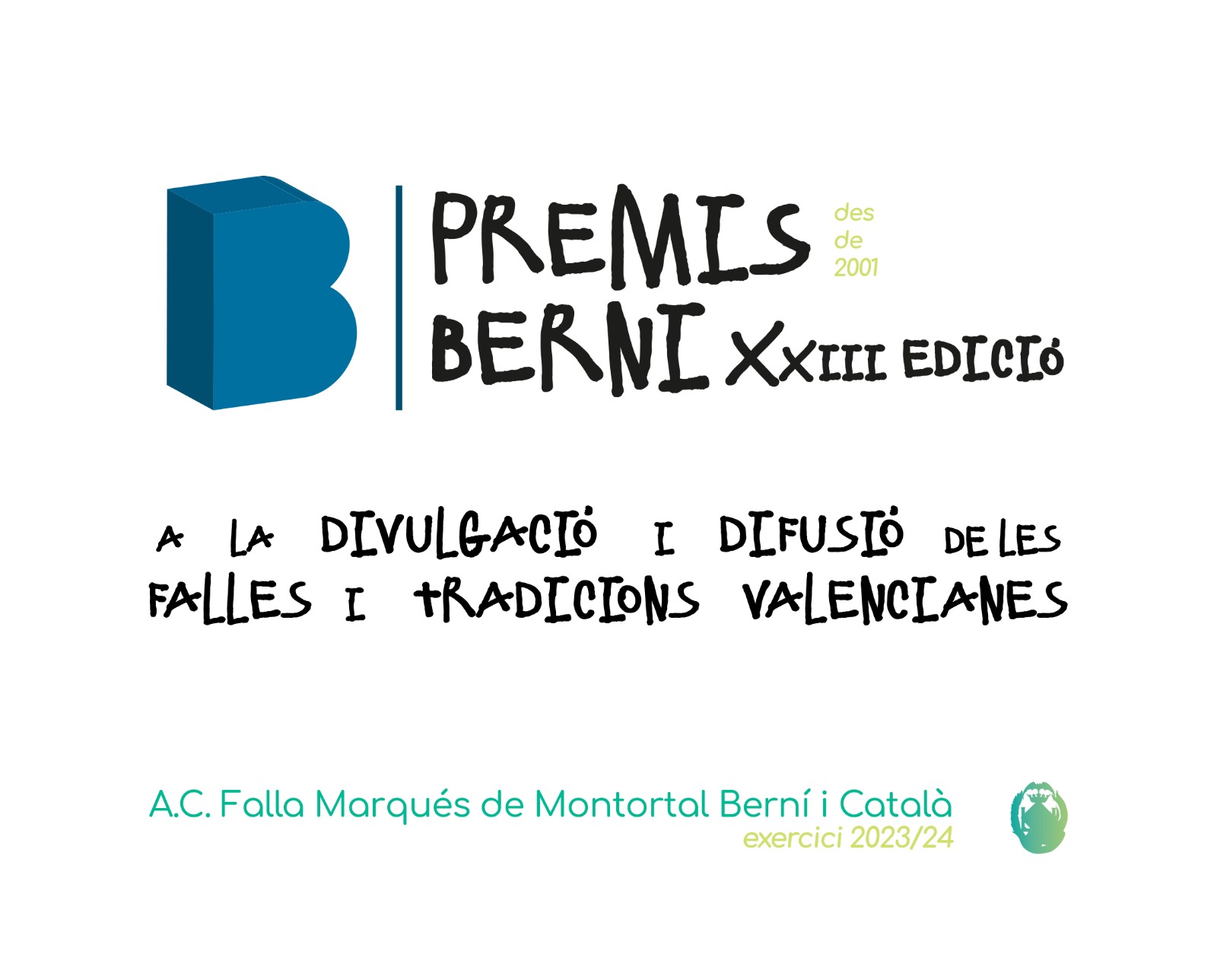 El sábado pasado 7 de octubre, la comisión de la falla Marqués de Montortal Berní i Català se vistió con sus mejores galas para la celebración anual de los Premios Berni 2023.  Unos premios que se celebran desde 2001. Donde la comisión reconoce a aquellas personas o instituciones que destacan en la conservación y promoción de la cultura y tradiciones valencianas.