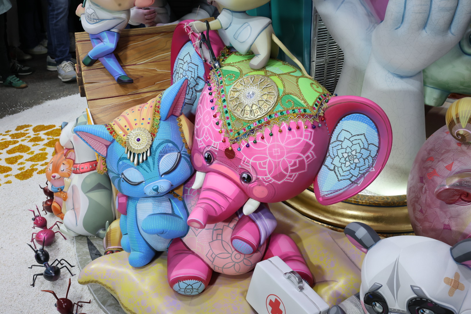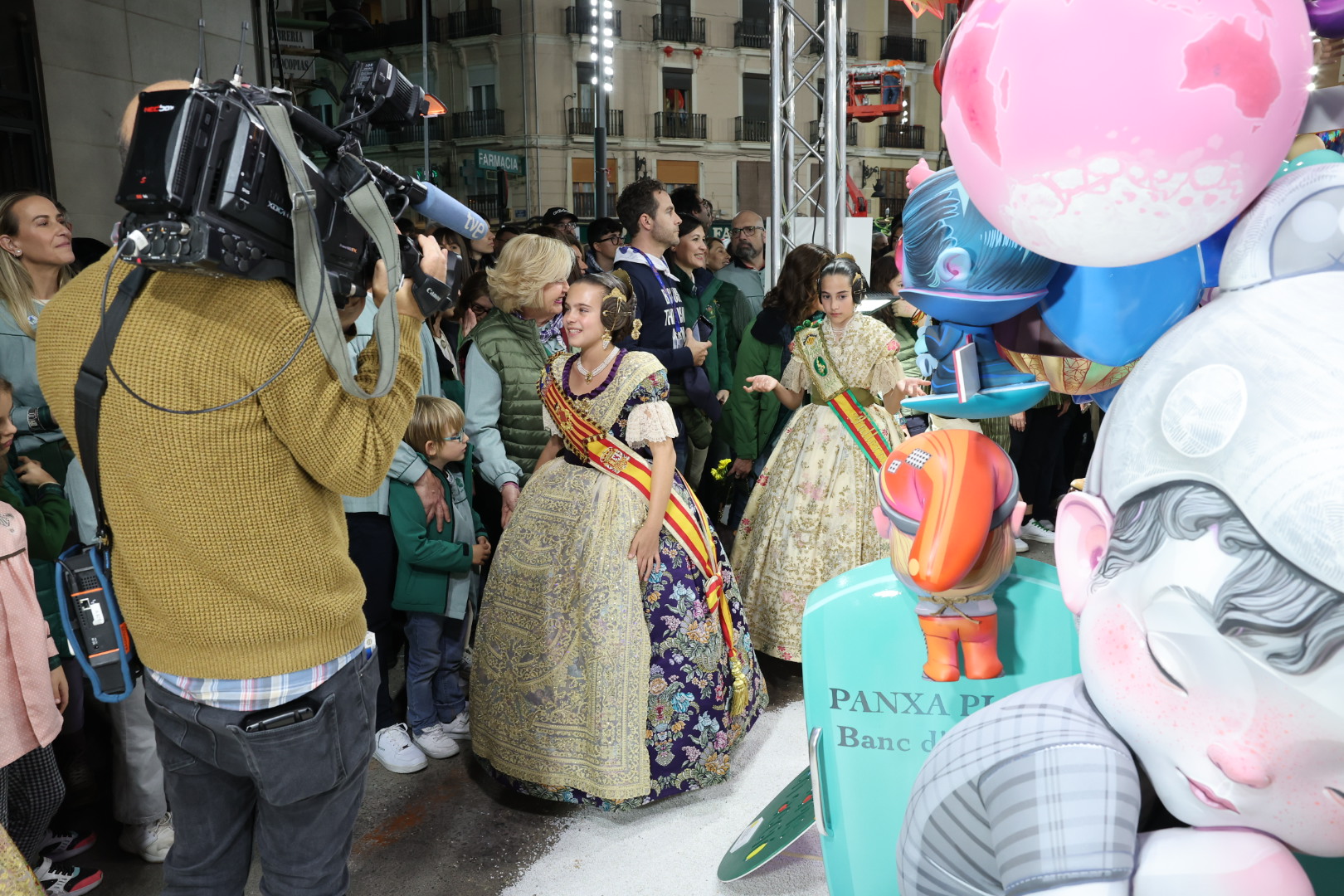 Esta falla infantil, de tres metros de diámetro por unos tres metros de altura, ha tenido un coste de 54.000 euros, el más elevado de su categoría.