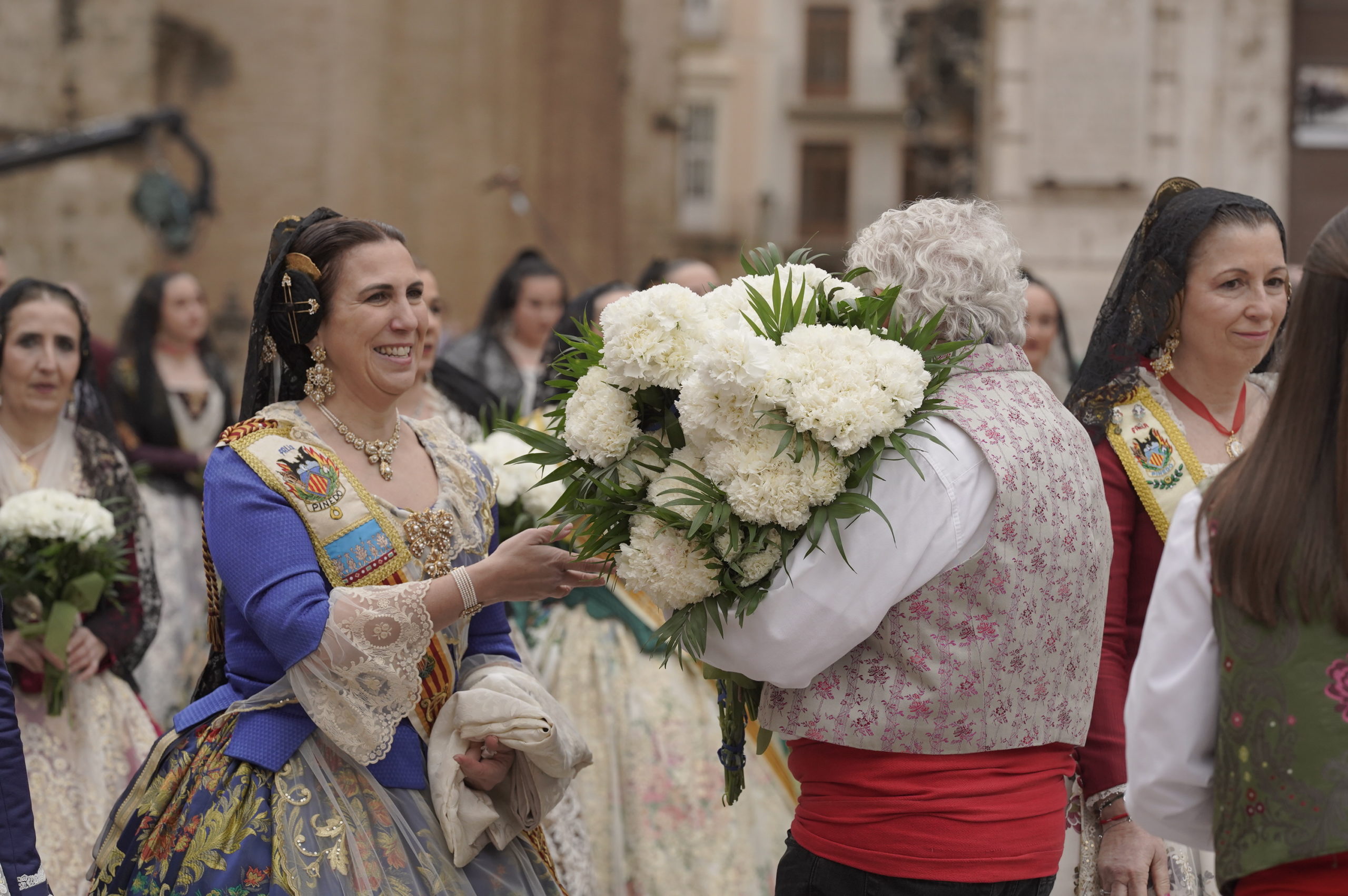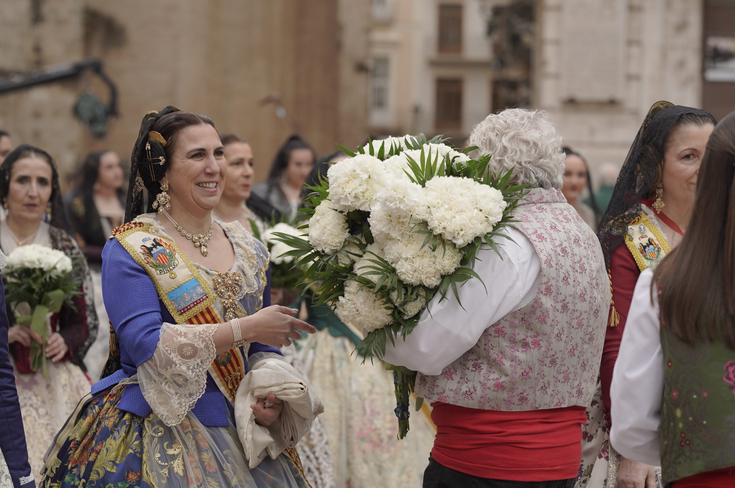 Por eso, este multitudinario pasacalle que se divide en dos jornadas, va acompañado de una puesta en escena a la altura de su arraigo: todas las comisiones falleras de la ciudad, muchas del área metropolitana de València y de pueblos de la provincia desfilan por las calles de la ciudad hasta la Plaza de la Virgen para llevarle flores a la patrona de los valencianos.