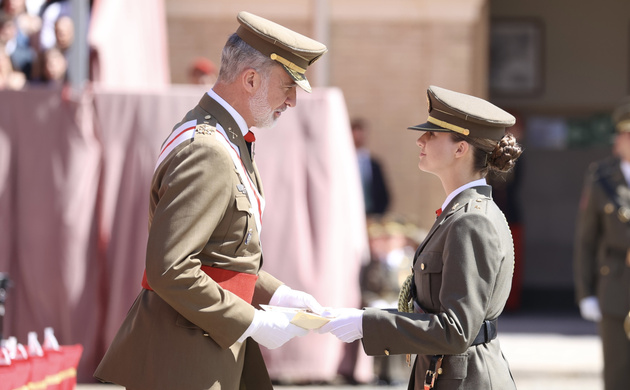 Leonor fue nombrada dama alférez cadete del Ejército de Tierra por su padre, el rey Felipe VI, y recibió la Gran Cruz del Mérito Militar con distintivo blanco, según informa Teresa Fernández-Cuesta.