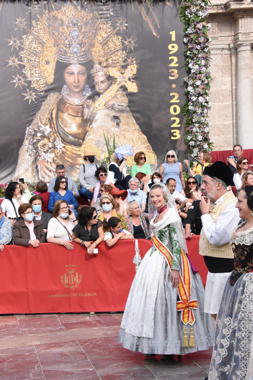 Desde diciembre de 2019, el “manto de los Dragones” arropaba la imagen titular de la Patrona que preside el altar mayor de la Basílica, imagen que ahora, y durante todo el Año Jubilar Mariano del Centenario de la Coronación, está vestida con el “manto del Año Mariano Universal” de 1954, explica Mª Dolores Alfonso, Camarera de la Virgen de los Desamparados.