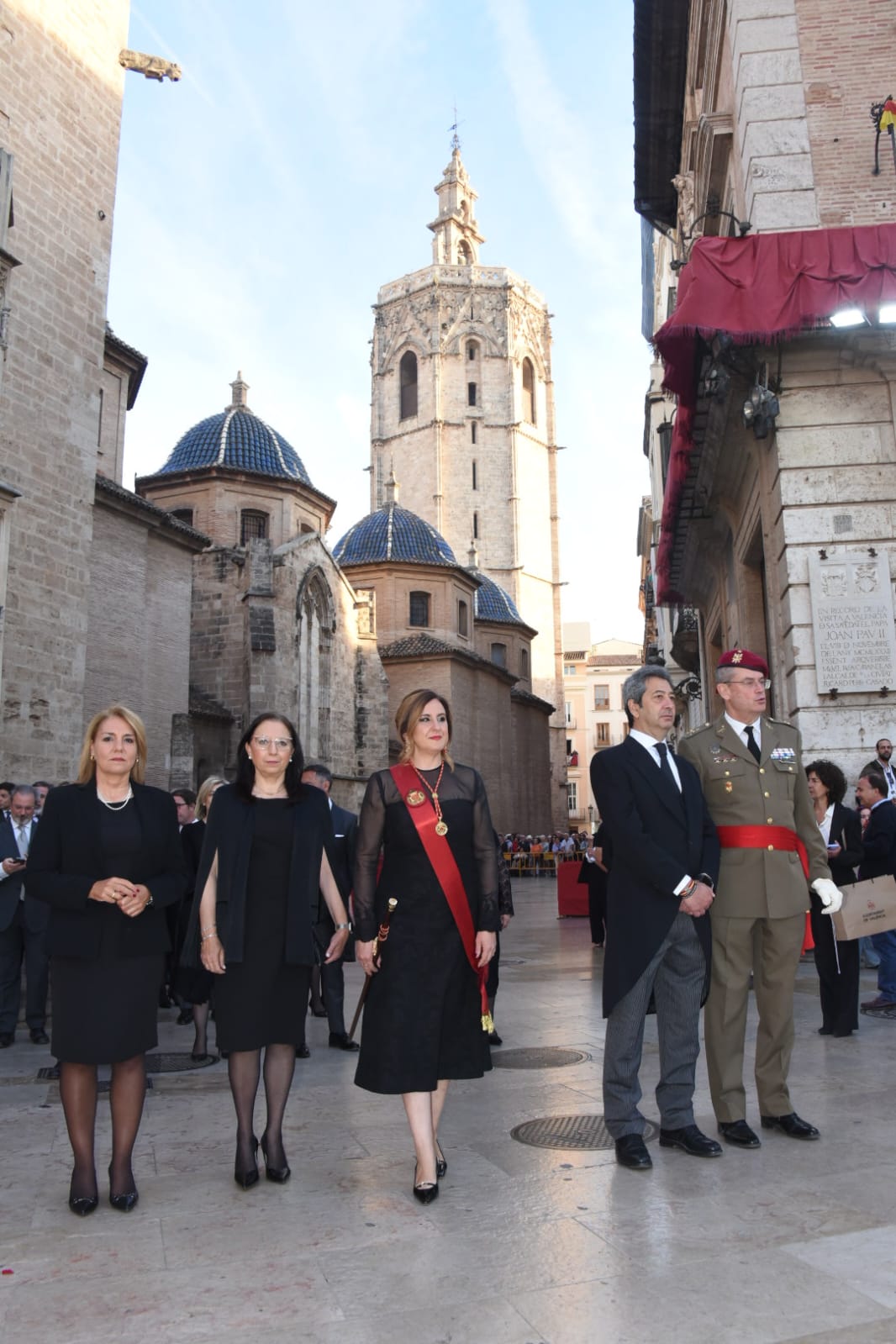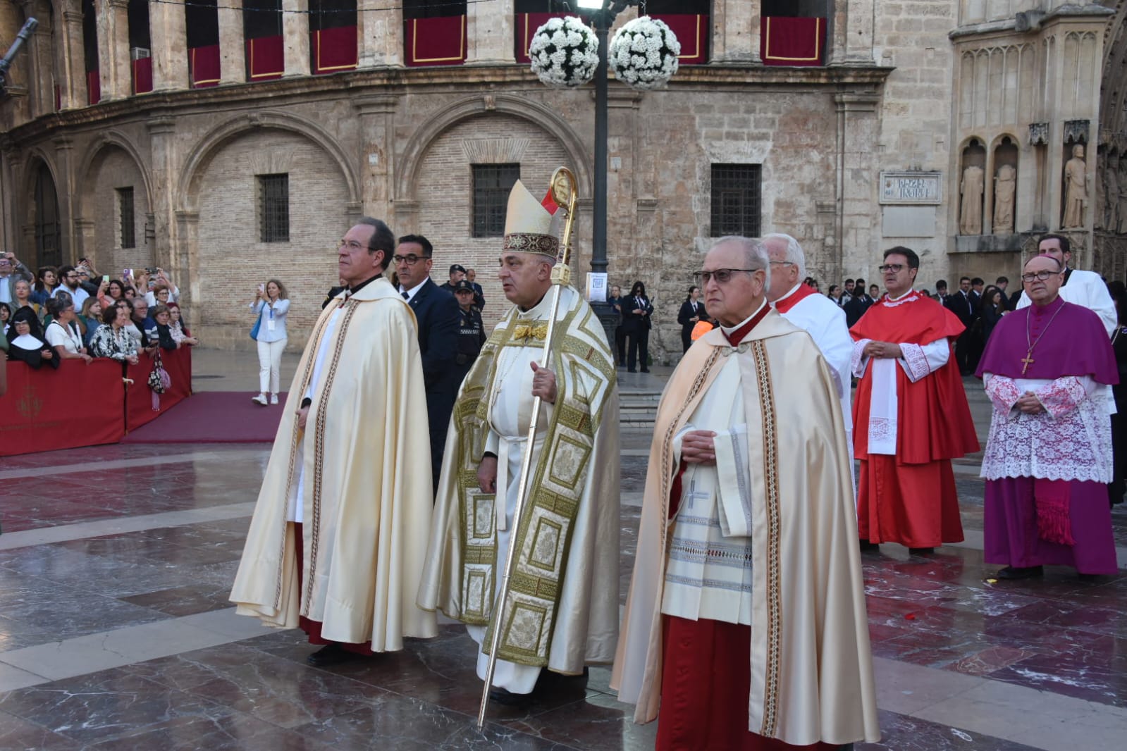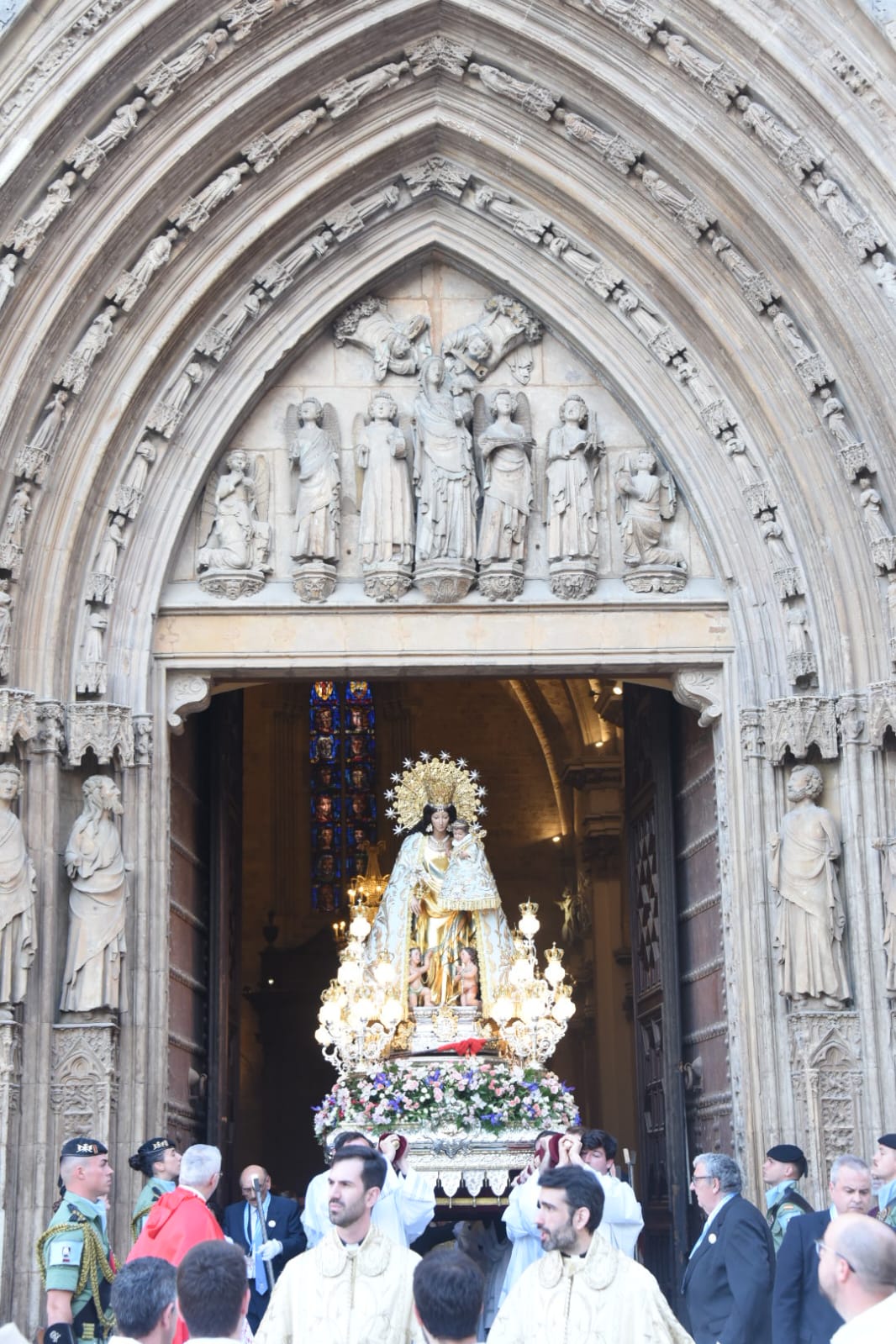 La procesión fue presidida por el arzobispo de València, Enrique Benavent, acompañado por otras autoridades eclesiásticas, y la alcaldesa María José Catalá junto a gran parte de la corporación municipal. También asistieron la presidenta de Les Corts, Llanos Massó, y los vicepresidentes del Consell, Vicente Barrera y Susana Camarero. Las Falleras Mayores de Valencia y sus Cortes de Honor también han sido protagonistas en una procesión marcada por el respeto y la devoción a la Mare de Déu.