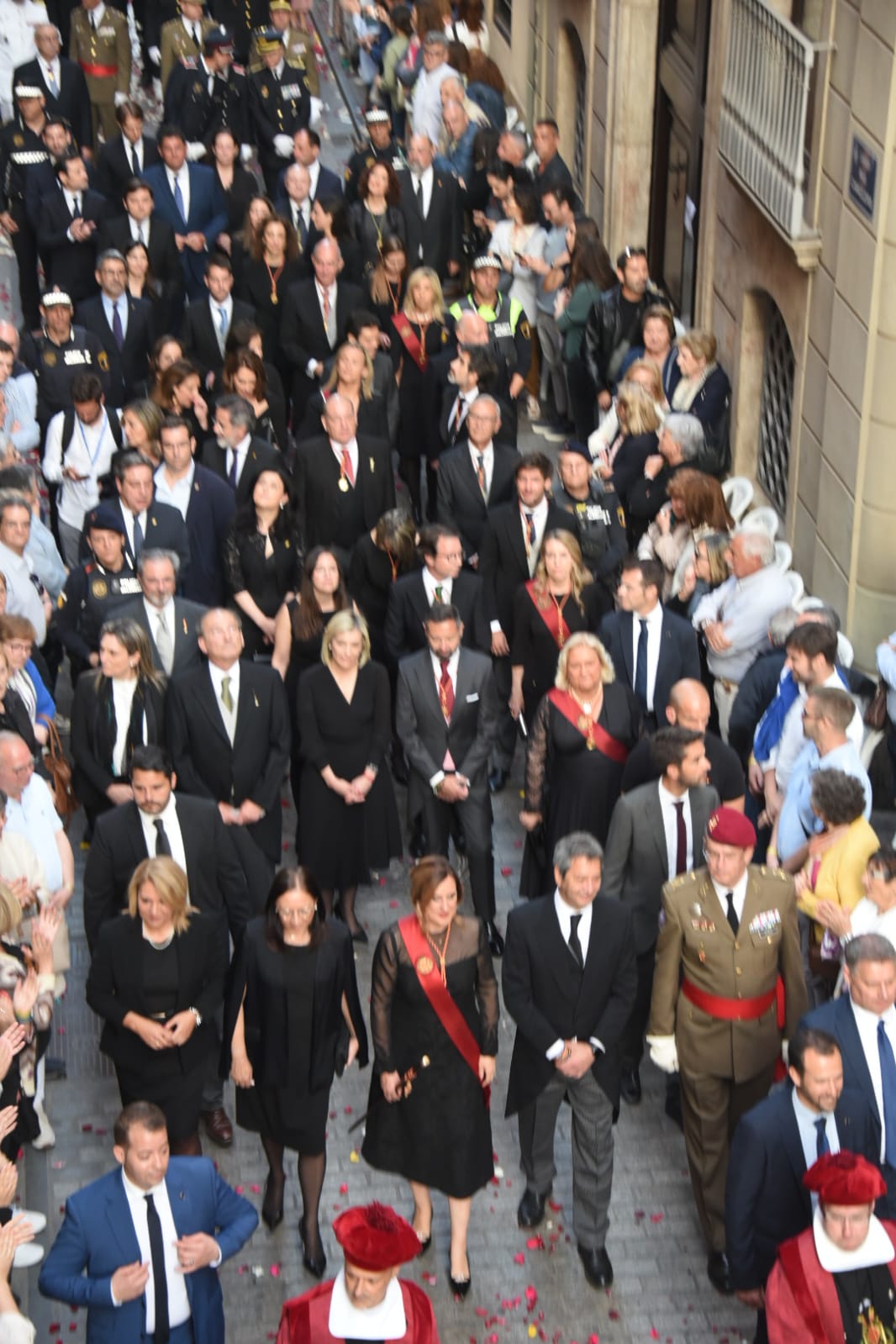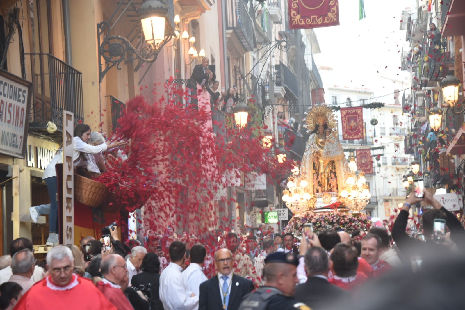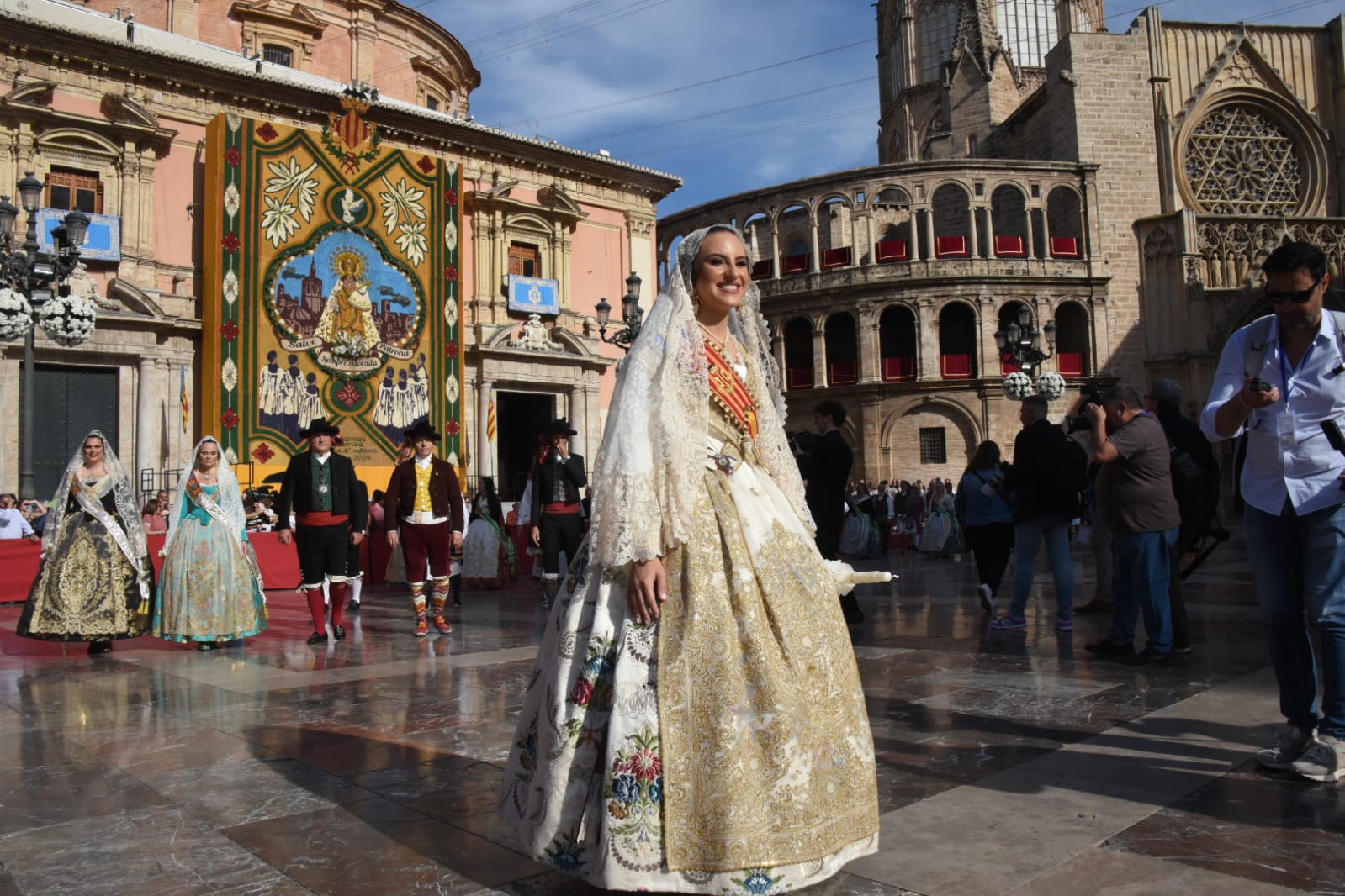 La procesión fue presidida por el arzobispo de València, Enrique Benavent, acompañado por otras autoridades eclesiásticas, y la alcaldesa María José Catalá junto a gran parte de la corporación municipal. También asistieron la presidenta de Les Corts, Llanos Massó, y los vicepresidentes del Consell, Vicente Barrera y Susana Camarero. Las Falleras Mayores de Valencia y sus Cortes de Honor también han sido protagonistas en una procesión marcada por el respeto y la devoción a la Mare de Déu.