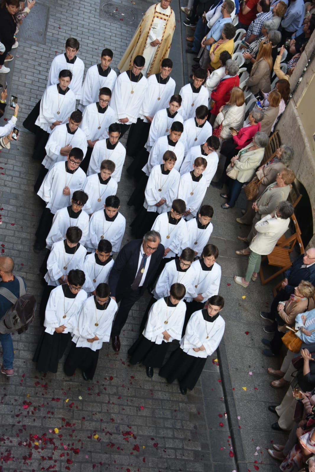 Varios tramos del recorrido fueron adornados con decoraciones florales, incluyendo guirnaldas y tapices en la plaza de la Virgen y en calles como Caballeros, Bolsería, María Cristina, San Vicente y Avellanas.