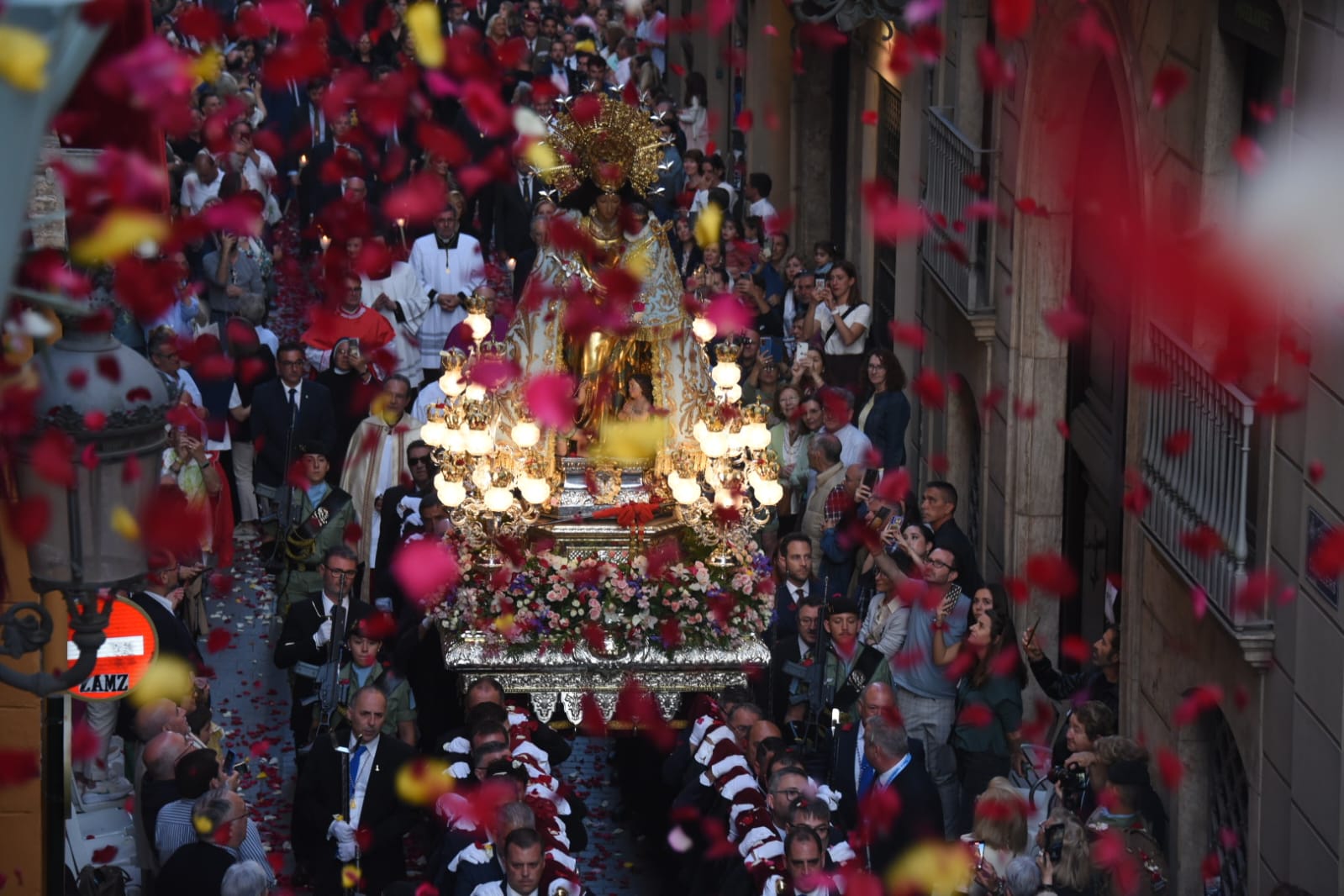 El desfile se llevó a cabo en un ambiente emotivo y de devoción, con los ciudadanos recibiendo a la imagen de la Virgen con gritos de ‘Visca la Mare de Déu’ y lanzando pétalos desde los balcones. Uno de los momentos más destacados tuvo lugar en la calle Avellanas, poco antes de las 21.30 horas, donde la ‘Geperudeta’ fue recibida con una lluvia de pétalos. La imagen regresó a la Basílica alrededor de las 21.40 horas.