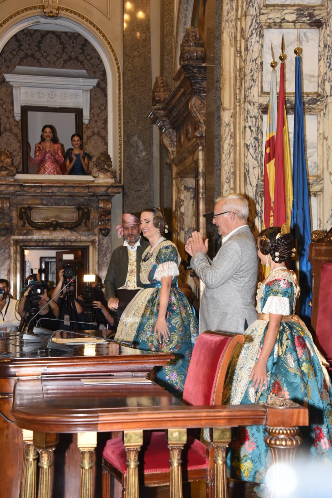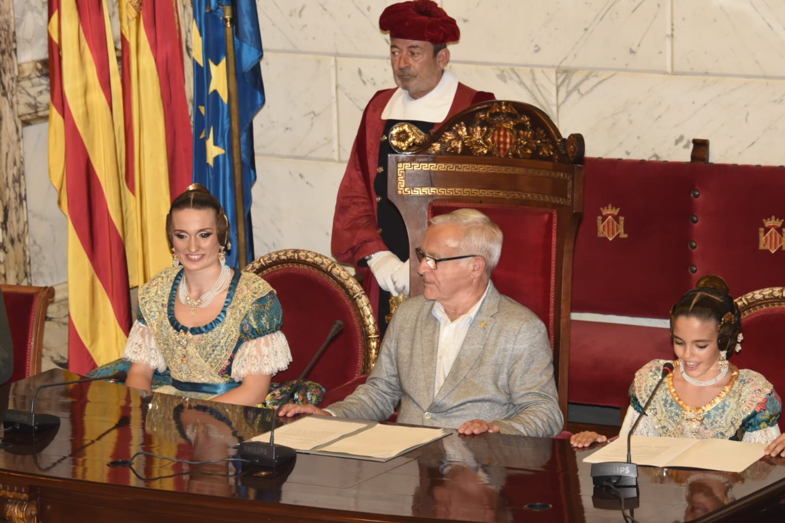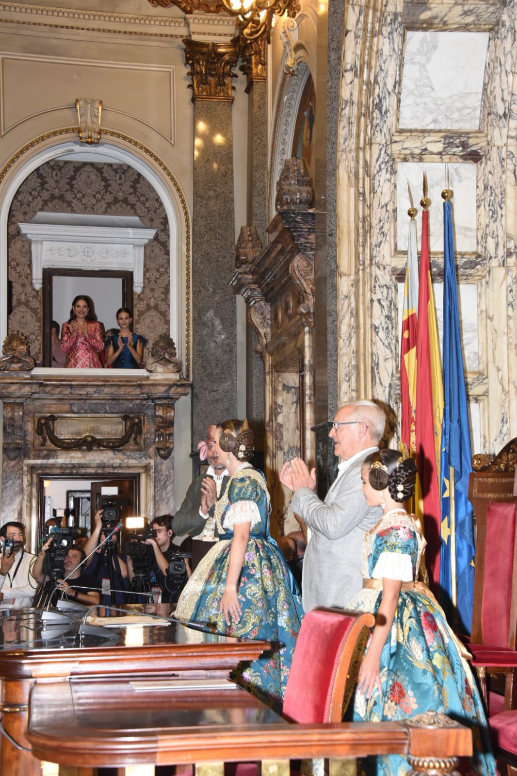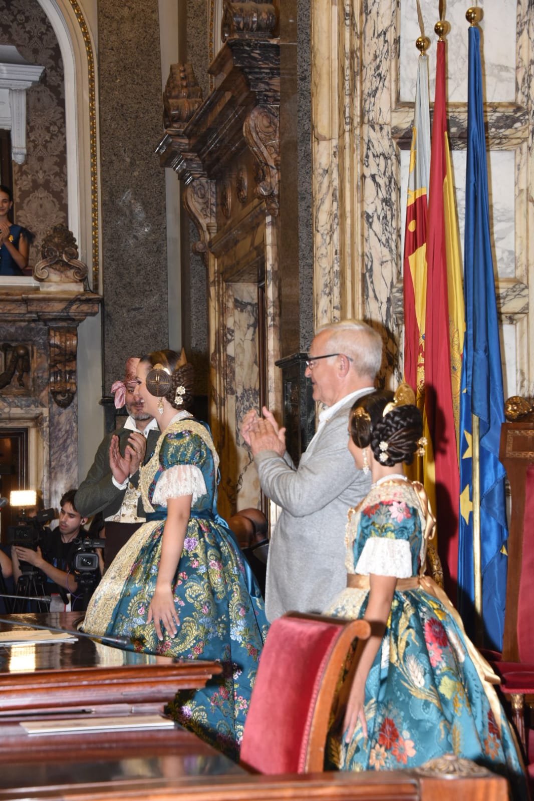 Este miércoles se ha celebrado la proclamación de las Falleras Mayores de València en el hemiciclo municipal, se trata de su primera puesta en escena en uno de los actos más solemnes y emotivos para las nuevas representantes.