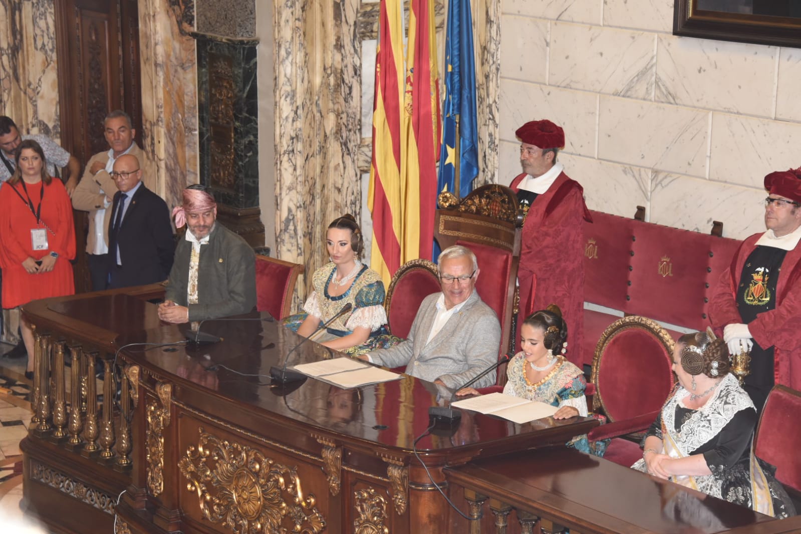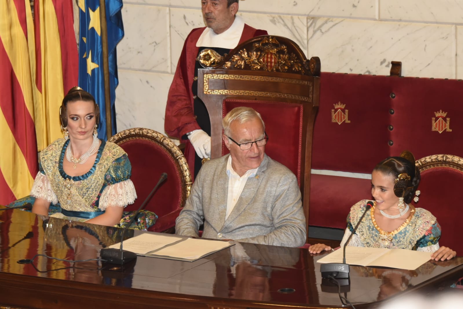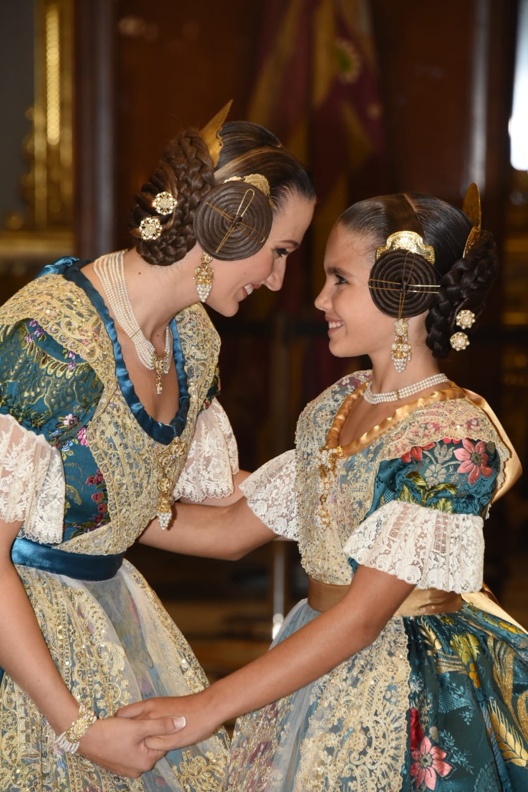 Este miércoles se ha celebrado la proclamación de las Falleras Mayores de València en el hemiciclo municipal, se trata de su primera puesta en escena en uno de los actos más solemnes y emotivos para las nuevas representantes.