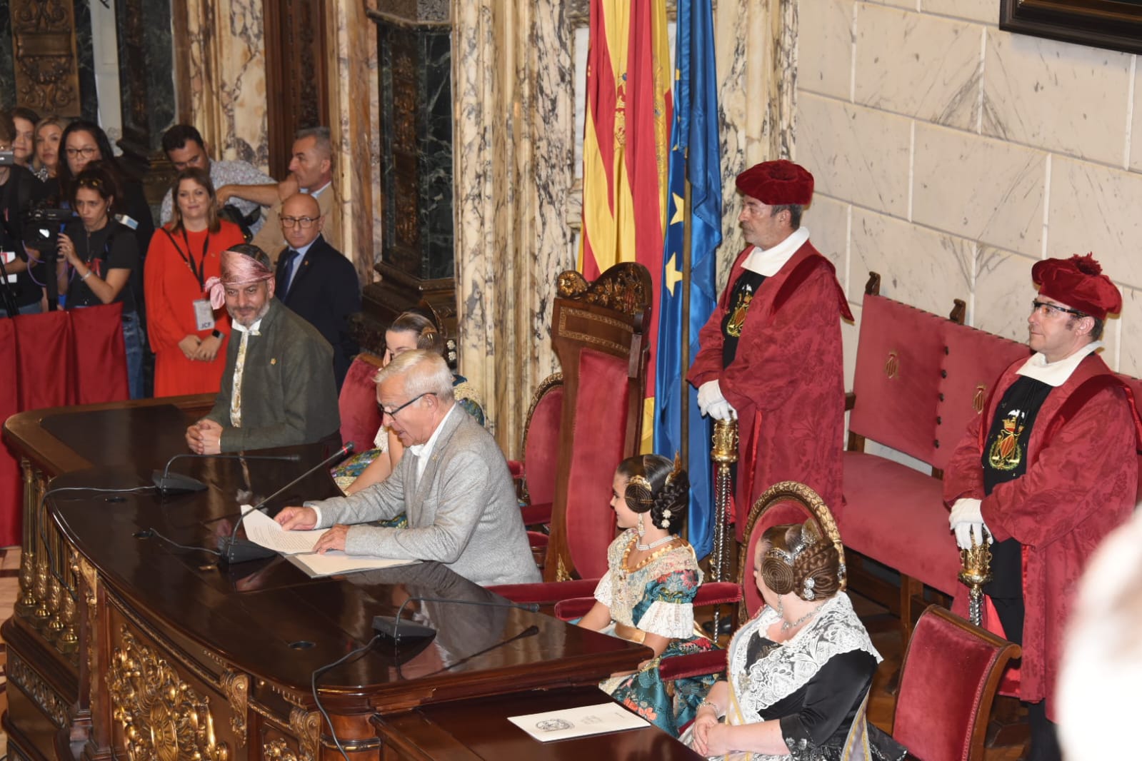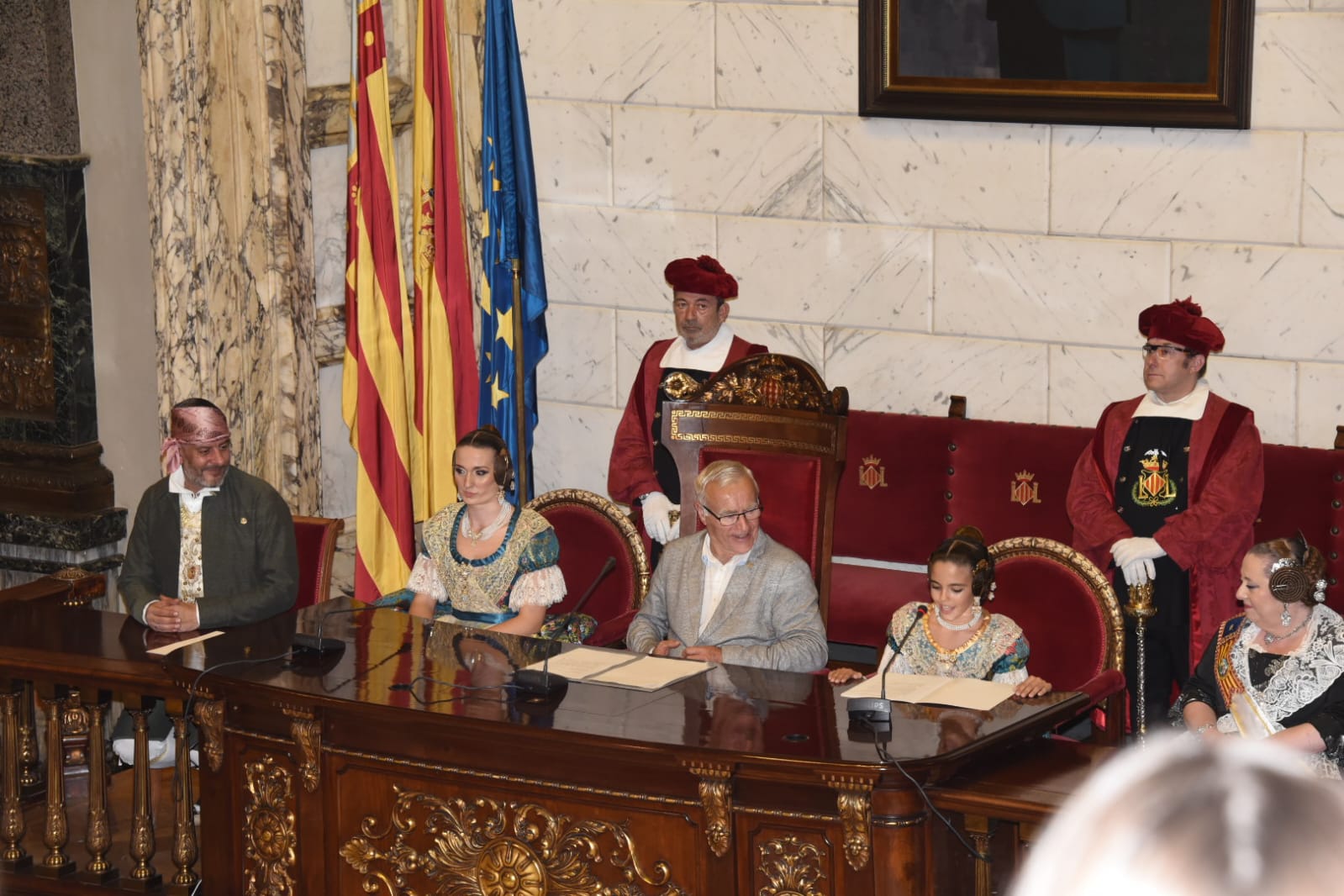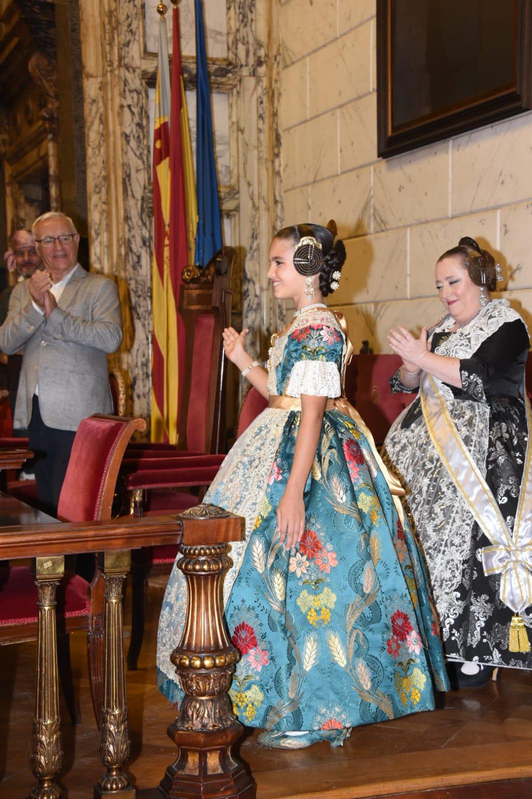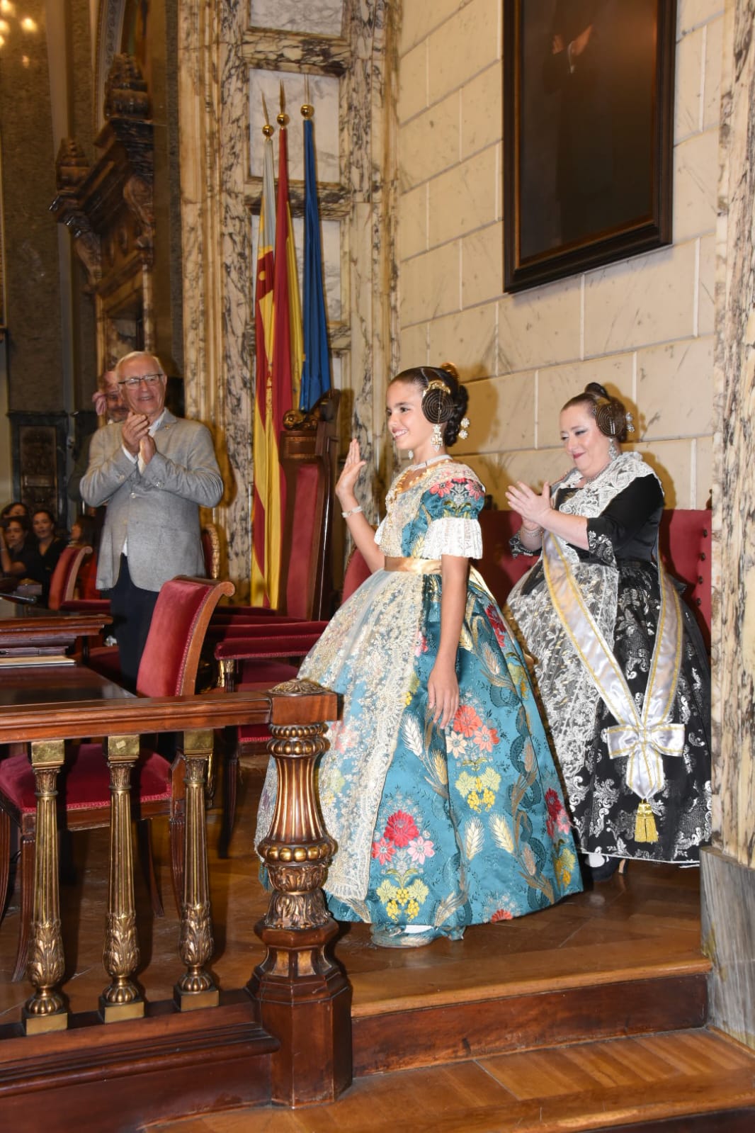 Este miércoles se ha celebrado la proclamación de las Falleras Mayores de València en el hemiciclo municipal, se trata de su primera puesta en escena en uno de los actos más solemnes y emotivos para las nuevas representantes.