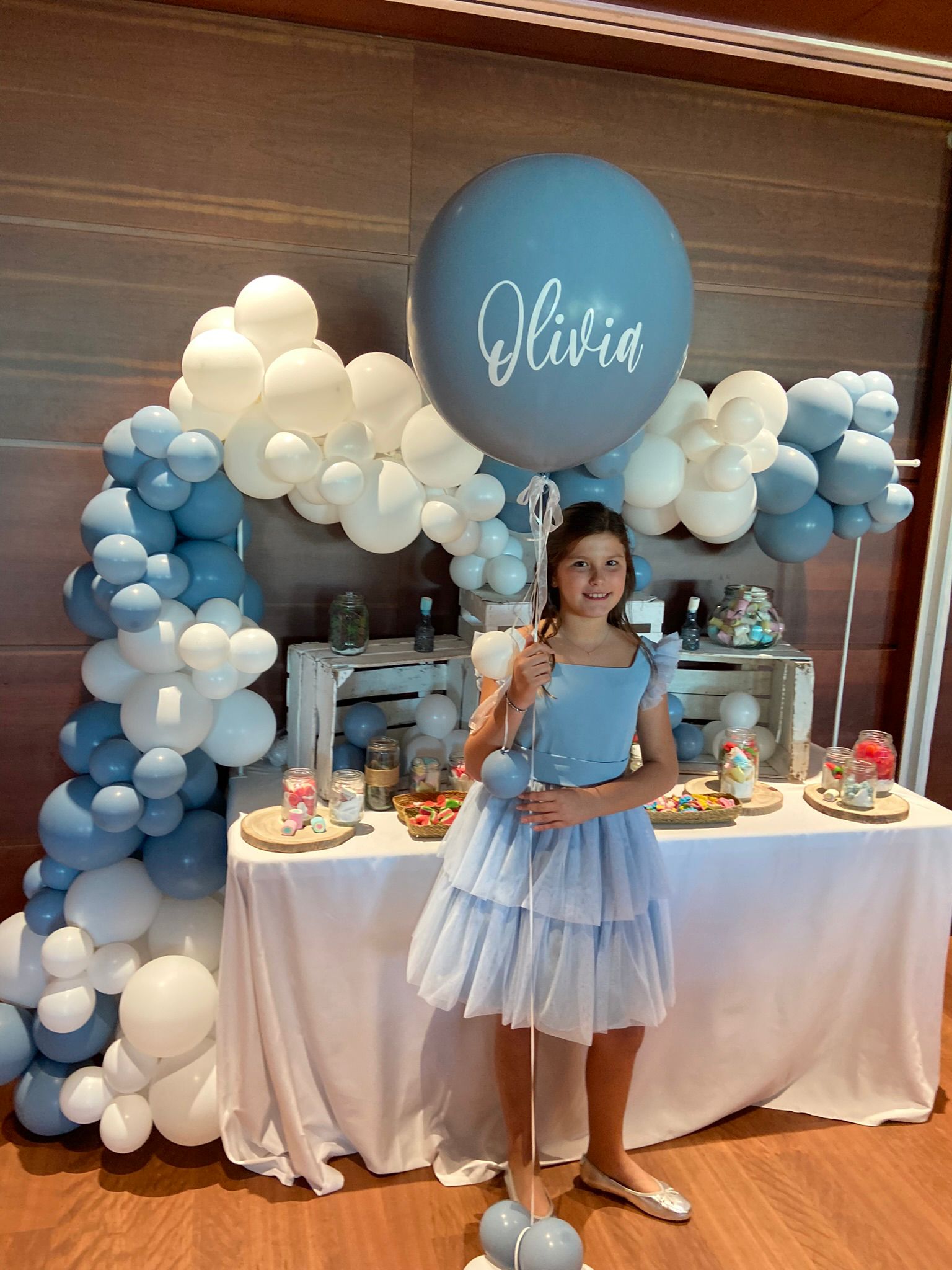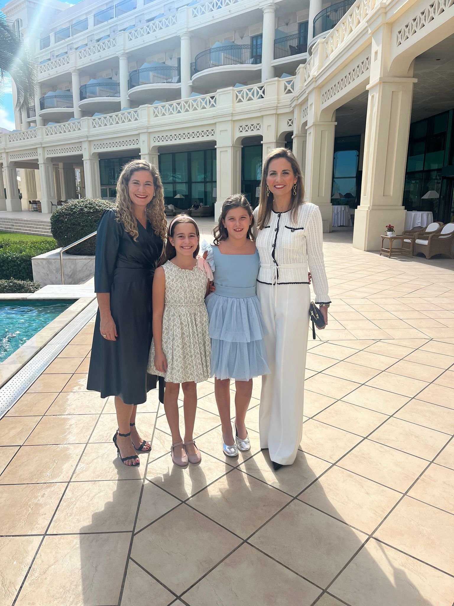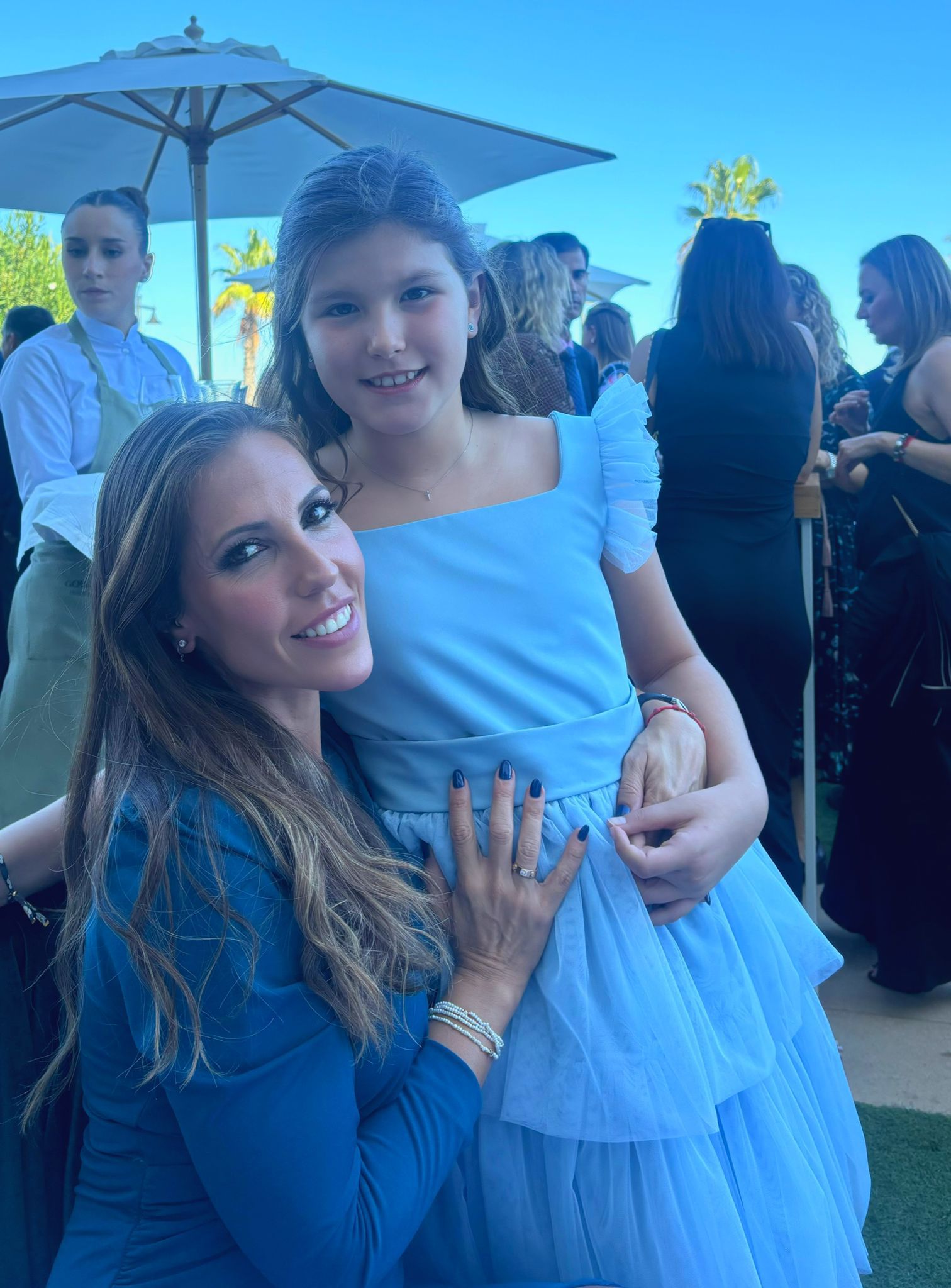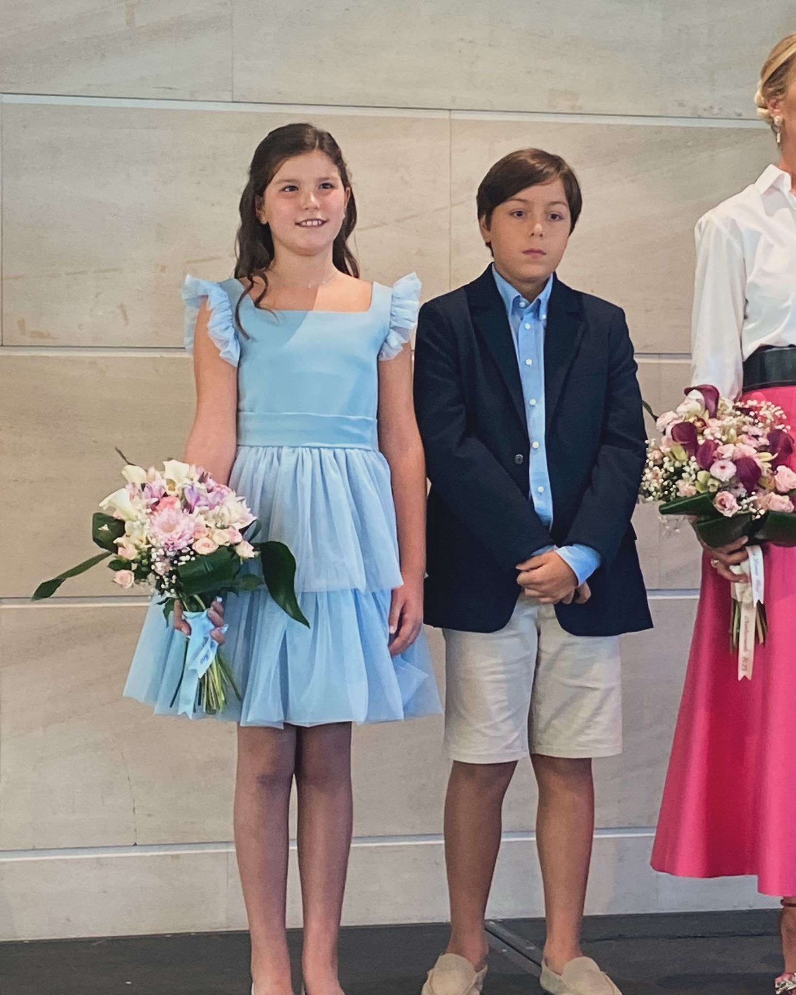 Para completar su indumentaria, María Estela lució un aderezo de racimo en oro de 18 quilates con brillantes en talla rosa, acompañado de joia, pinchos, pendientes, collar y una pulsera de siete tiras de perlas de Art Antic, además de unas espectaculares puntillas de Santos Textil.