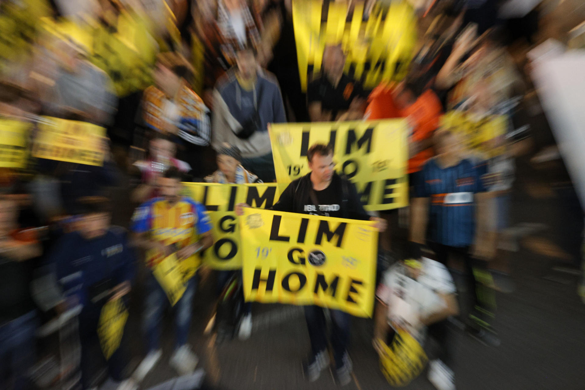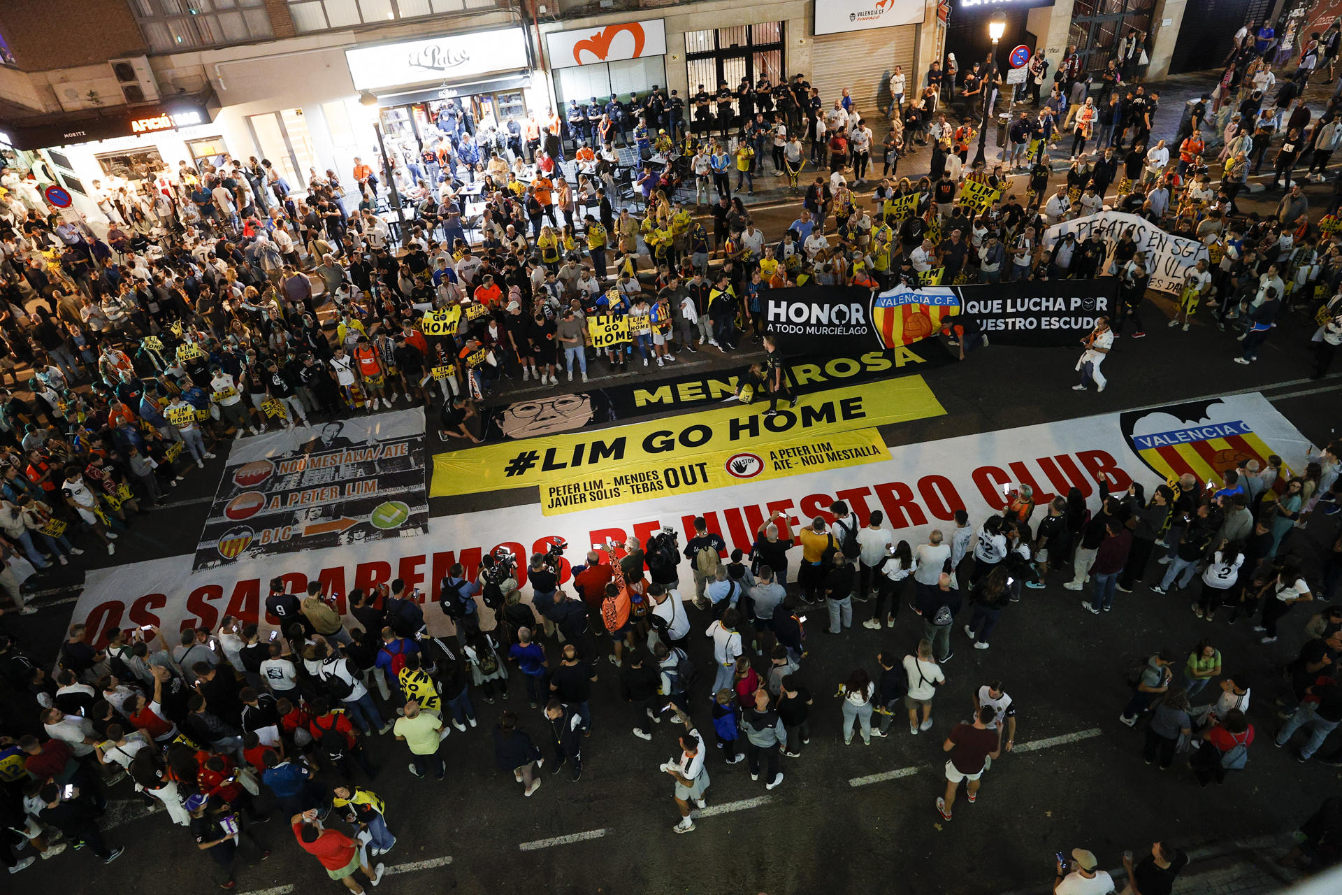 Los aficionados del Valencia, que ya se habían concentrado en la previa del partido para denunciar «la tiranía de Lim», estuvieron durante veinte minutos tras el final del partido frente al palco de Mestalla, antes de acudir al aparcamiento de los futbolistas dentro del estadio, una zona de la que fueron obligados a salir mediante cargas, por lo que se movilizaron desde ahí a la sede social del club, a pocos metros del estadio.
