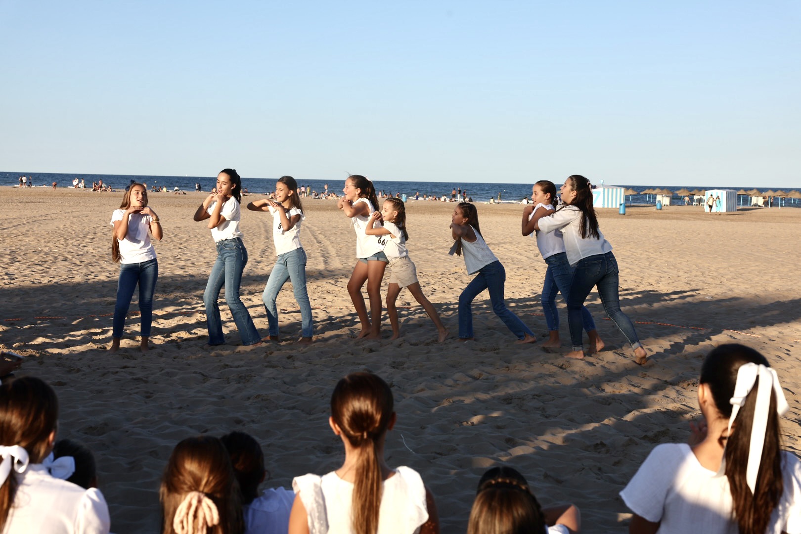 Las 73 candidatas infantiles a Corte de Honor infantil han tenido una prueba en la playa y han podido disfrutar de una tarde llena de juegos en la que la diversión ha sido la completa protagonista de la jornada. Durante la puesta de sol las niñas ha realizado diversas actividades en grupos , además de deleitar al resto de compañeras de grandes bailes.
