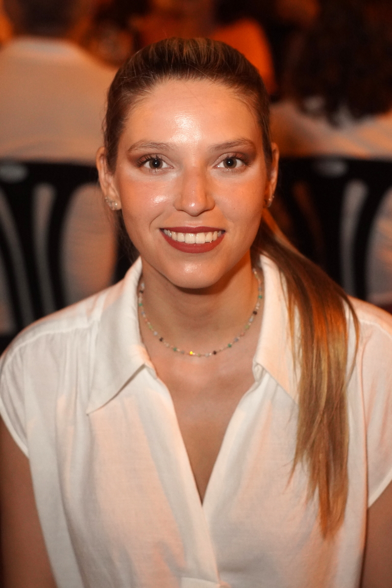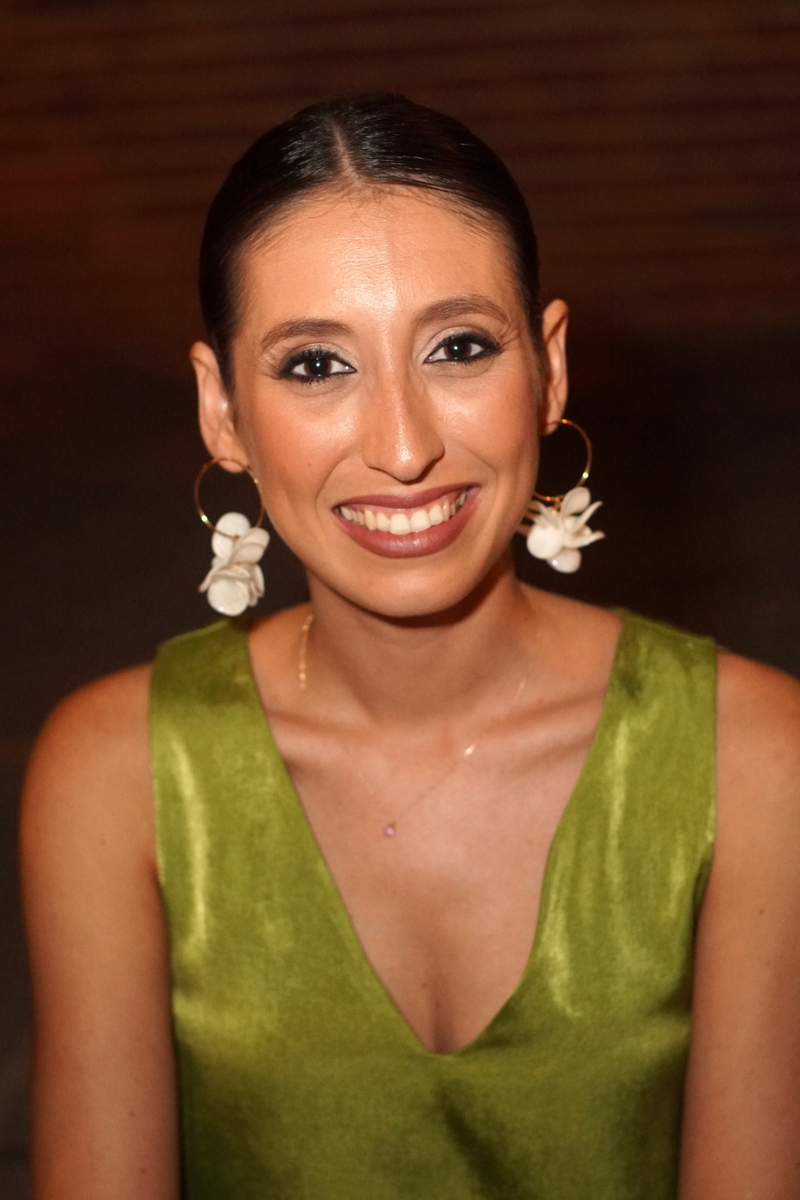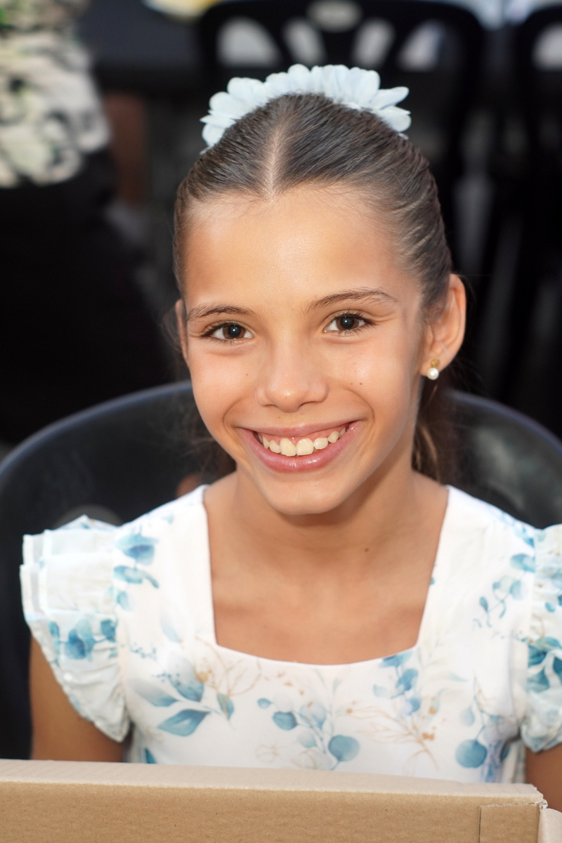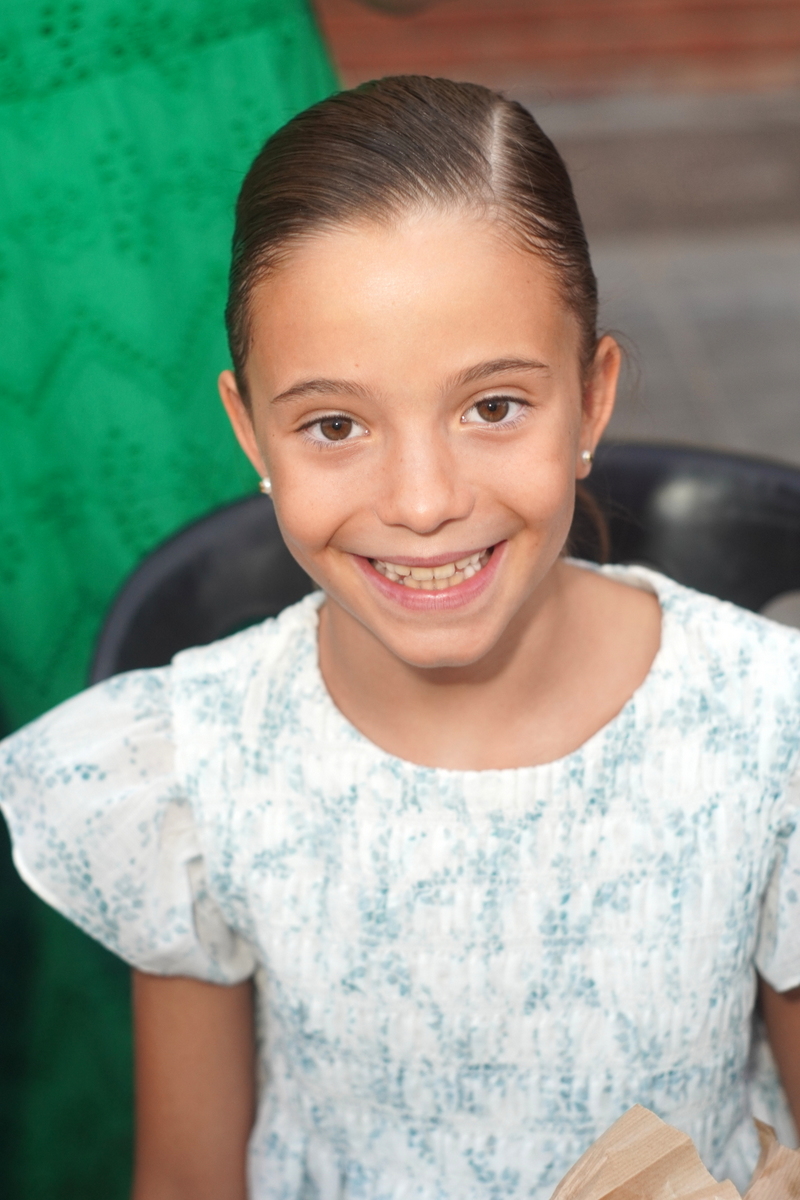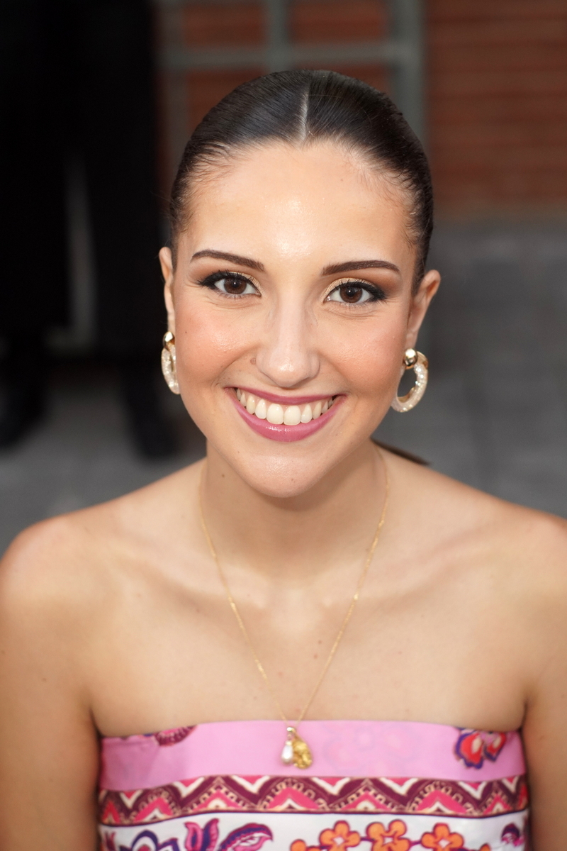 Para completar su indumentaria, María Estela lució un aderezo de racimo en oro de 18 quilates con brillantes en talla rosa, acompañado de joia, pinchos, pendientes, collar y una pulsera de siete tiras de perlas de Art Antic, además de unas espectaculares puntillas de Santos Textil.