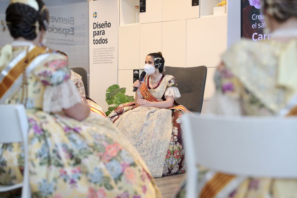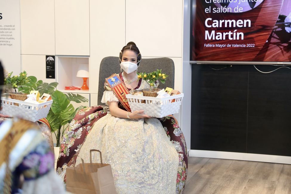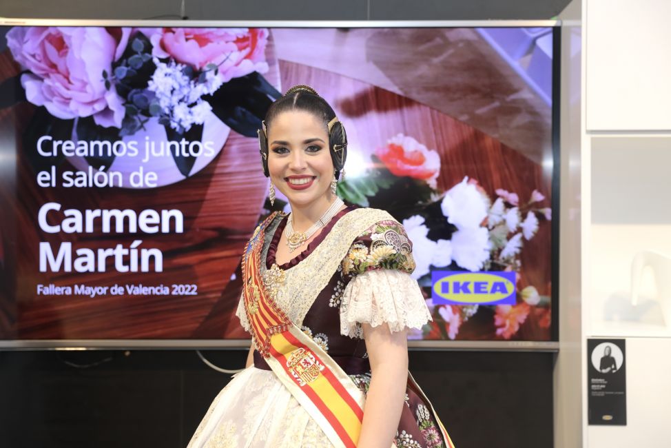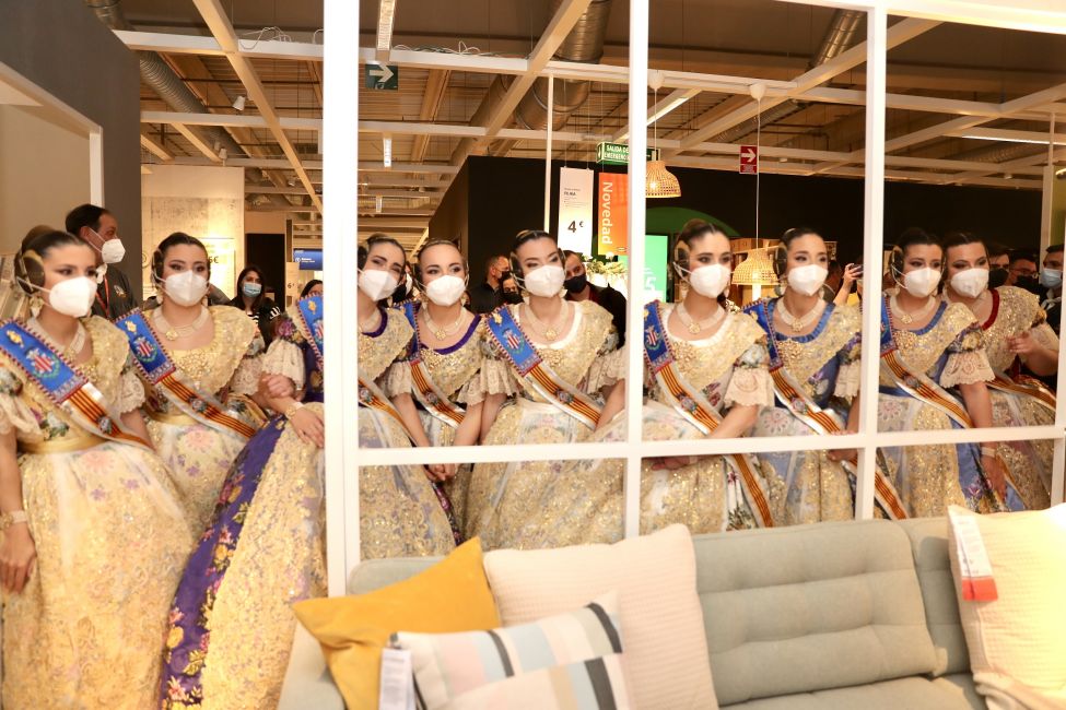 La Fallera Mayor de València y su Corte de Honor han visitado este miércoles el centro de Ikea en Alfafar (València). La visita de Carmen Martín tenía una clara justificación. Y es que la máxima representante ha inaugurado en Ikea el primer salón con inspiración fallera que, de hecho, ha estado co-creado por ella misma, con el equipo de diseño de interiores de Ikea.