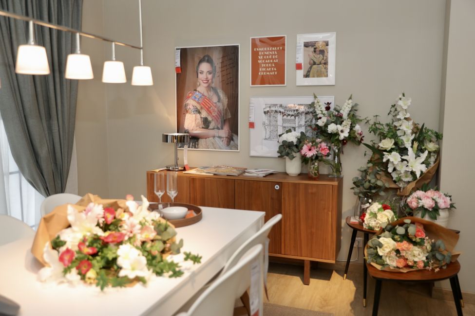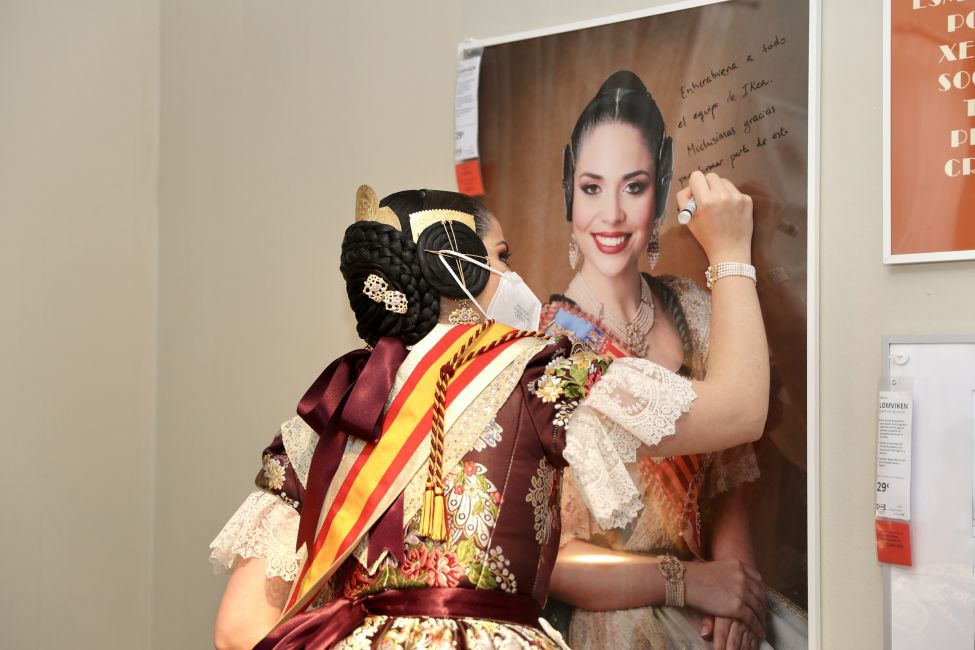 La estancia, que se puede contemplar en la sección de salones y comedores de Ikea del centro ubicado en Alfafar, está presidida por un cuadro y varias fotografías de la máxima representante de las Fallas de València, que ha firmado durante su visita para dejar emprempta de esta novedosa iniciativa.