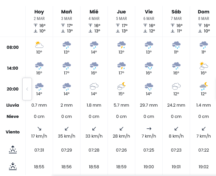 La previsión indica lluvias en la primera semana de marzo, aunque con posibles mejoras puntuales.