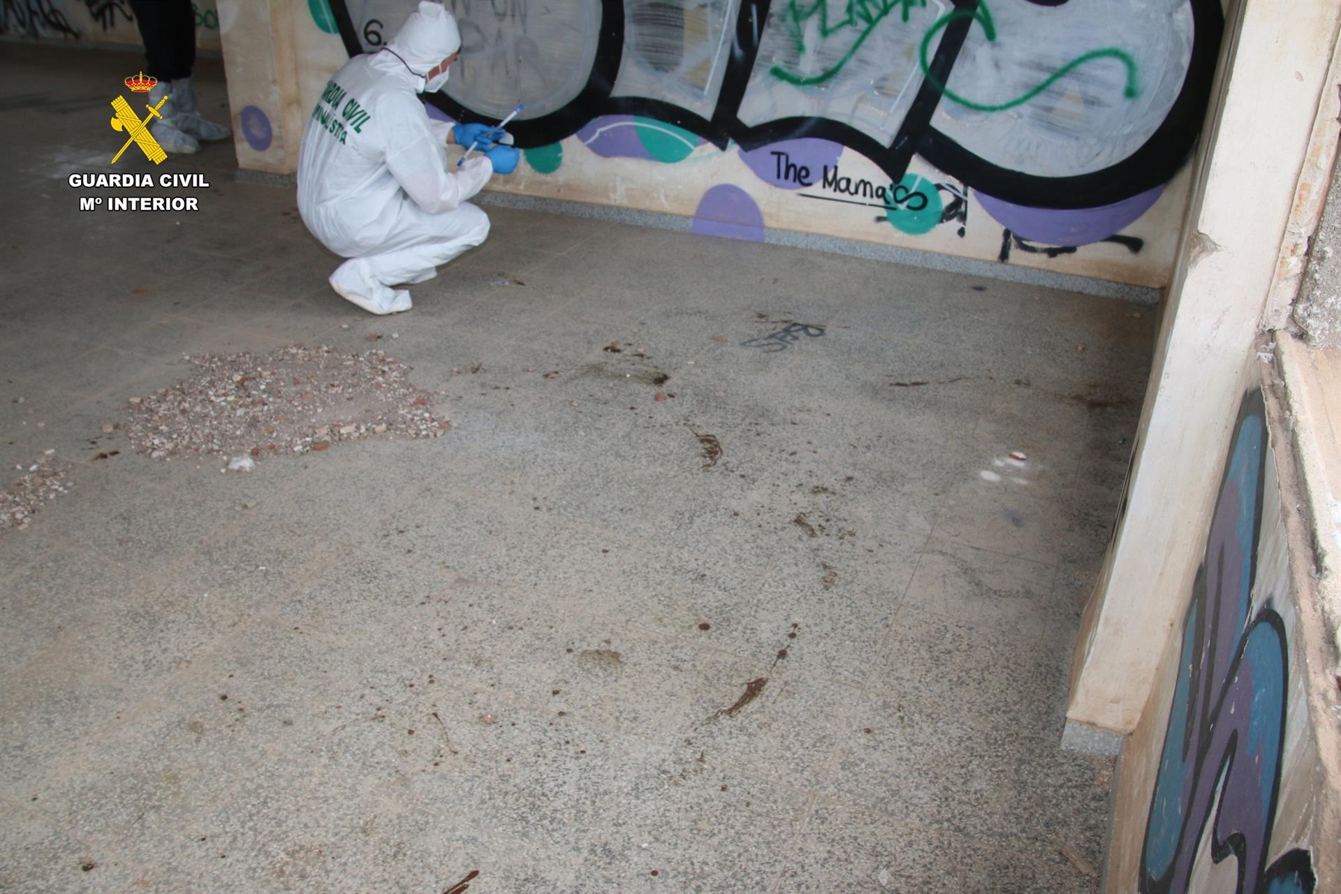 Los especialistas de la Unidad Orgánica de Policía Judicial realizaron una inspección técnico-ocular en el lugar del hallazgo, donde recogieron restos biológicos en distintas zonas del edificio.