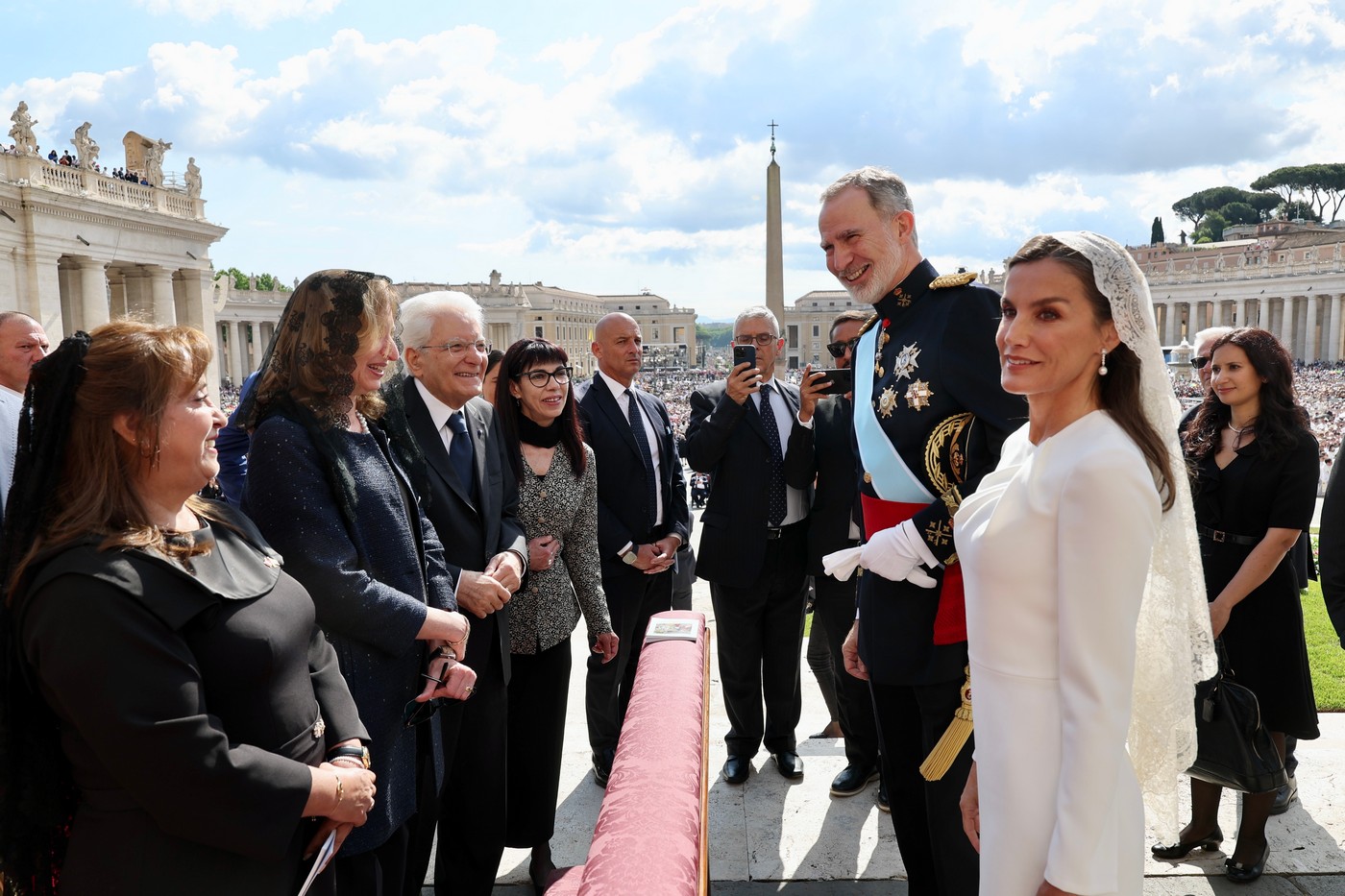 La Reina Letizia luce una mantilla de la empresa valenciana Santos Textil en la misa del papa León XIV