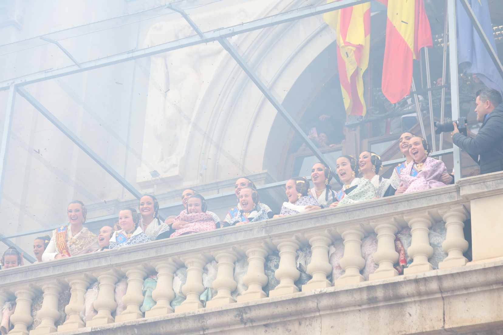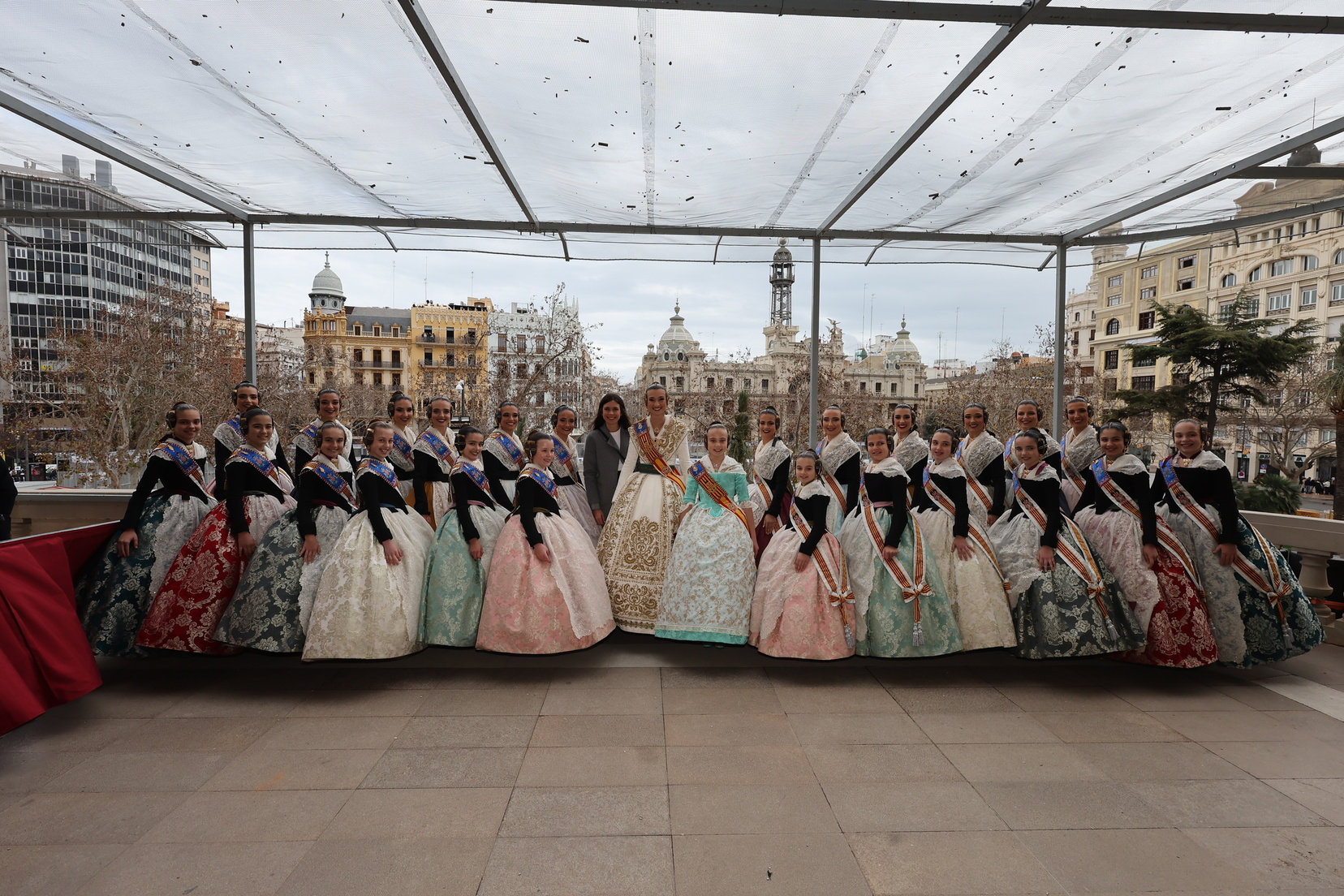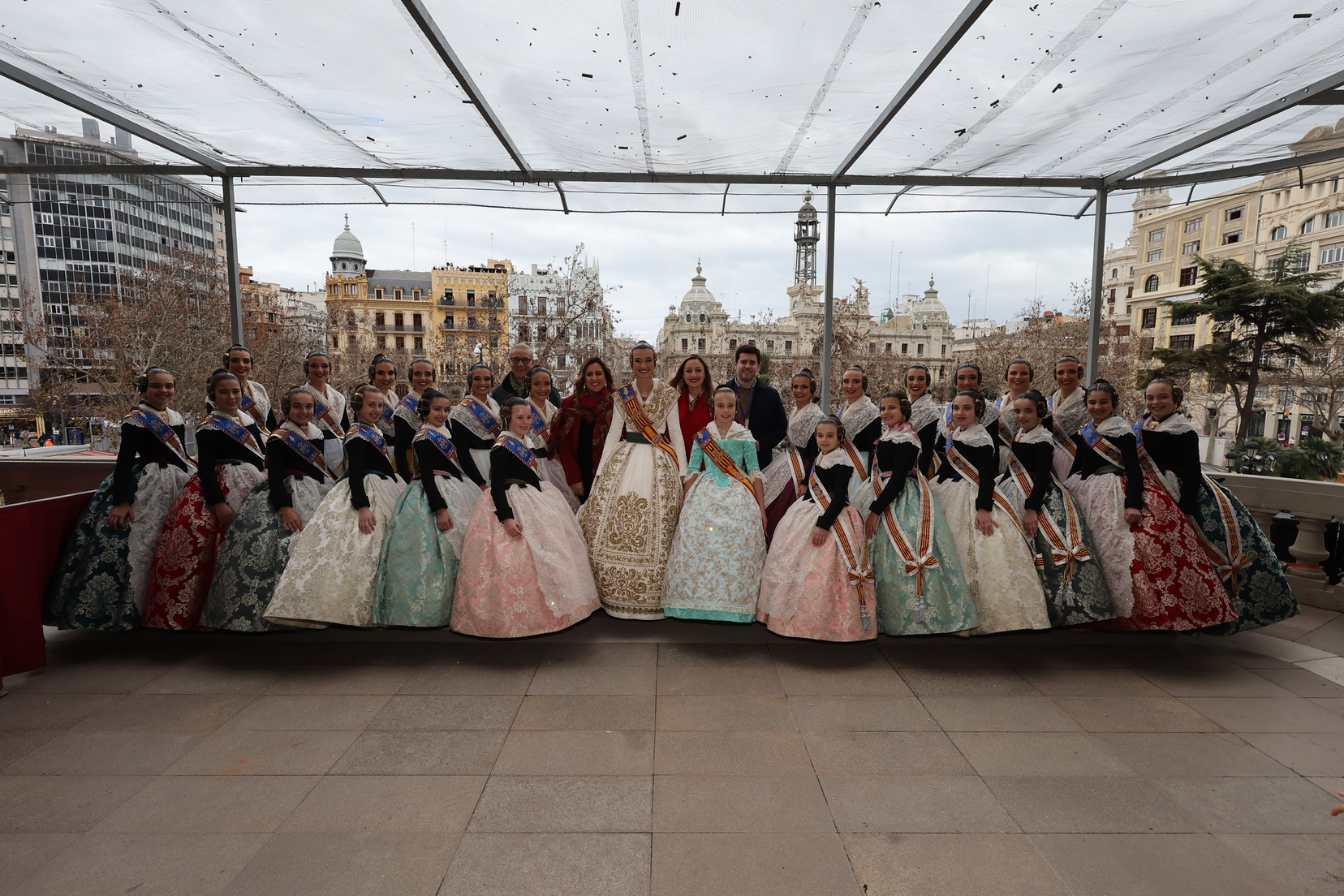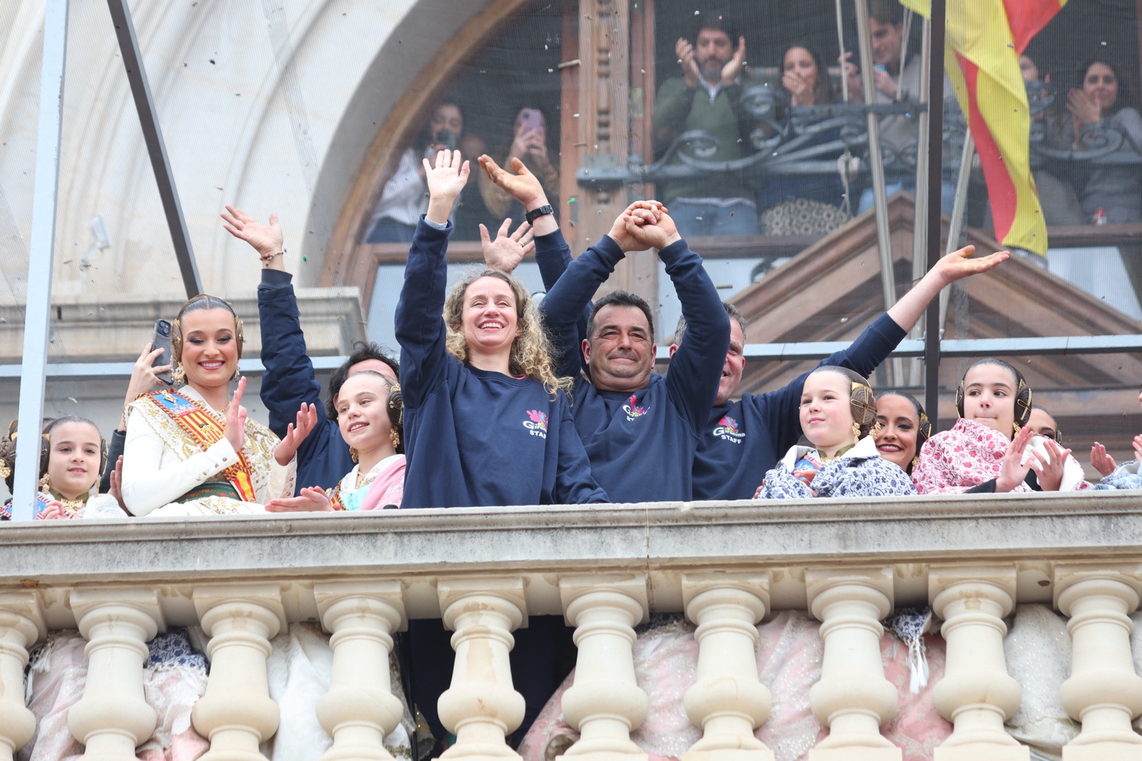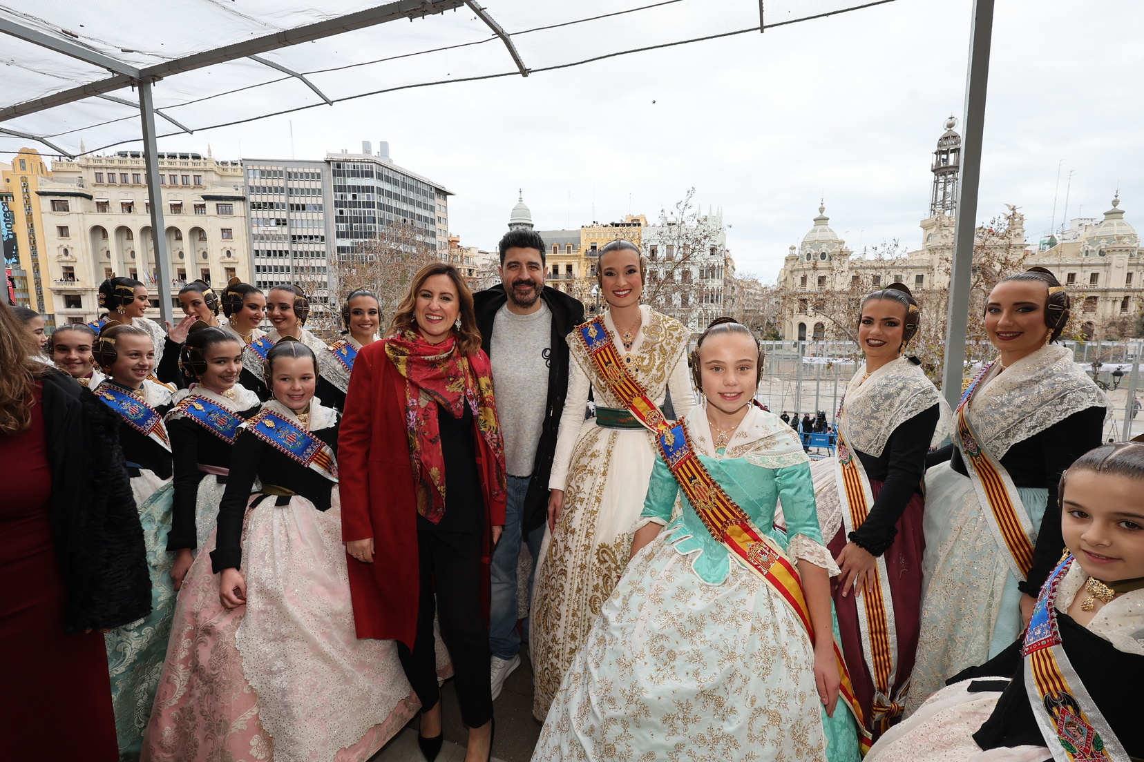 En el balcón del Ayuntamiento, como cada día, han estado presentes las falleras mayores, Berta Peiró García y Lucía García Rivera, junto con la alcaldesa de la ciudad, María José Catalá. Sin embargo, no se ha visto a ningún miembro del Consell en esta jornada.
