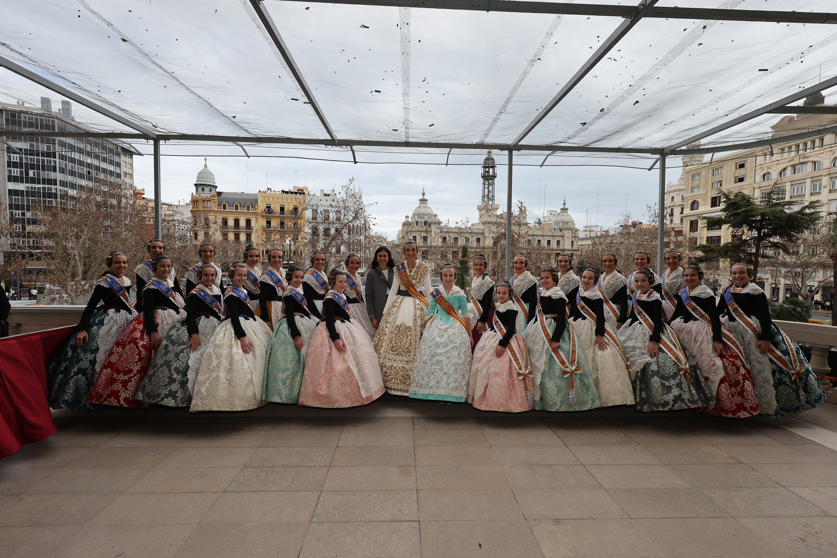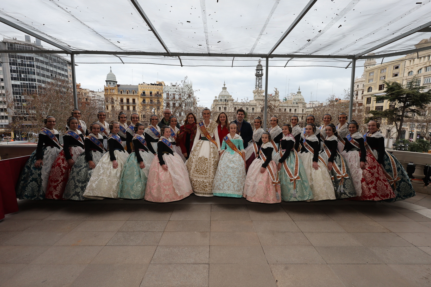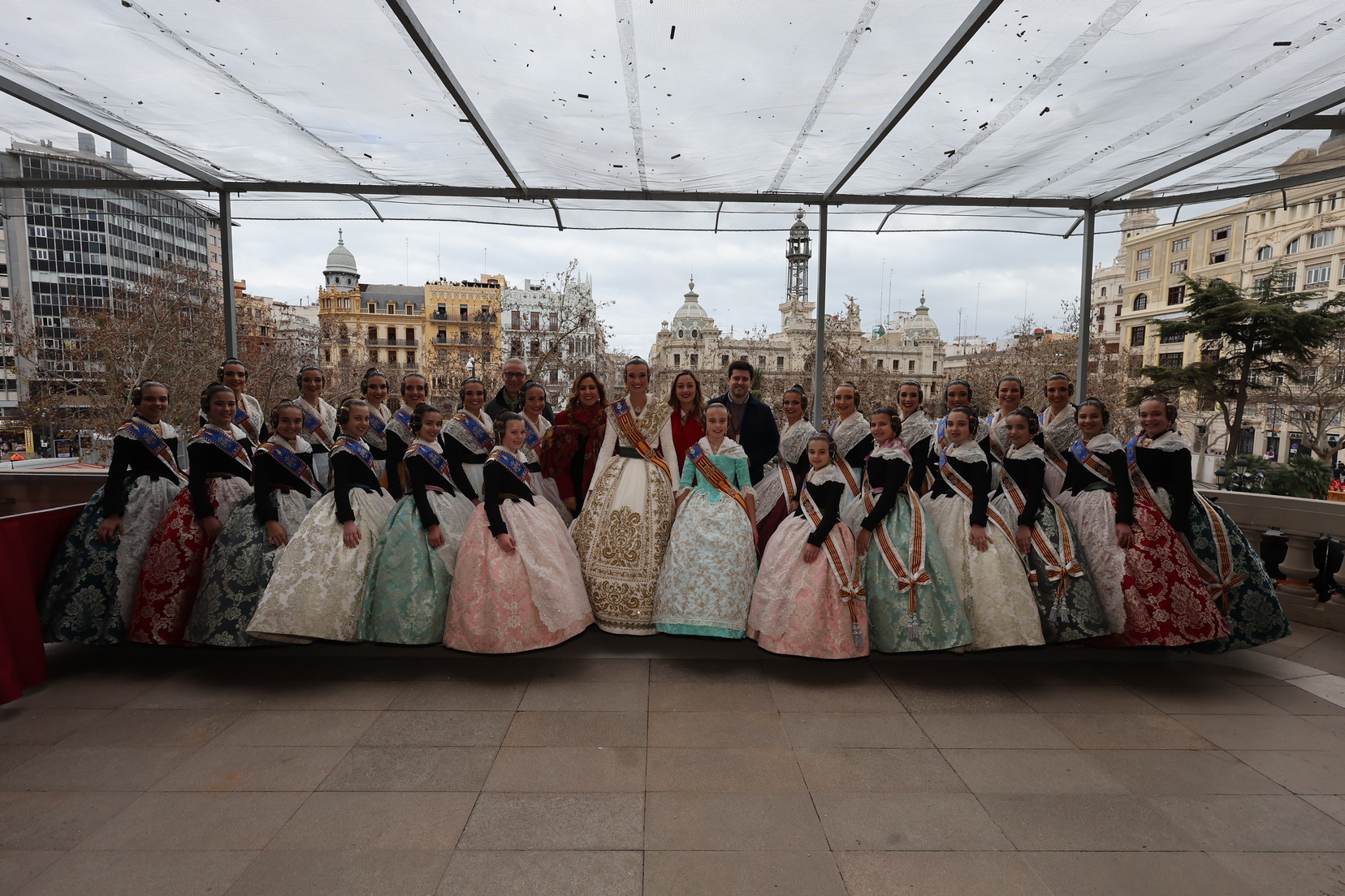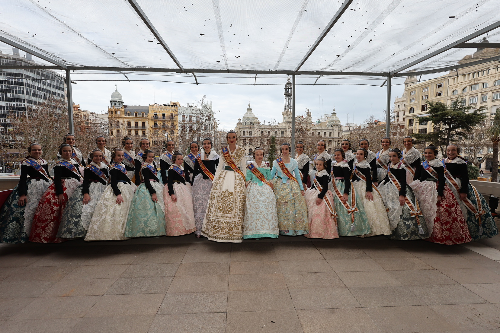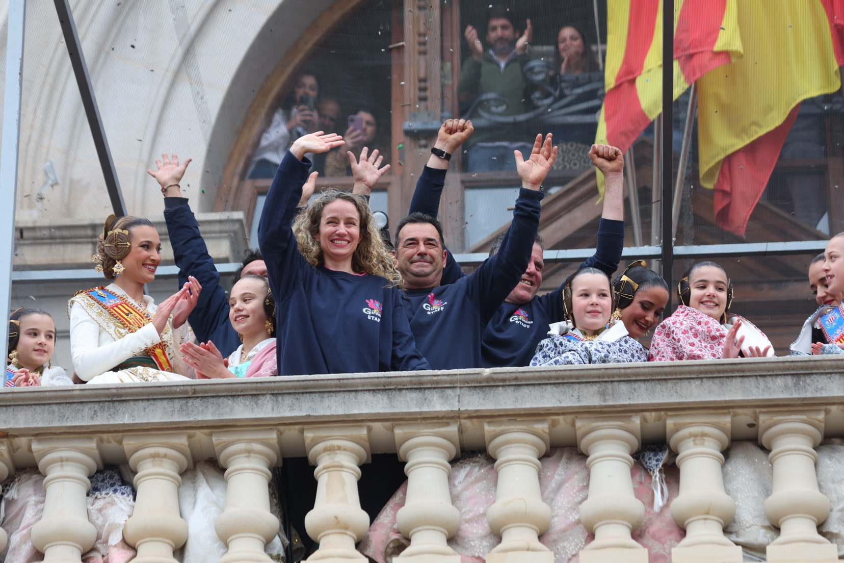 En el balcón del Ayuntamiento, como cada día, han estado presentes las falleras mayores, Berta Peiró García y Lucía García Rivera, junto con la alcaldesa de la ciudad, María José Catalá. Sin embargo, no se ha visto a ningún miembro del Consell en esta jornada.