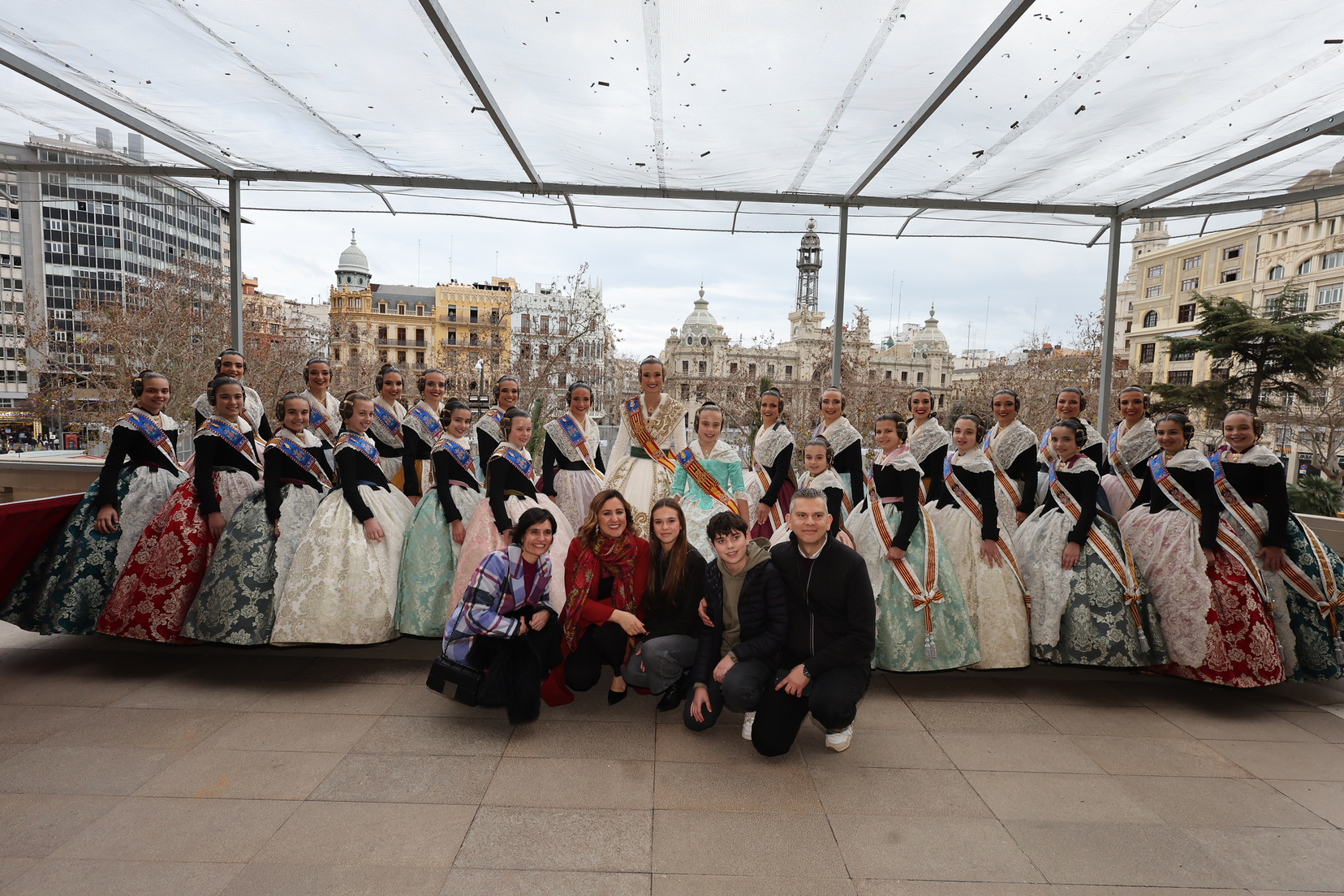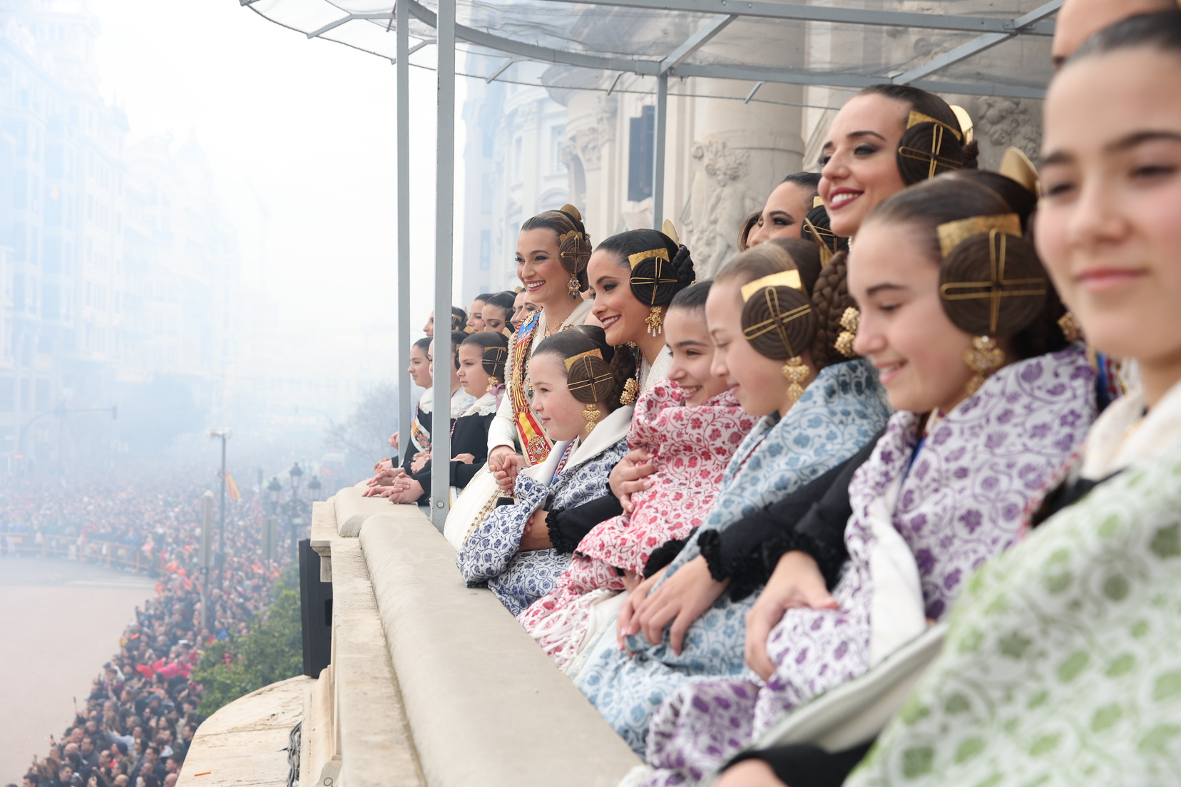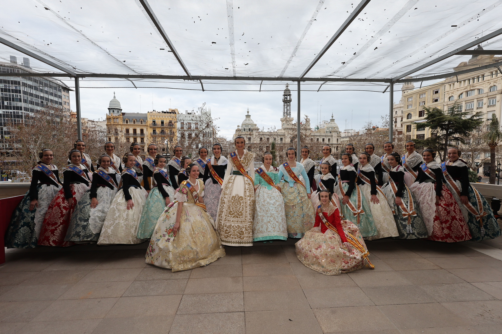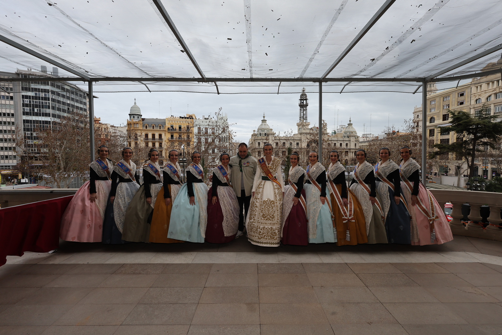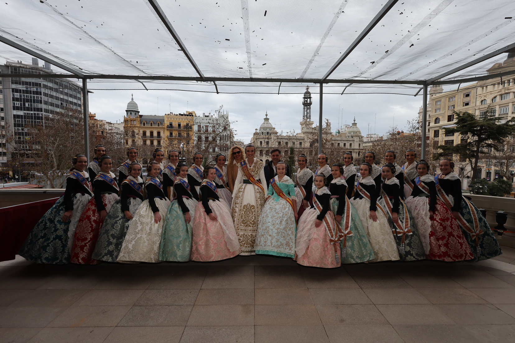 En el balcón del Ayuntamiento, como cada día, han estado presentes las falleras mayores, Berta Peiró García y Lucía García Rivera, junto con la alcaldesa de la ciudad, María José Catalá. Sin embargo, no se ha visto a ningún miembro del Consell en esta jornada.