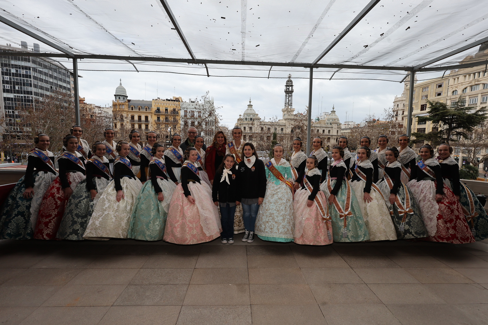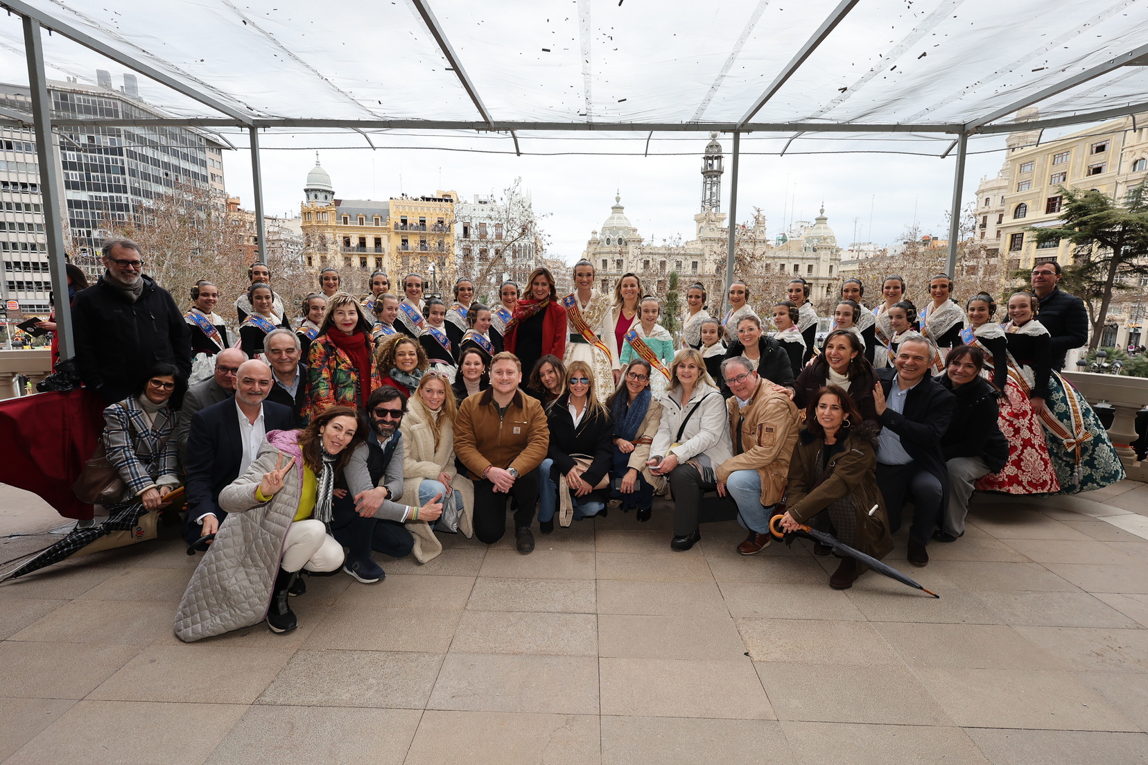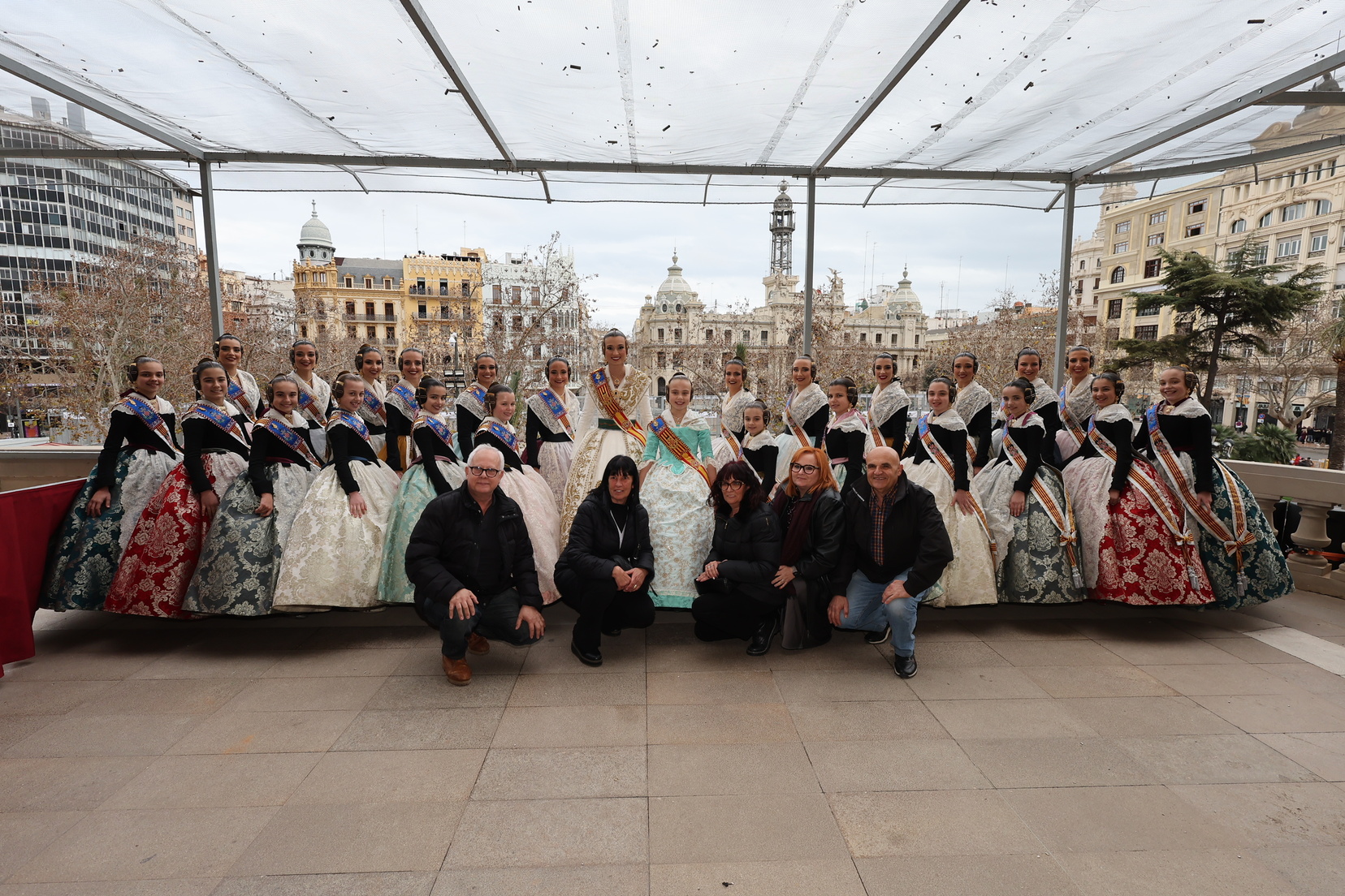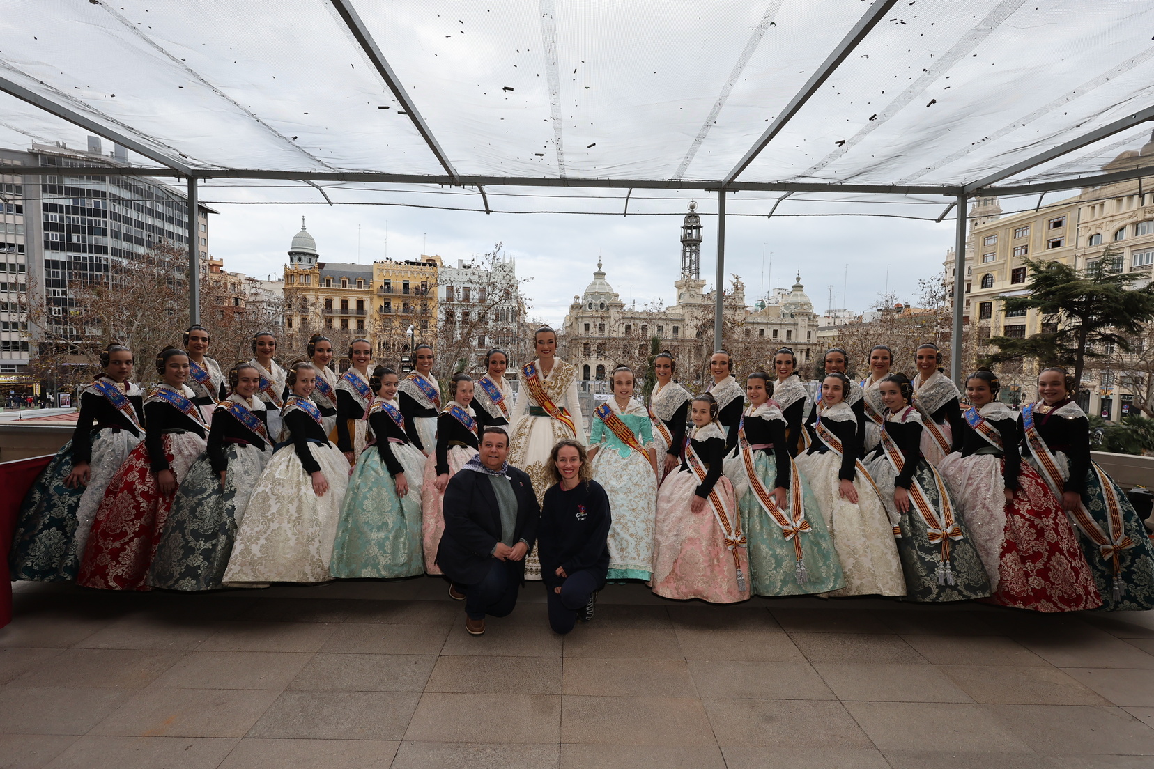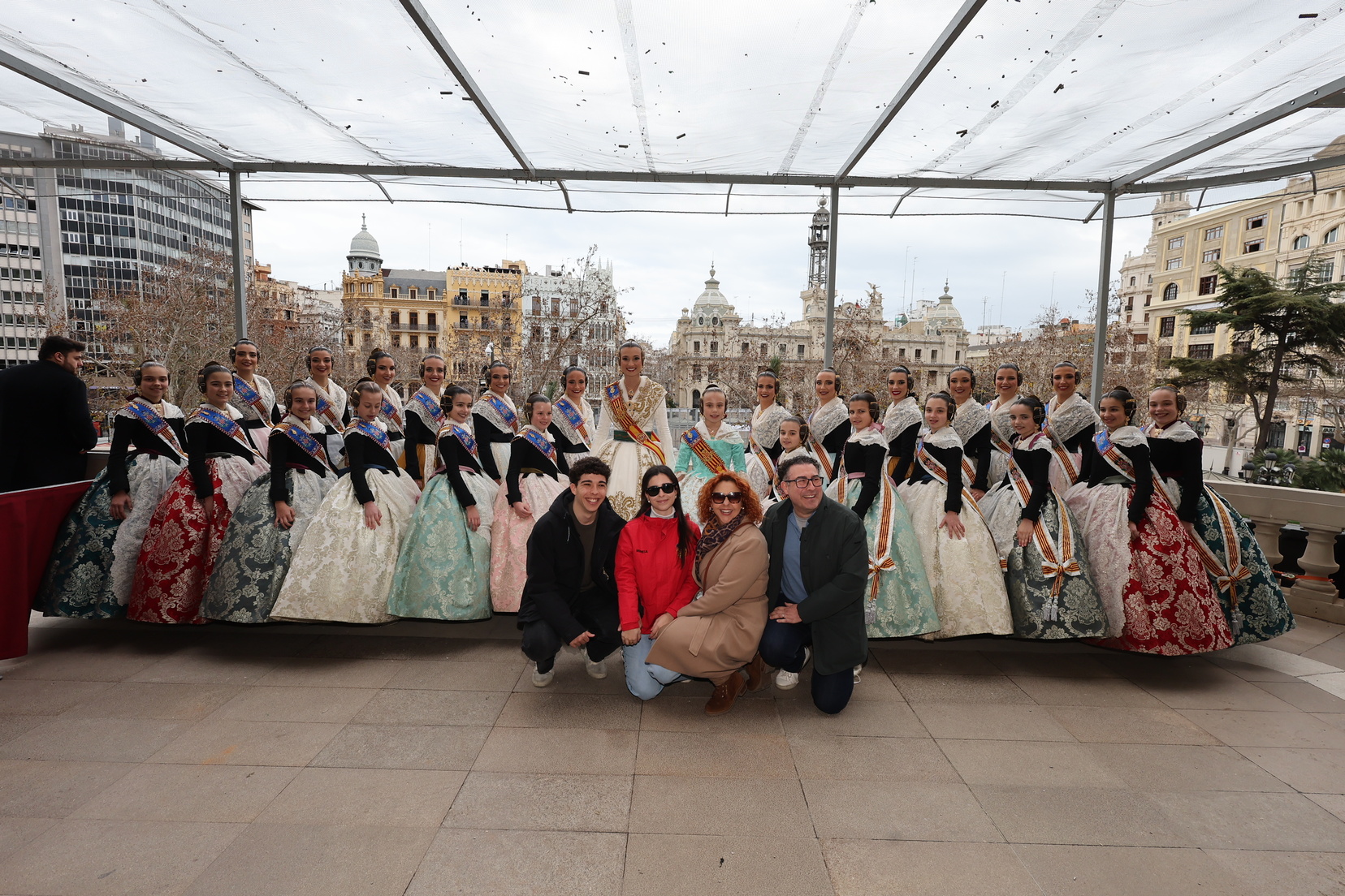 En el balcón del Ayuntamiento, como cada día, han estado presentes las falleras mayores, Berta Peiró García y Lucía García Rivera, junto con la alcaldesa de la ciudad, María José Catalá. Sin embargo, no se ha visto a ningún miembro del Consell en esta jornada.
