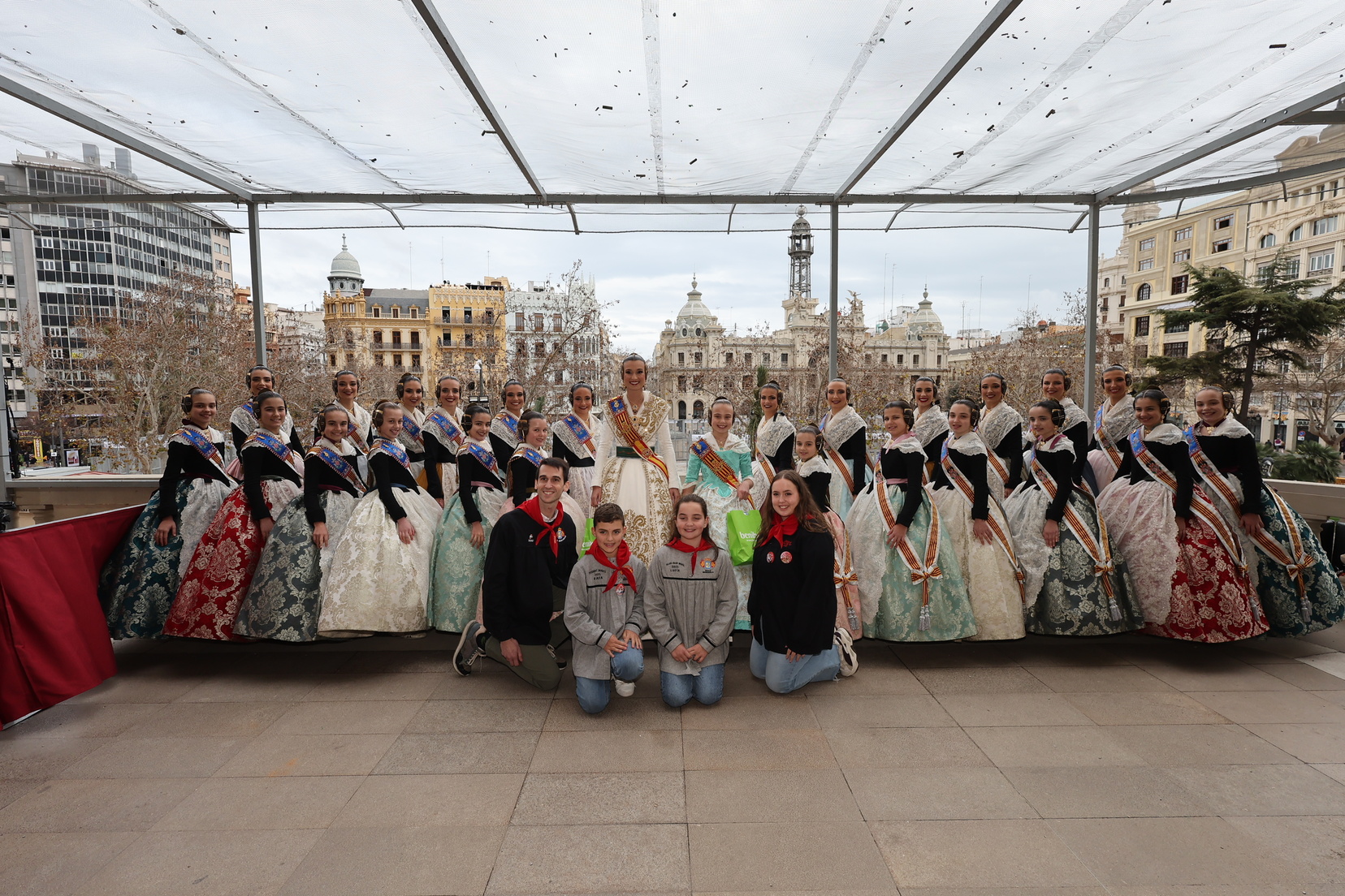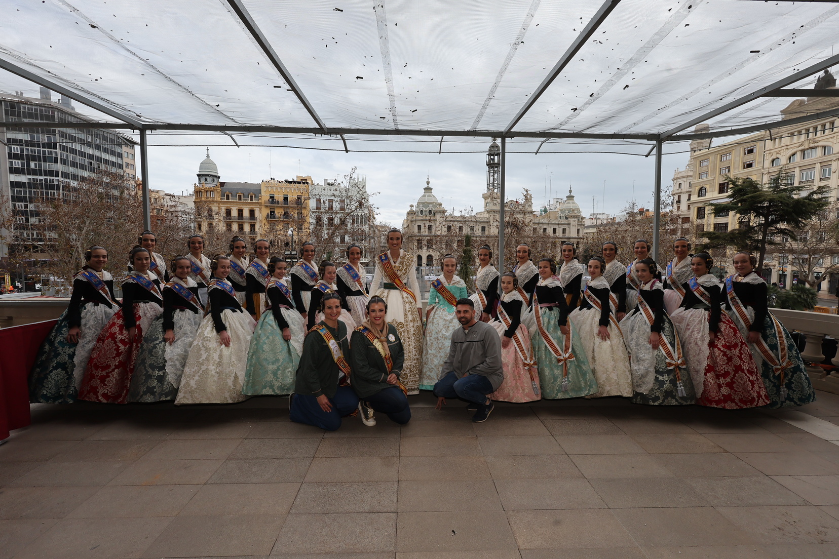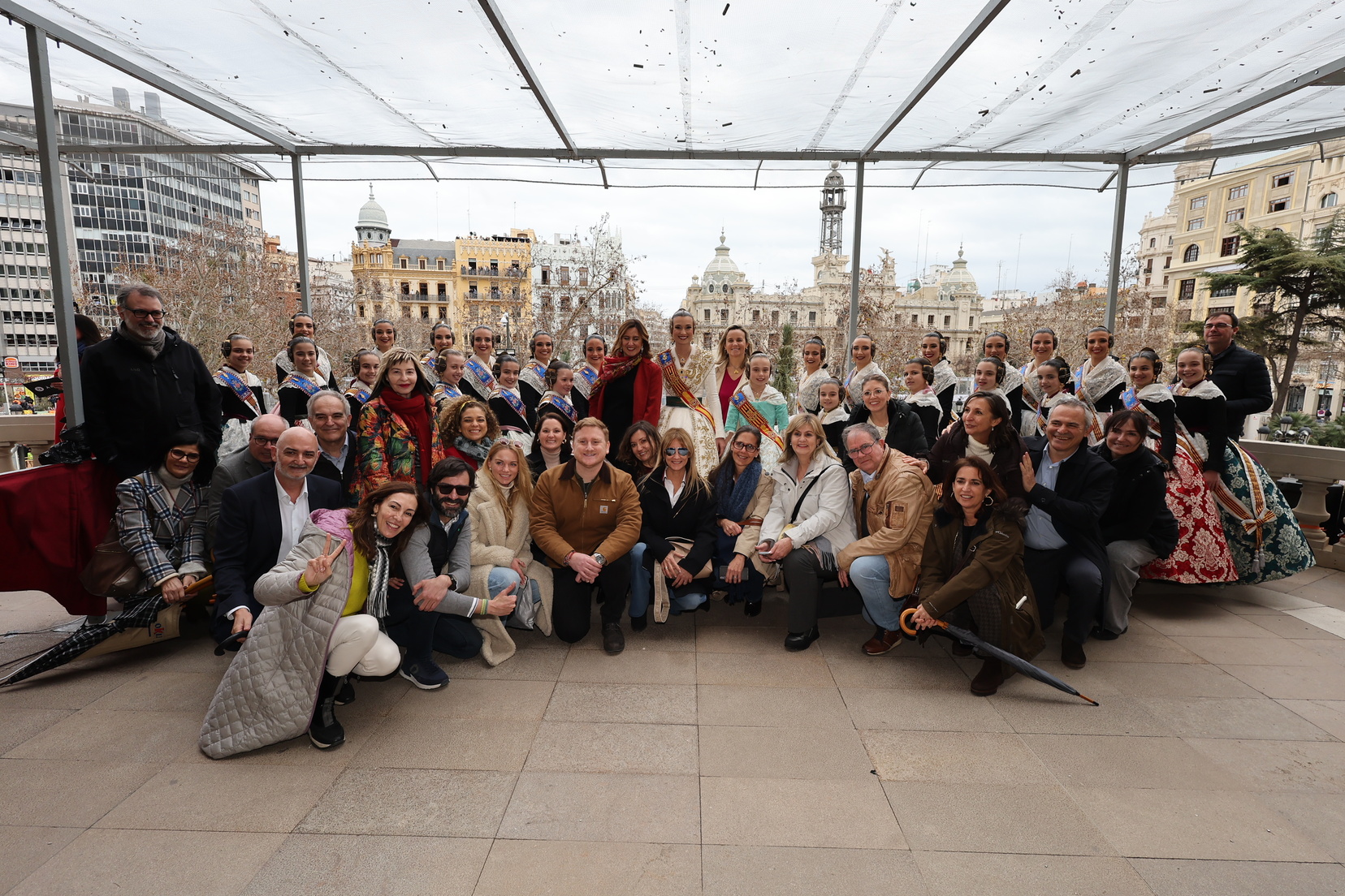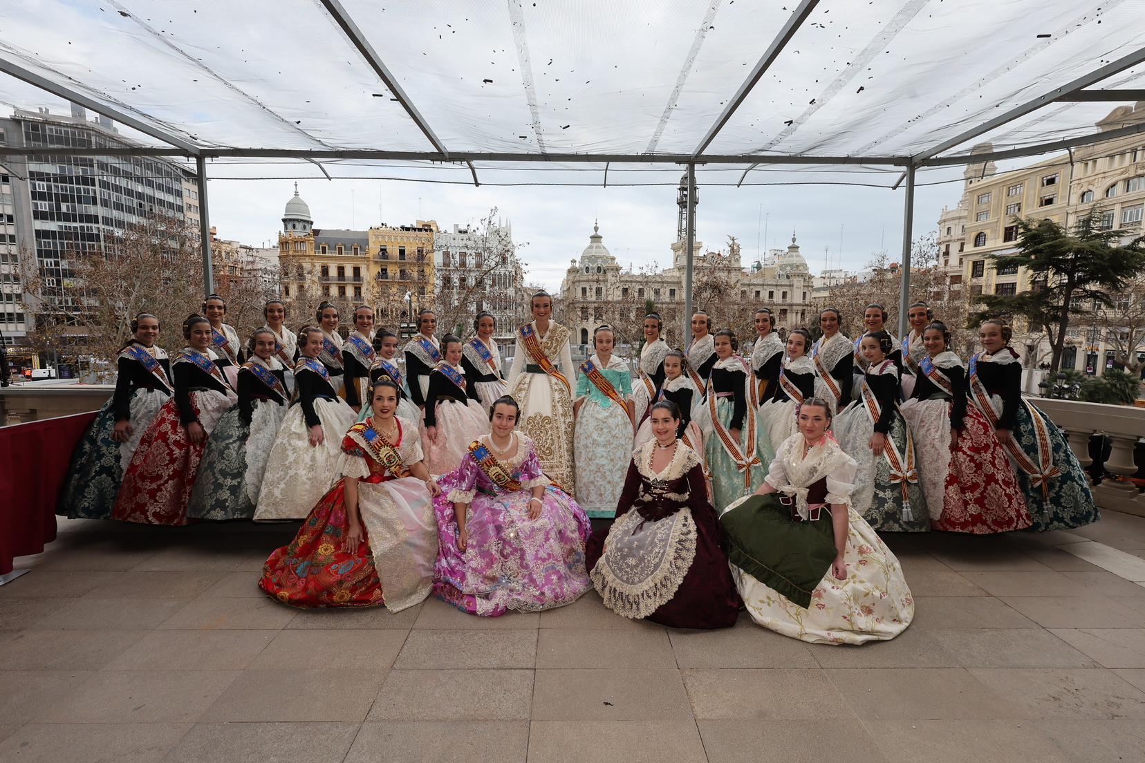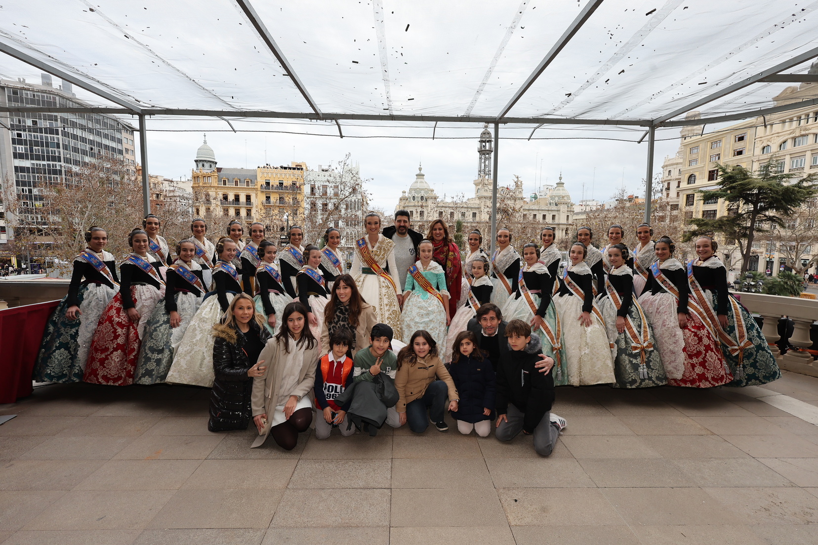 En el balcón del Ayuntamiento, como cada día, han estado presentes las falleras mayores, Berta Peiró García y Lucía García Rivera, junto con la alcaldesa de la ciudad, María José Catalá. Sin embargo, no se ha visto a ningún miembro del Consell en esta jornada.