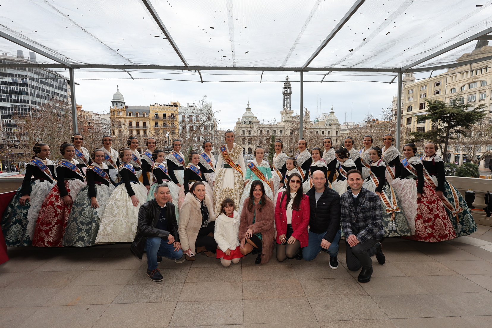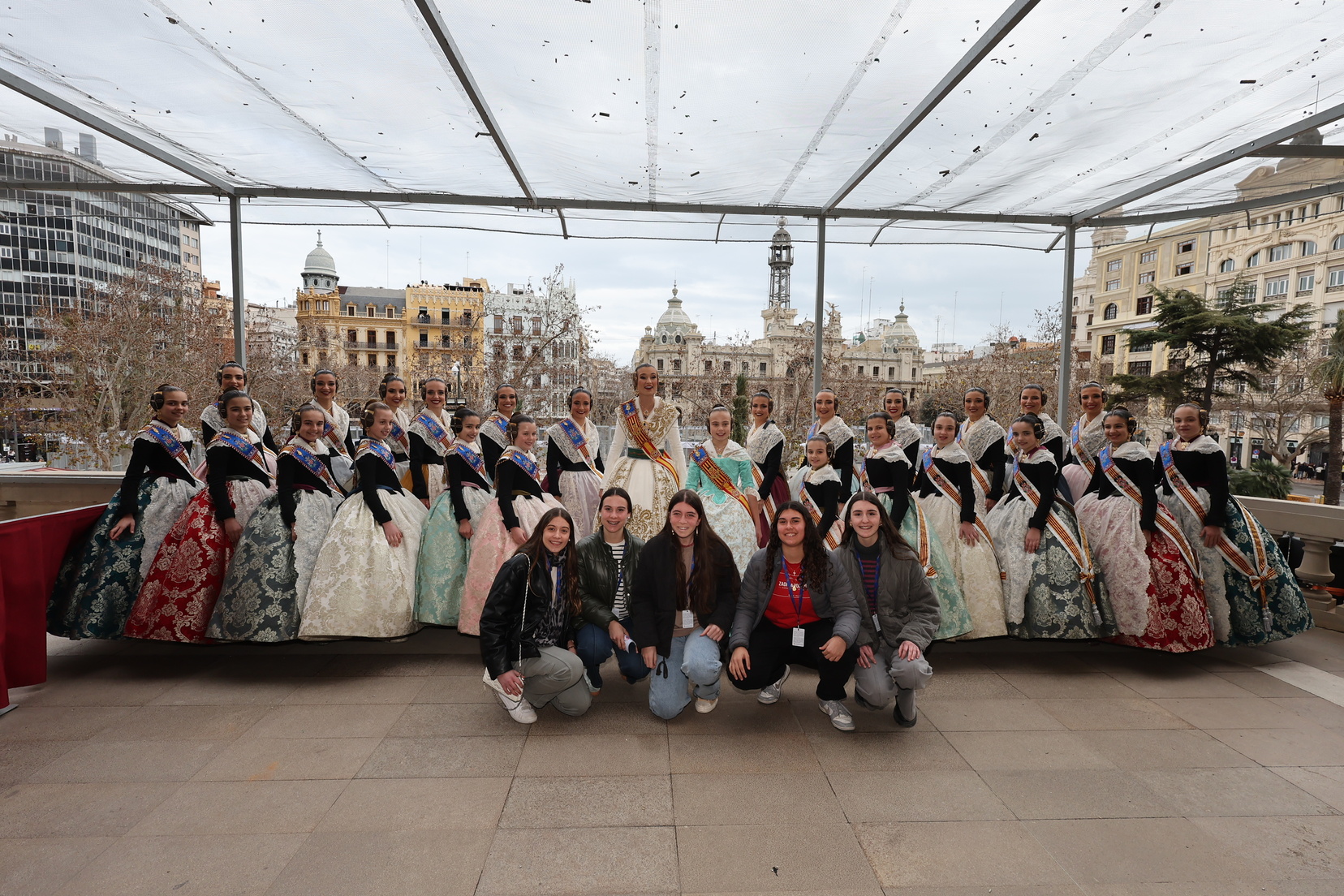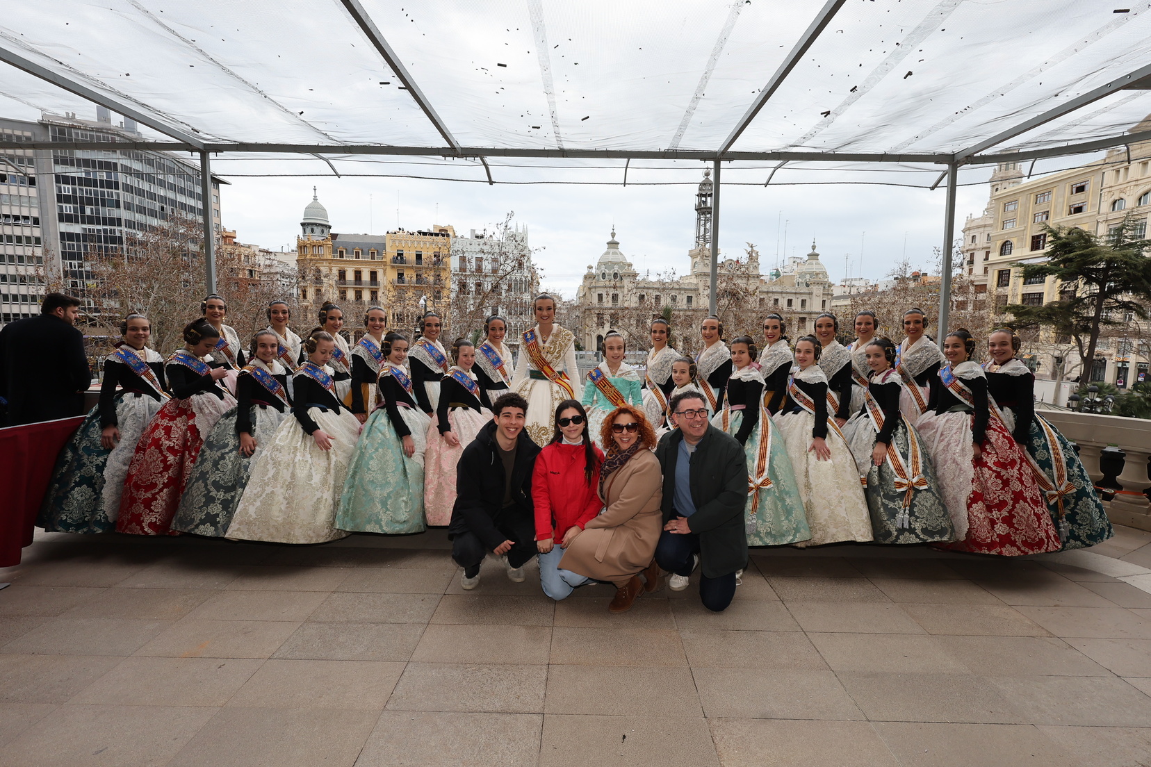 Claudia estuvo acompañada en este instante tan especial por gran parte de la Corte de Honor 2025 y por la Fallera Mayor de Valencia, Berta Peiró, quienes no dudaron en mostrarle su apoyo y orgullo.