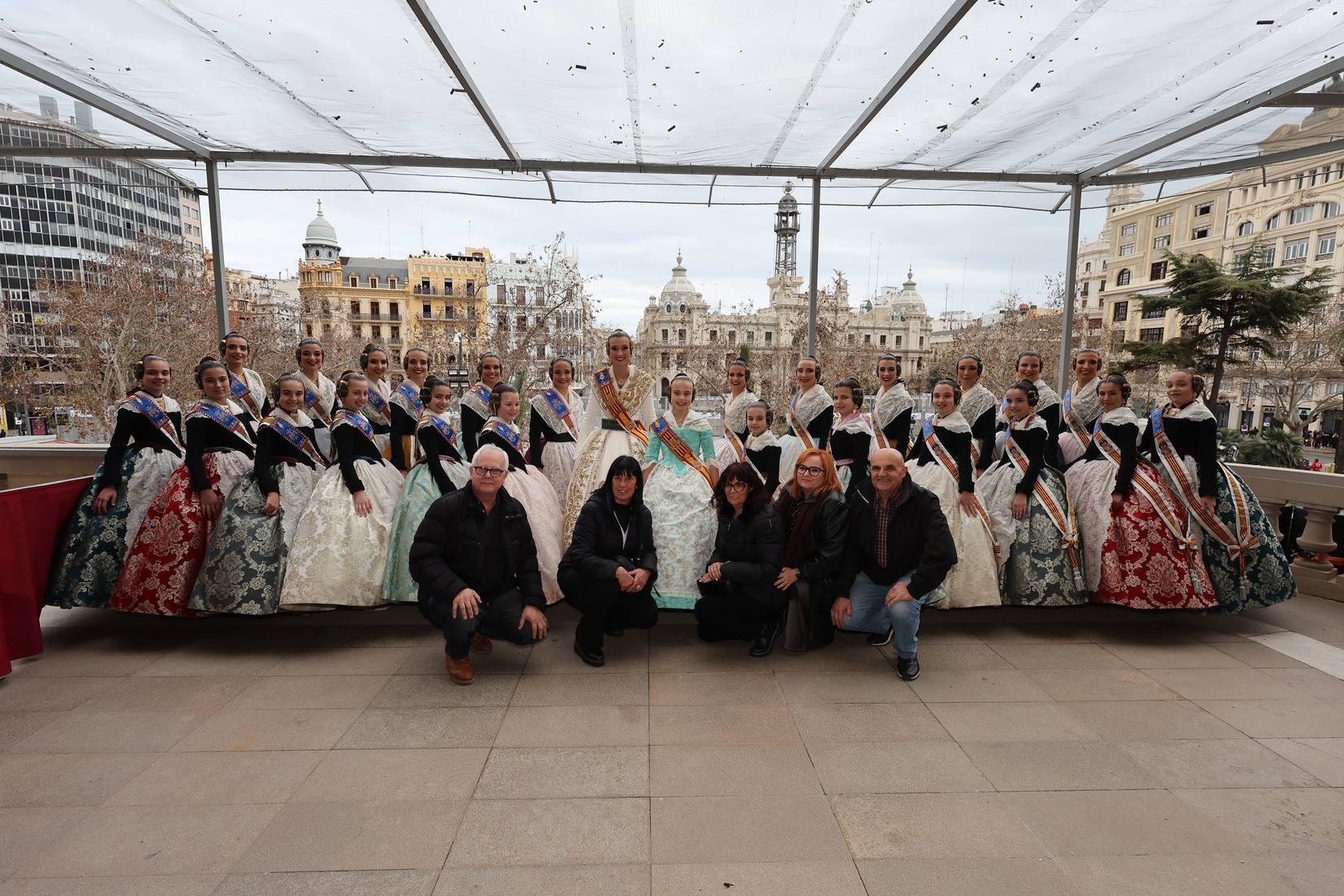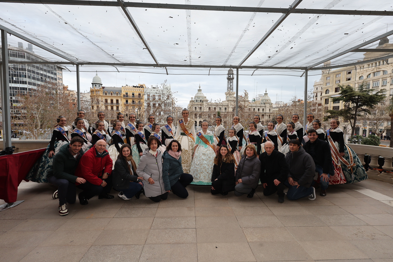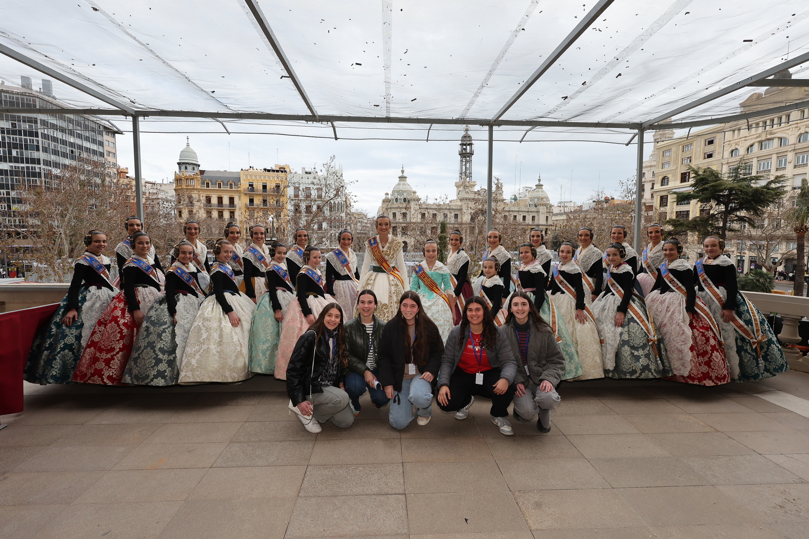 Claudia estuvo acompañada en este instante tan especial por gran parte de la Corte de Honor 2025 y por la Fallera Mayor de Valencia, Berta Peiró, quienes no dudaron en mostrarle su apoyo y orgullo.