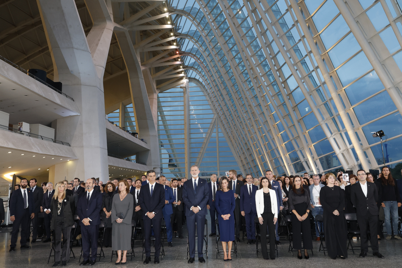 El Rey Felipe VI y la Reina Letizia protagonizaron uno de los momentos más emotivos del funeral de Estado en memoria de las 237 víctimas de la DANA del 29 de octubre de 2024, celebrado en el Museu de les Ciències de València.
