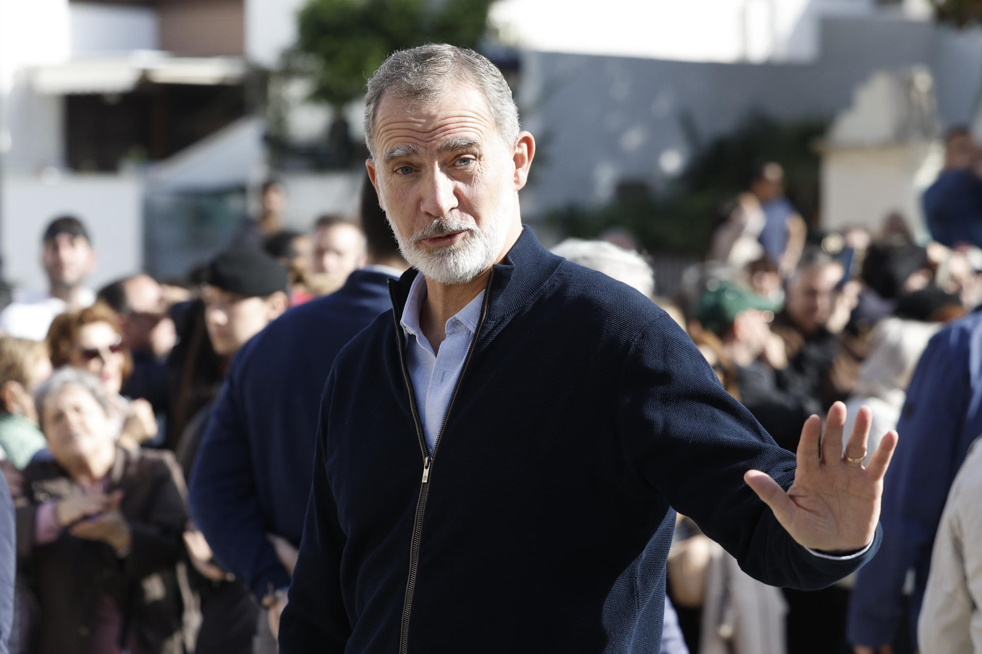 - CHIVA (VALENCIA), 19/11/2024.- El rey Felipe VI saluda a varias personas congregadas durante la visita de los reyes a la localidad valenciana de Chiva, este martes EFE/Casa Real/Francisco Gómez // SOLO USO EDITORIAL/SOLO DISPONIBLE PARA ILUSTRAR LA NOTICIA QUE ACOMPAÑA (CRÉDITO OBLIGATORIO)