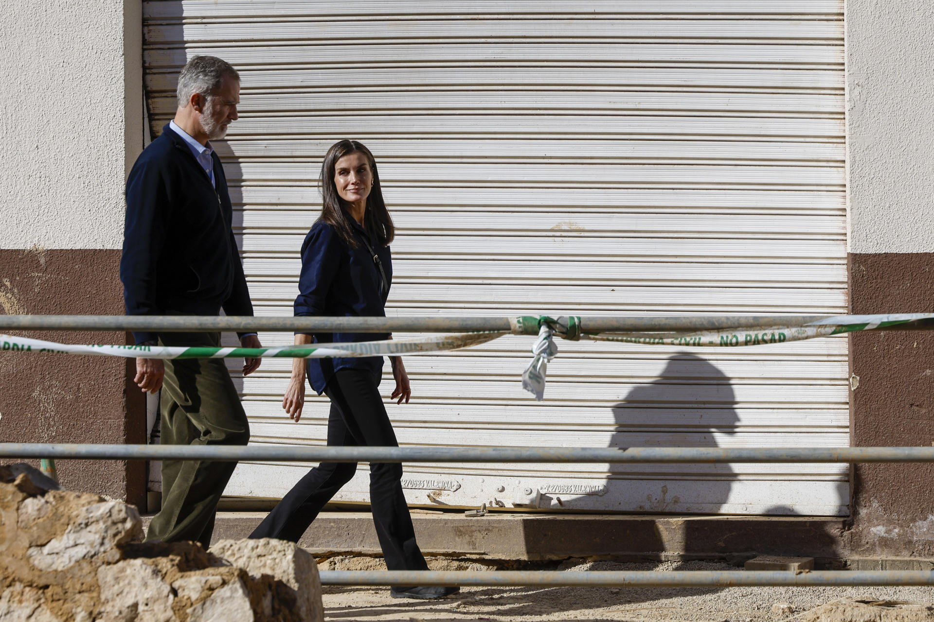 - Los reyes Felipe y Letizia durante su visita a la localidad valenciana de Chiva este martes, después de que el pasado 3 de noviembre se suspendiera la visita que tenían previsto realizar por los incidentes sucedidos en la localidad de Paiporta. EFE/ Kai Försterling