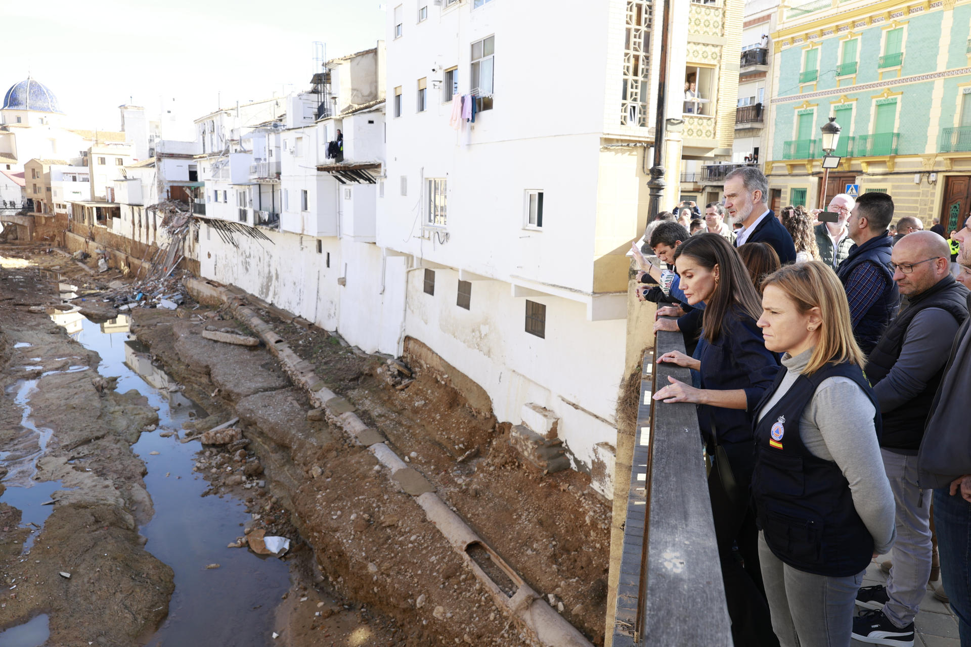 - CHIVA (VALENCIA), 19/11/2024.- Los reyes, Felipe y Letizia, observan los destrozos que la dana causó en Chiva durante su visita a la localidad valenciana, este martes EFE/Casa Real/Francisco Gómez // SOLO USO EDITORIAL/SOLO DISPONIBLE PARA ILUSTRAR LA NOTICIA QUE ACOMPAÑA (CRÉDITO OBLIGATORIO)