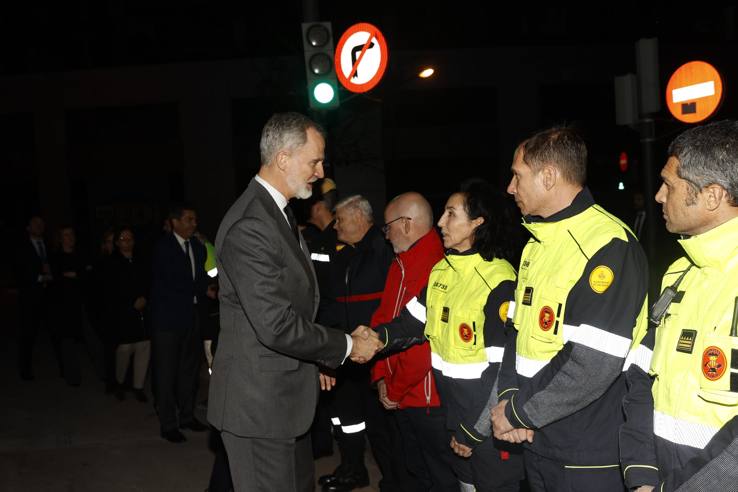 Tras el saludo, se ha formado un corro alrededor de los reyes, que han transmitido a los profesionales su agradecimiento por el trabajo realizado estos días, les ha dado ánimos y se han interesado por el suceso y su actuación.