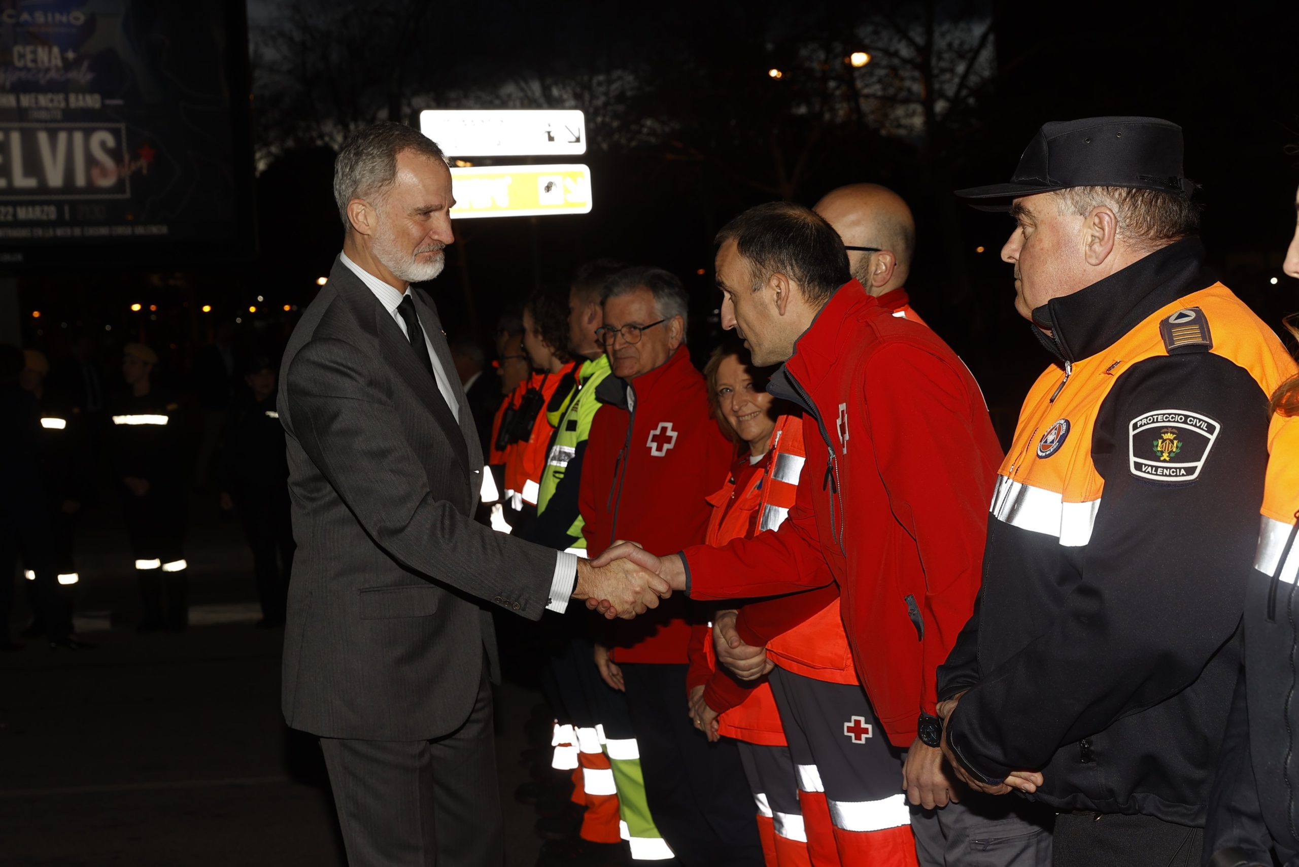 El rey, Felipe VI, y la reina, Letizia, han saludado a unos setenta efectivos de distintos cuerpos de emergencias entre bomberos provinciales y municipales, Servicios de Emergencias Sanitarias, Cruz Roja, la Unidad Militar de Emergencias (UME), Policía Nacional, Policía Local o Protección Civil.