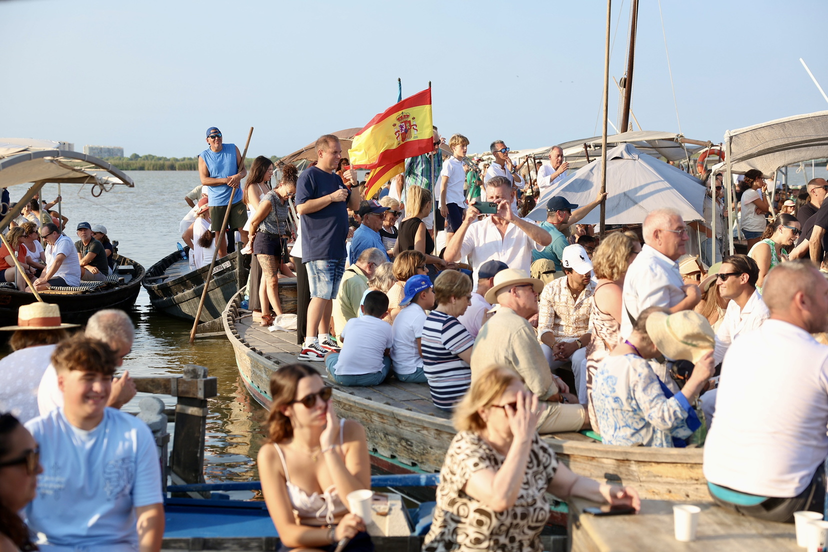 Las barcas tradicionales surcaron de nuevo las aguas del lago en una imagen profundamente simbólica: la fe y la cultura local navegando sobre un ecosistema herido, pero vivo. Todo ello bajo la luz dorada del atardecer, que regaló postales de una belleza plástica inigualable, entre reflejos de agua, velas y fervor popular.